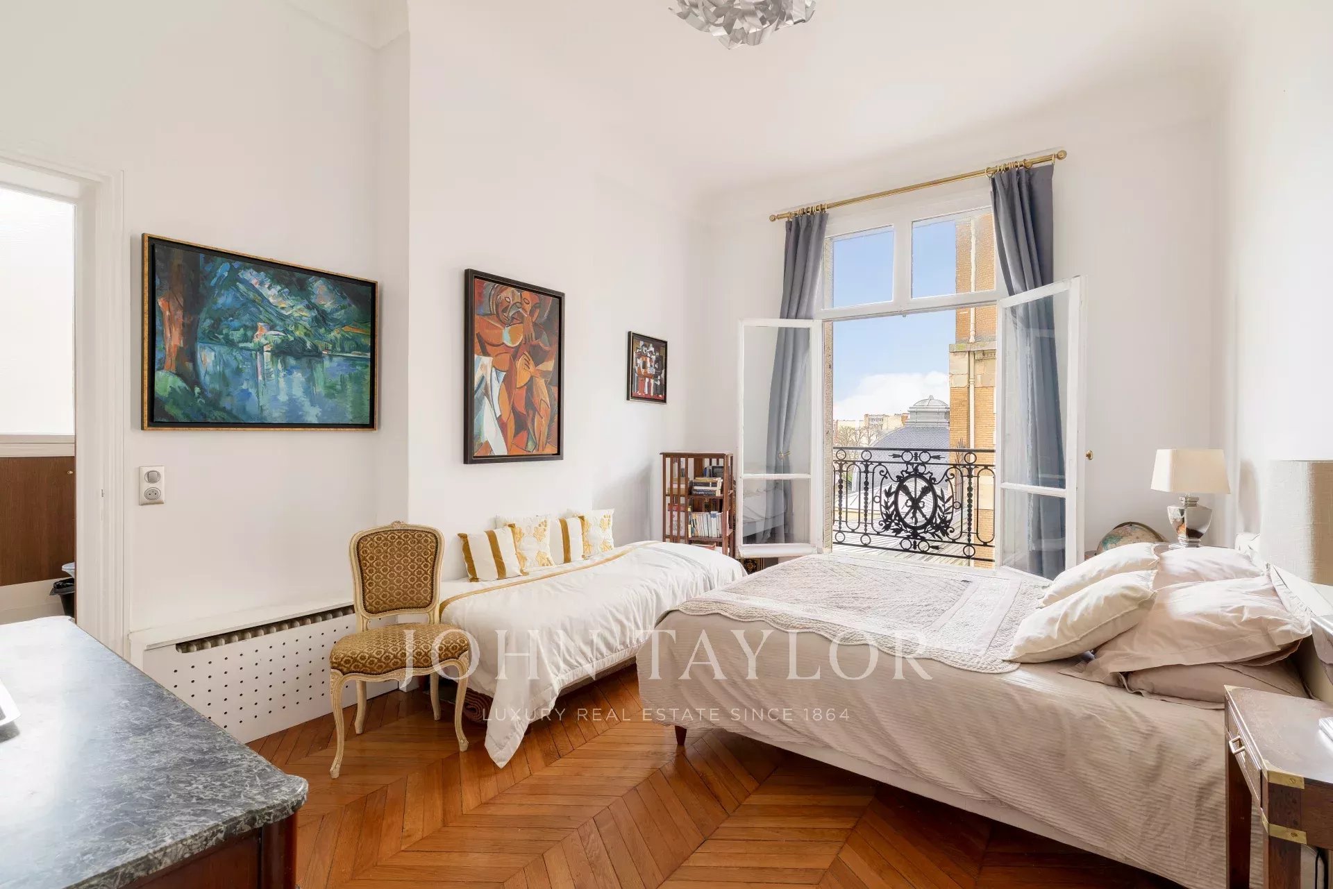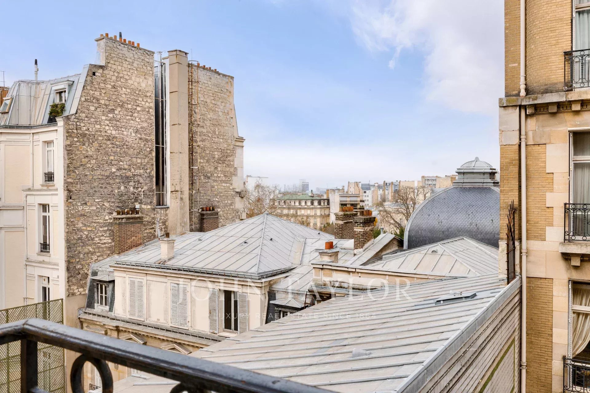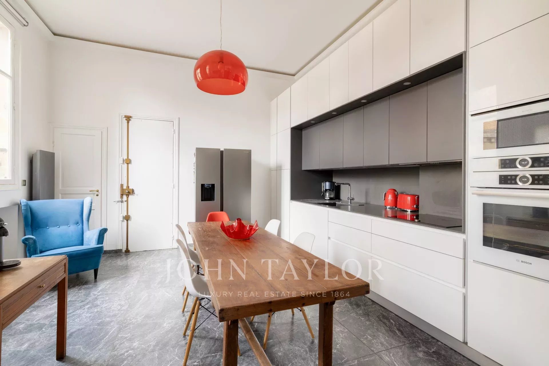 Appartement bénéficiant de très beaux volumes avec plus de 3,60 mètres de hauteur sous plafond, très lumineux, au calme absolu avec vues dégagées dans le salon et la chambre principale.