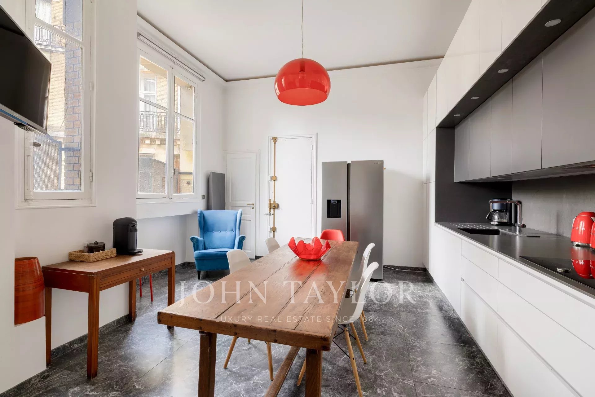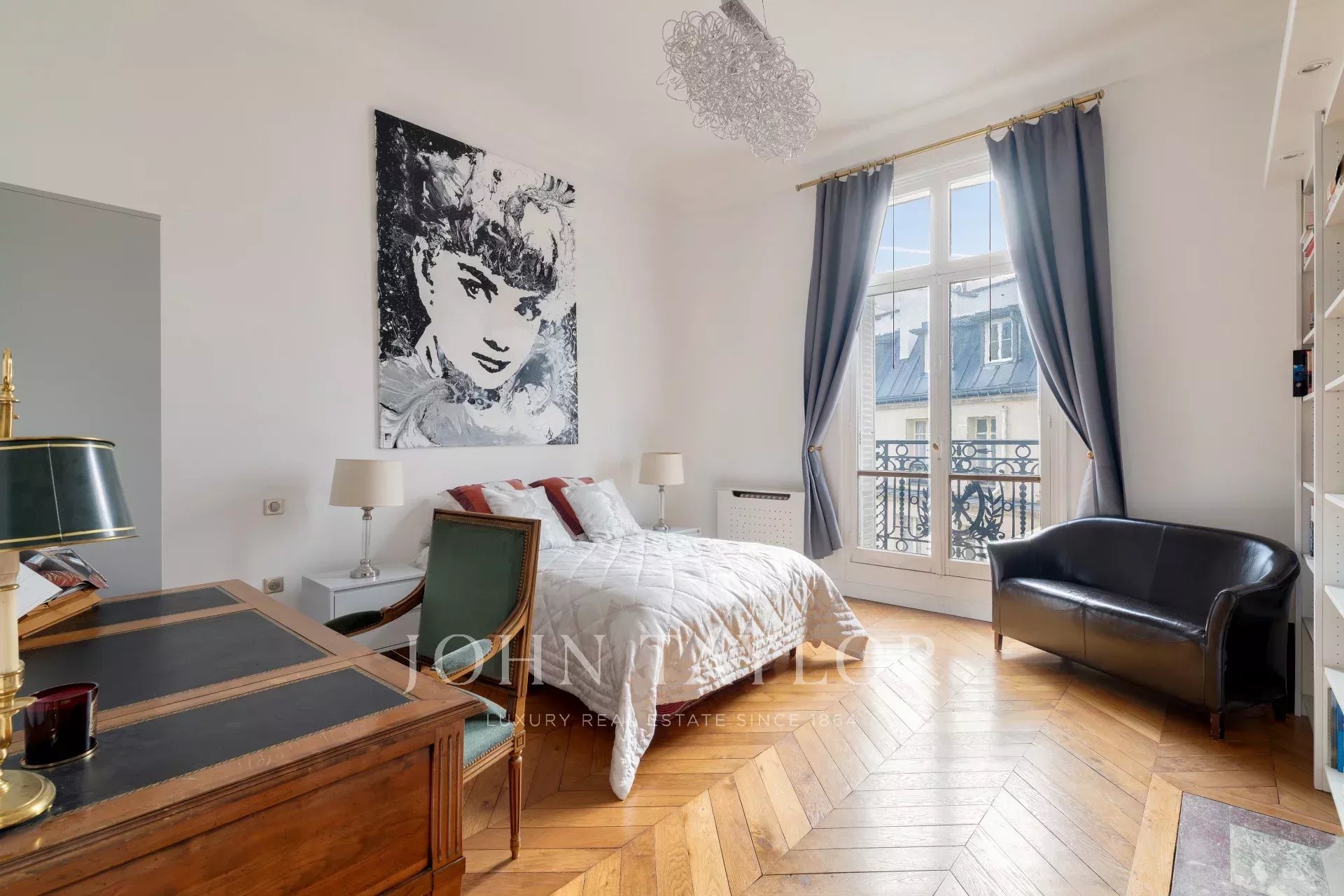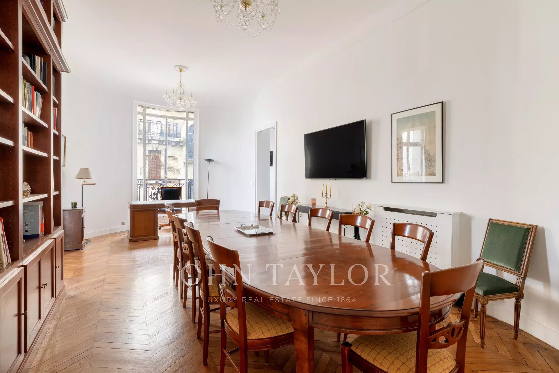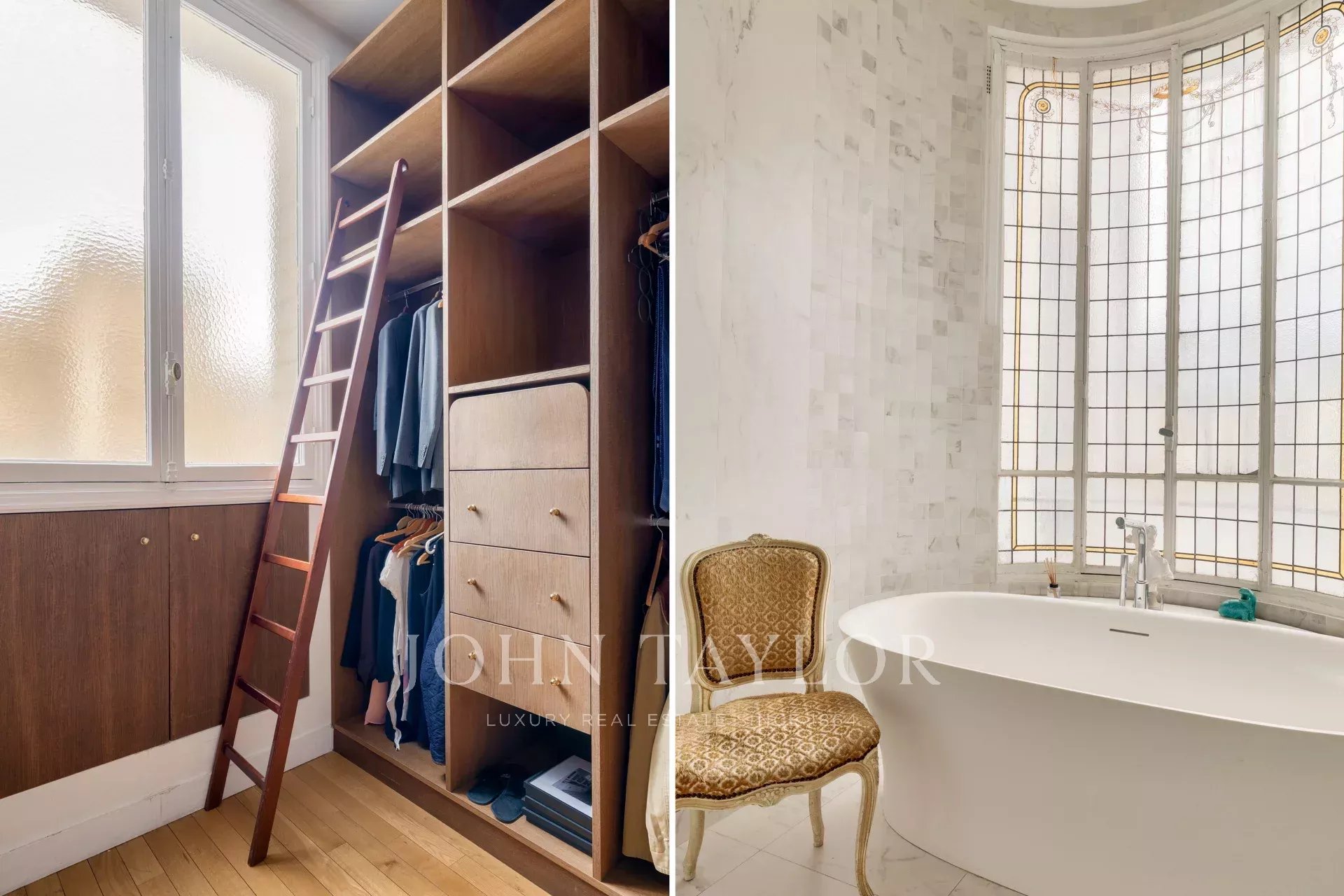 Appartement bénéficiant de très beaux volumes avec plus de 3,60 mètres de hauteur sous plafond, très lumineux, au calme absolu avec vues dégagées dans le salon et la chambre principale.