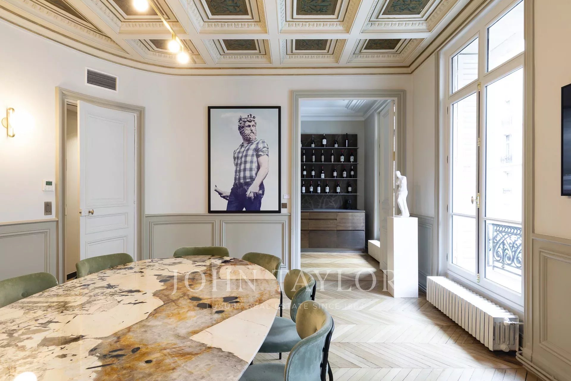 Au coeur du quartier Chaillot, à une minute de l'avenue George V et du Palais Galliera, nous vous proposons un remarquable appartement de 237,21 m² (273,39 m² au sol), aujourd'hui utilisé en bureaux, composé d'une galerie d'entrée, de 8 pièces, d'une cuisine et de 4 cabinets de toilette.