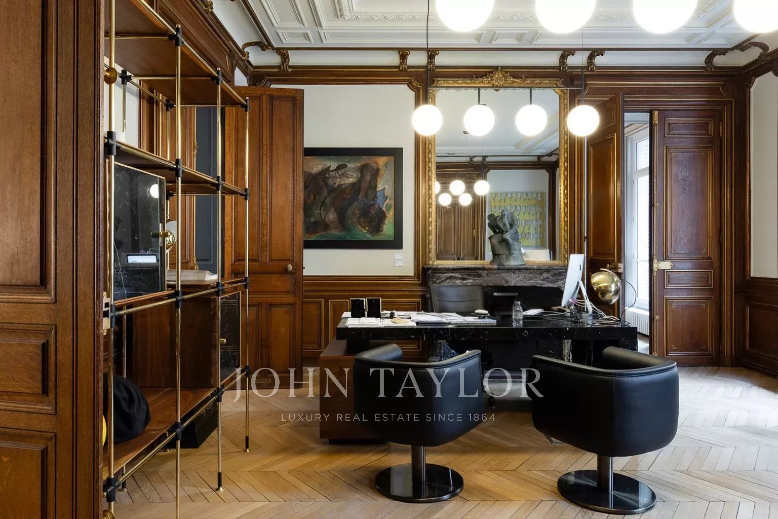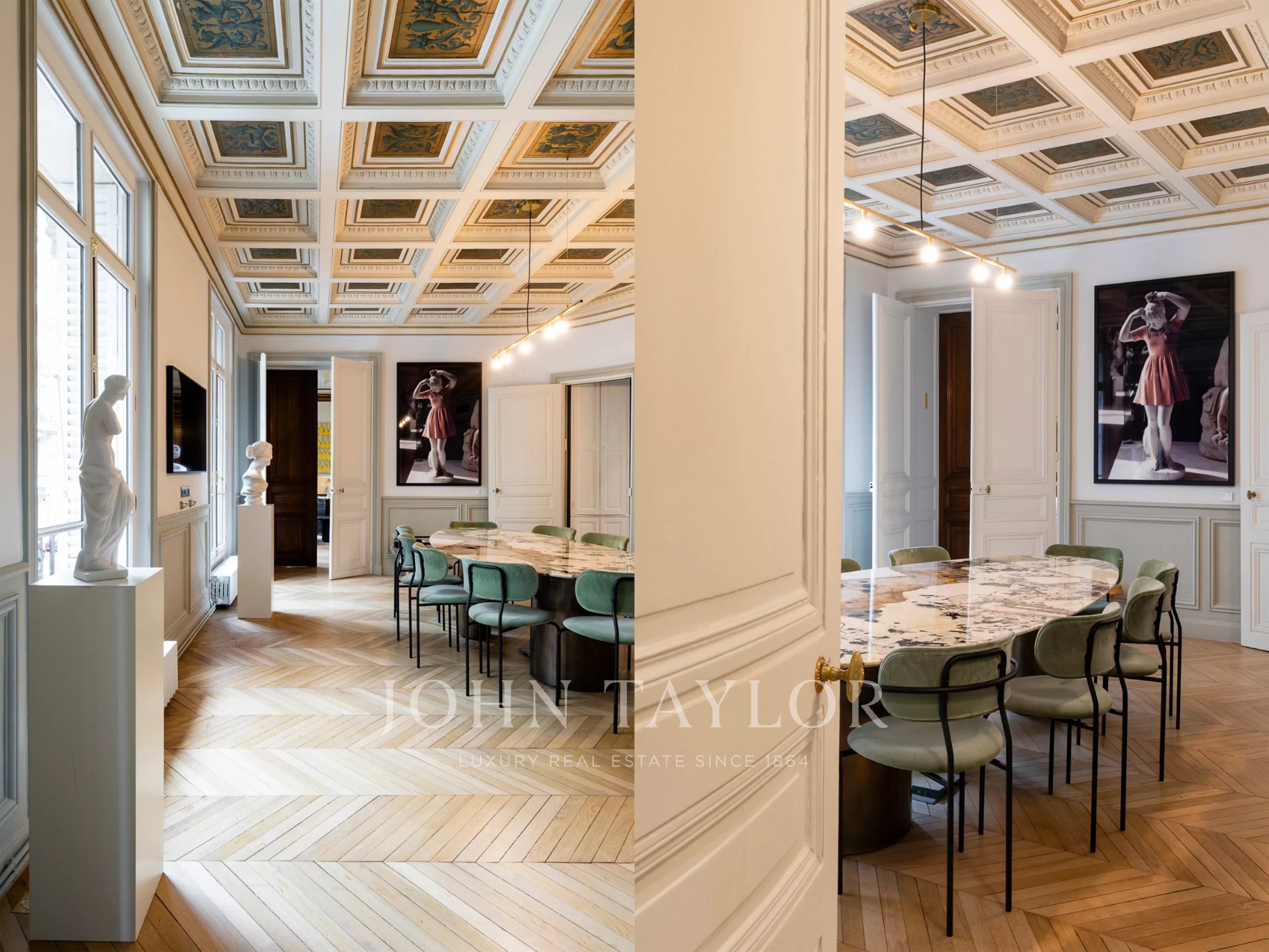 Beaux volumes, nombreuses fenêtres, boiseries, plafonds à caissons, moulures et parquets anciens donnent à ce lieu beaucoup de cachet et de potentiel pour s'y installer après quelques aménagements (salles de bains à créer).