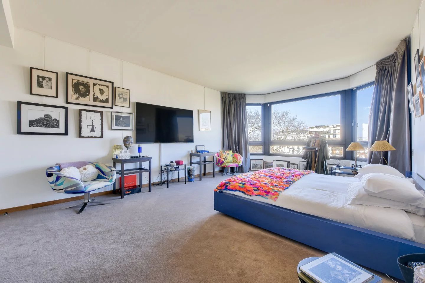 Seul à l'étage, cet appartement, traversant et baigné de lumière (triple exposition), offre de beaux volumes ainsi qu'une vue dégagée sur l'avenue Foch et la Défense.