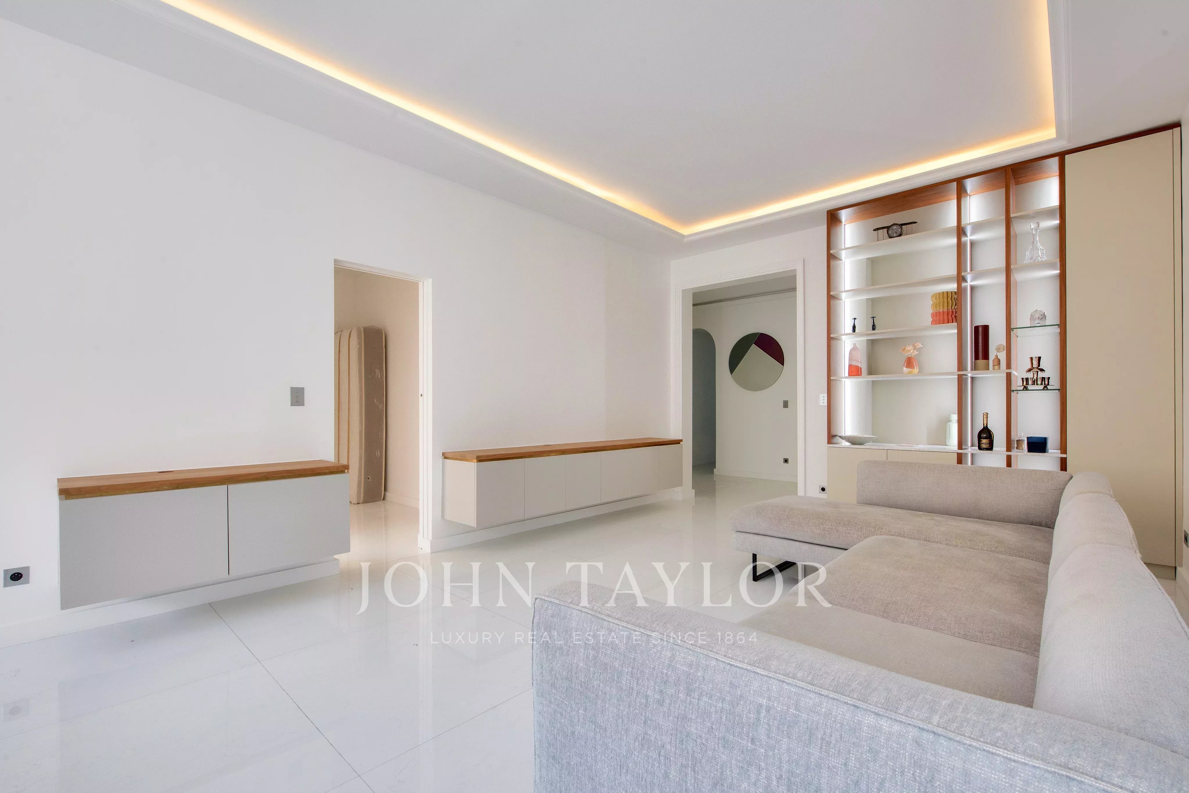 Baigné de lumière, l’appartement bénéficie d’un plan parfaitement optimisé, avec toutes les pièces ouvrant sur des extérieurs. Il se compose ainsi :