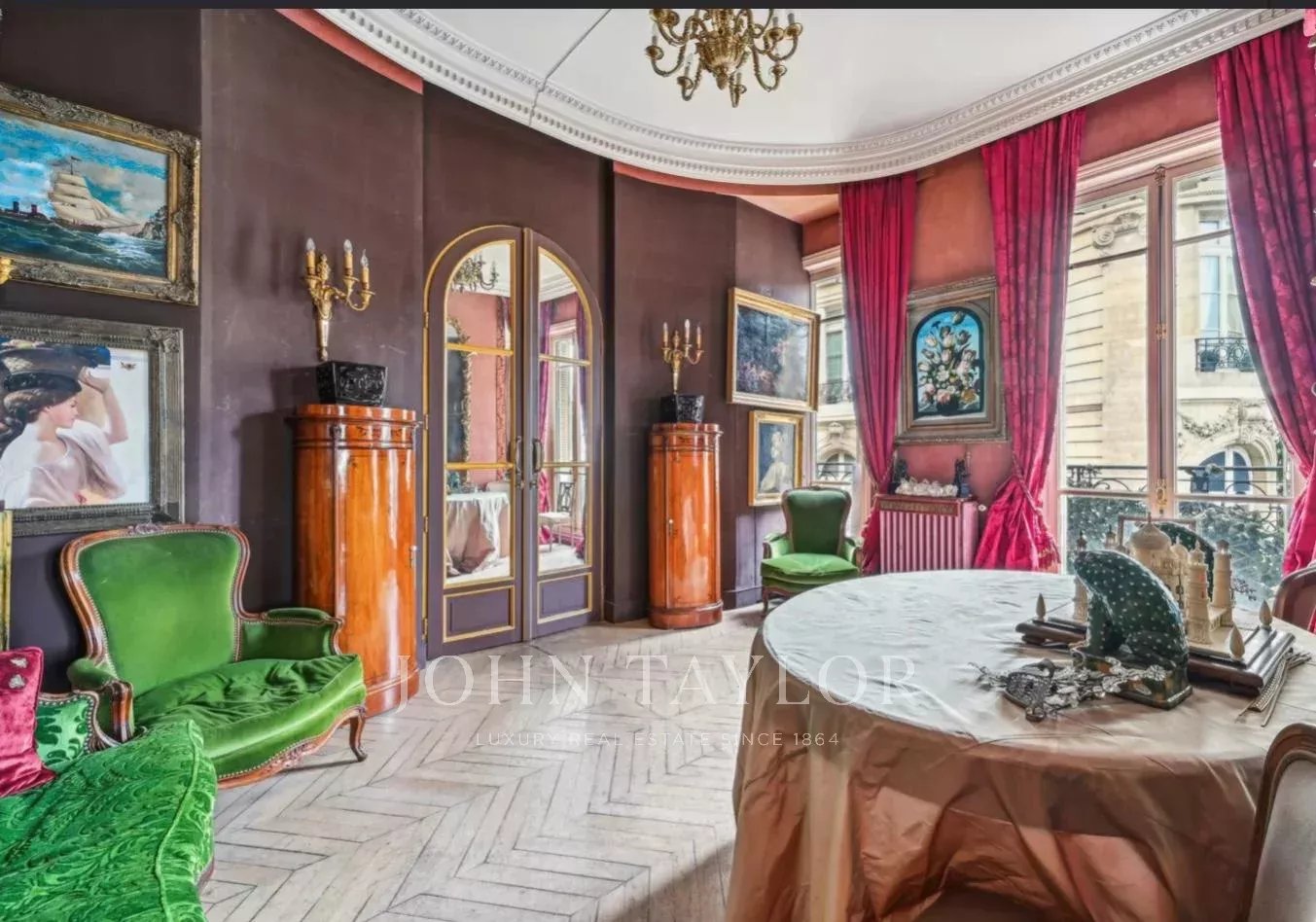 Situé au 2ᵉ étage d’un immeuble de grand standing, cet appartement de 292 m² aux volumes généreux se compose comme suit :