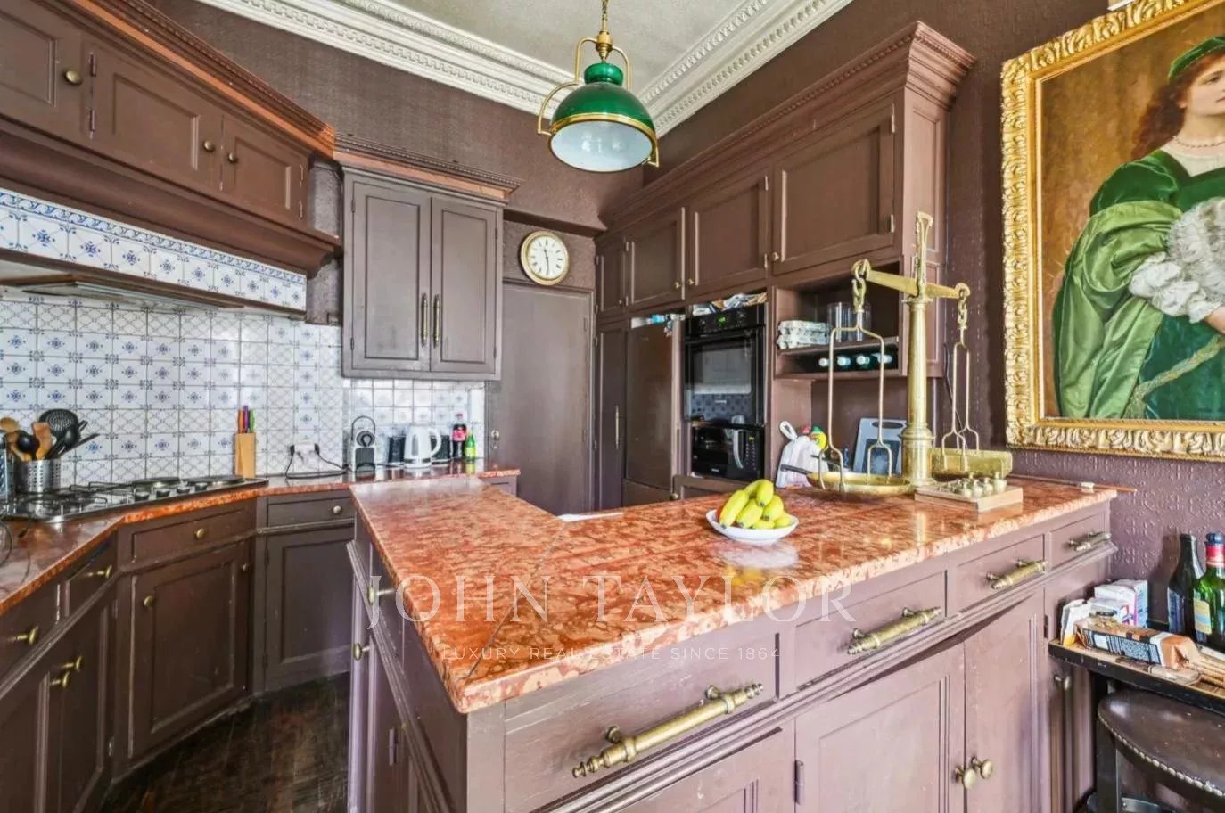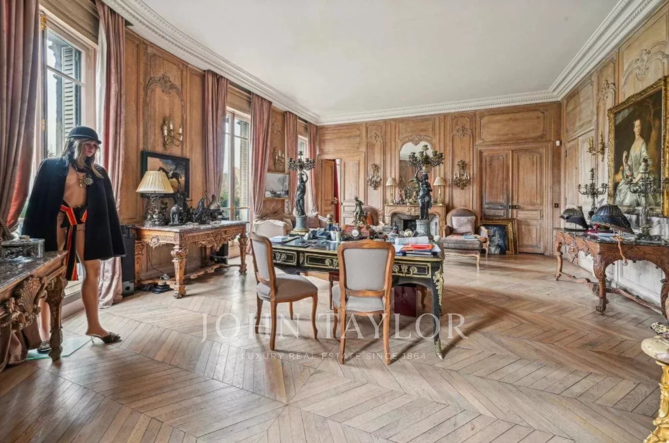 Beaucoup de cachet (parquets anciens, cheminées, moulures, boiseries), balcon filant. Travaux à prévoir.