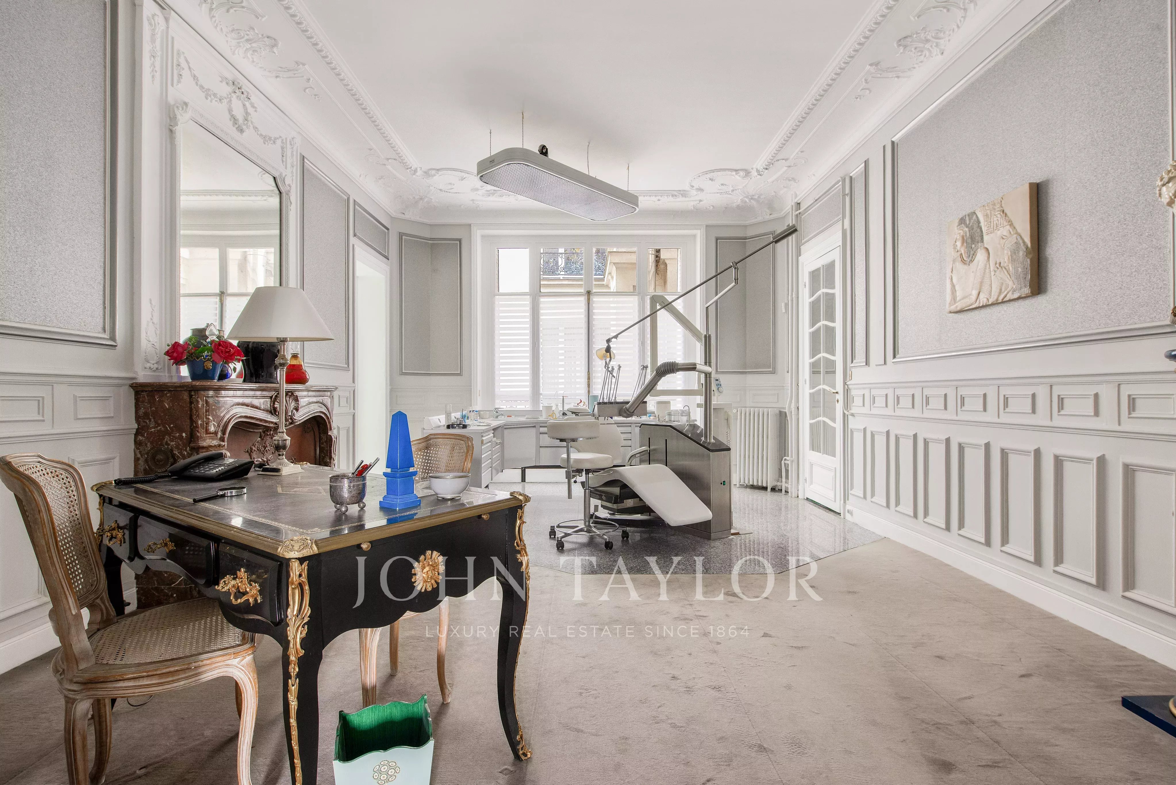 Nous vous proposons un appartement de 235m² situé au premier étage. Vous serez séduits par son plan traversant et ses beaux volumes. ayant conservé le parquet, les moulures ainsi que les cheminées.