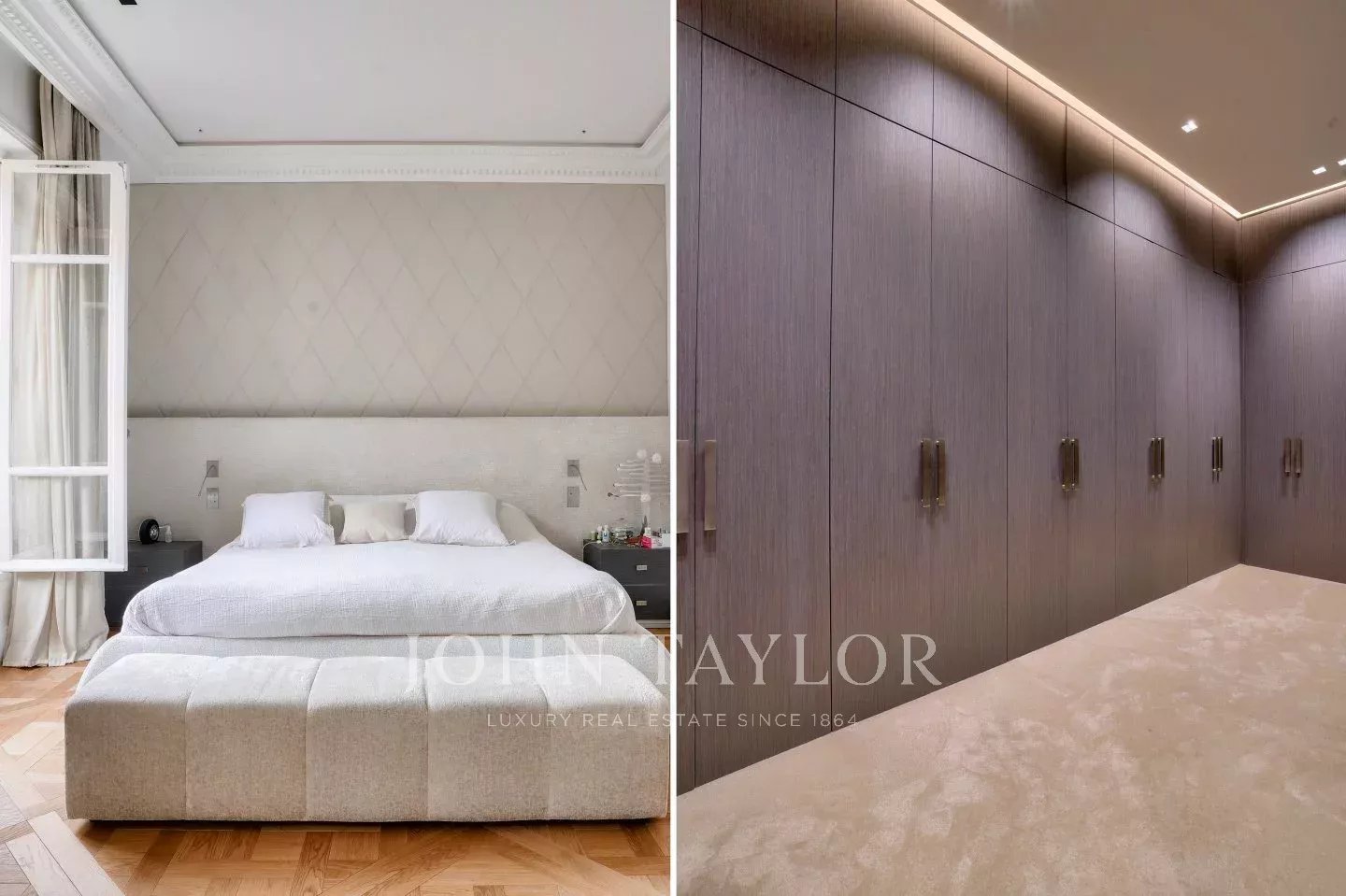 Dans un immeuble ancien sécurisé de très grand standing avec conciergerie, au 4ème étage avec ascenseur, nous vous proposons un superbe appartement de réception et familial refait à neuf, d’une surface de 389 m². Il se compose comme suit ;