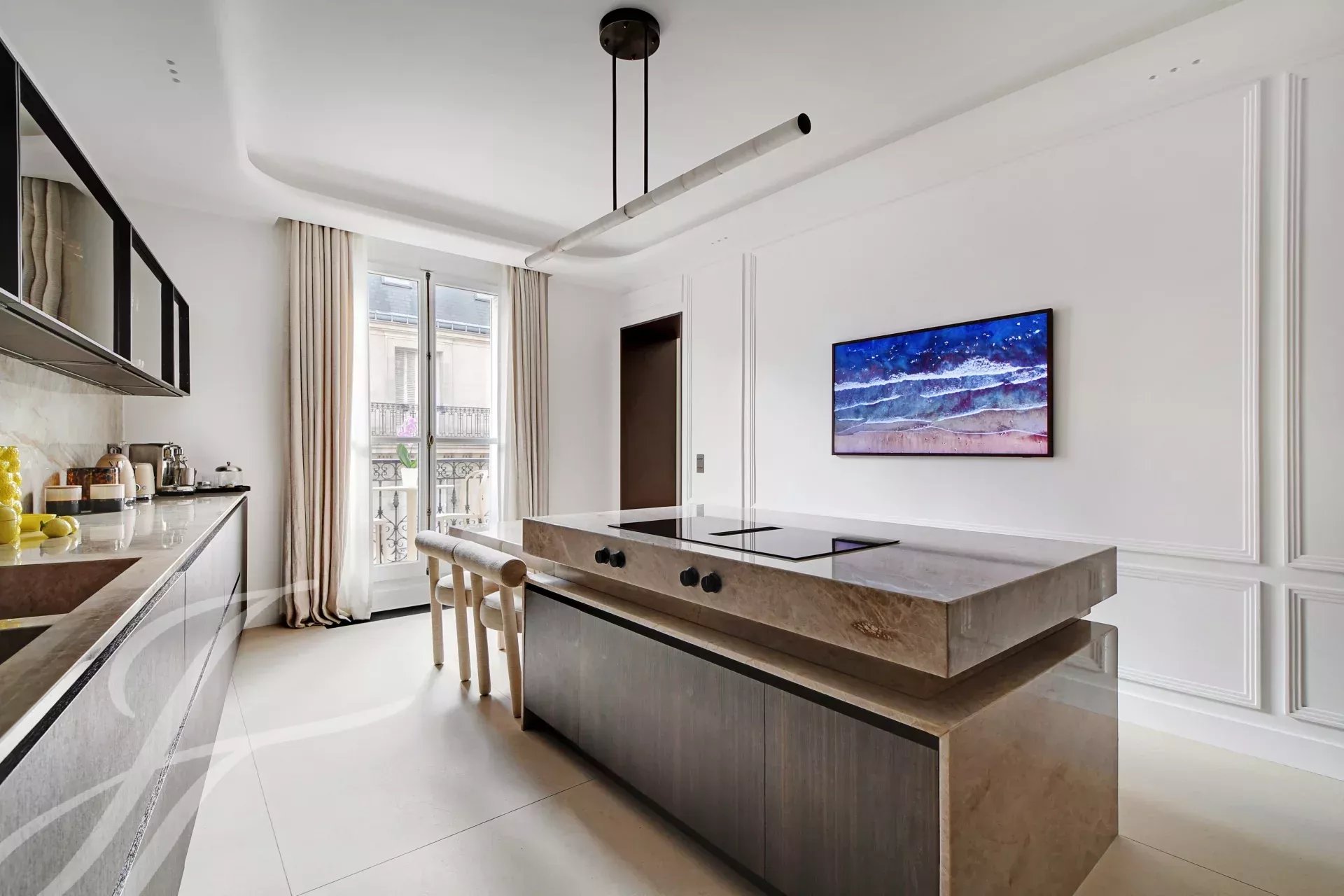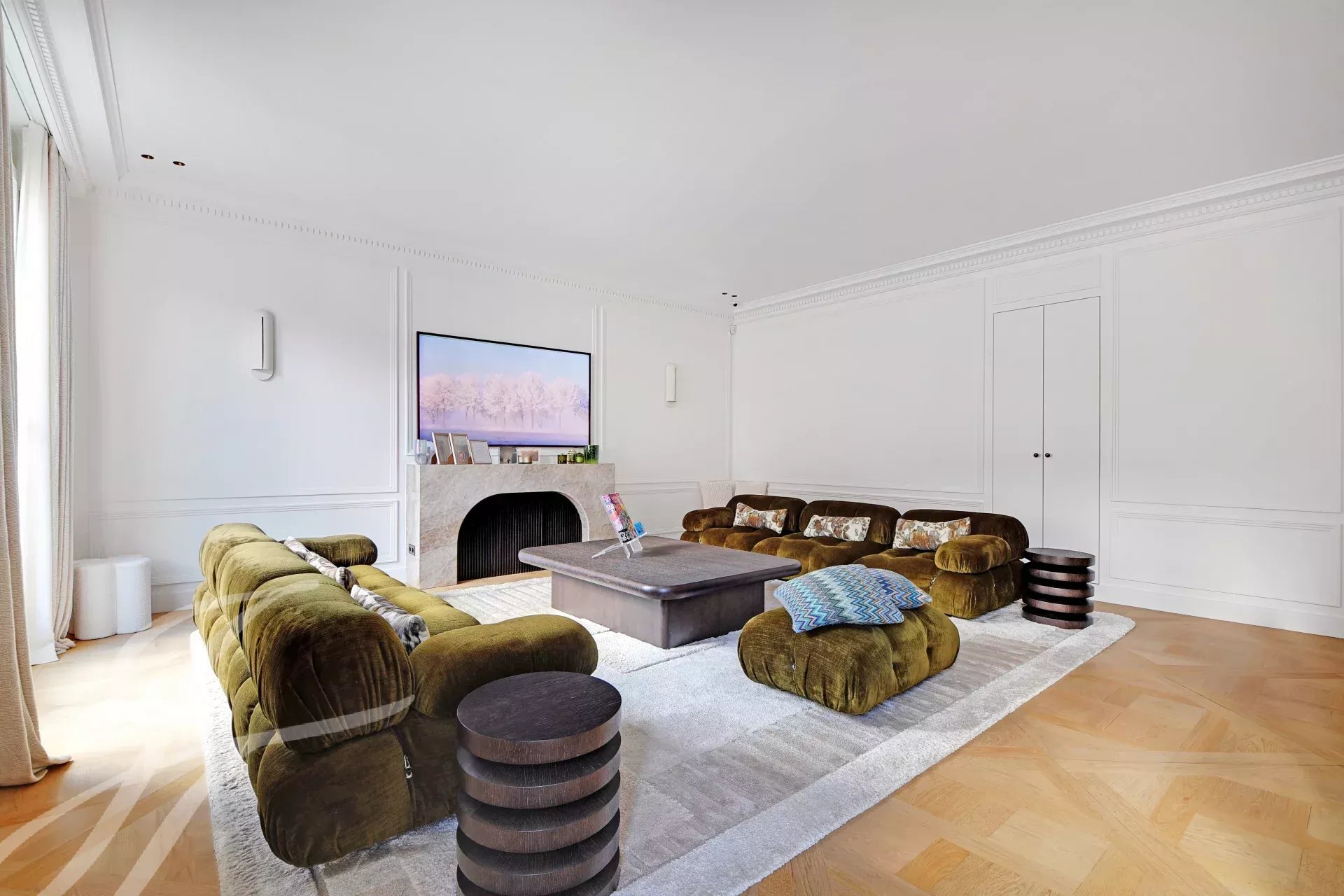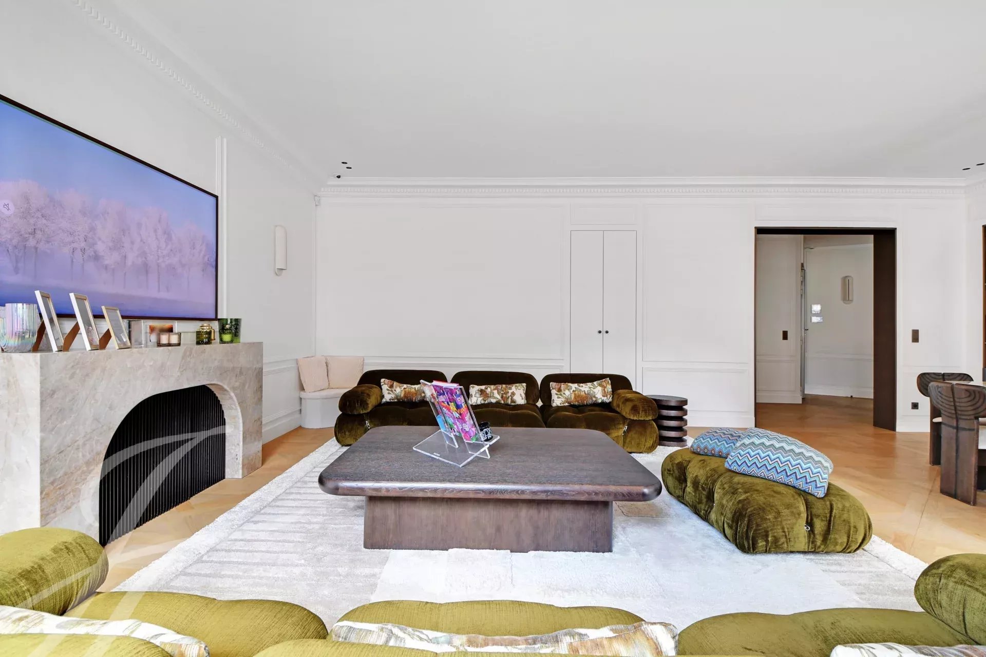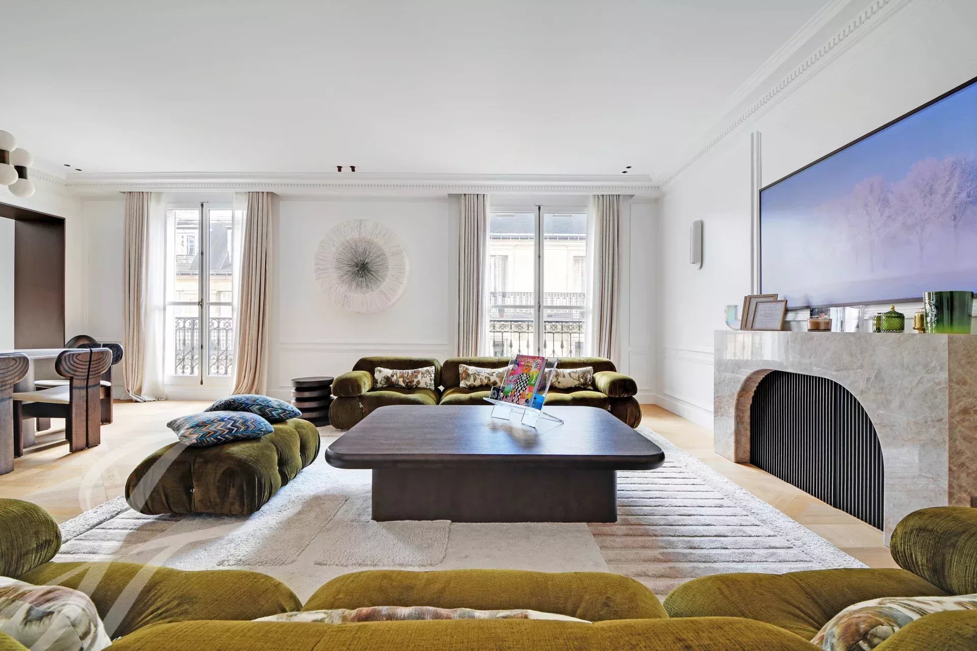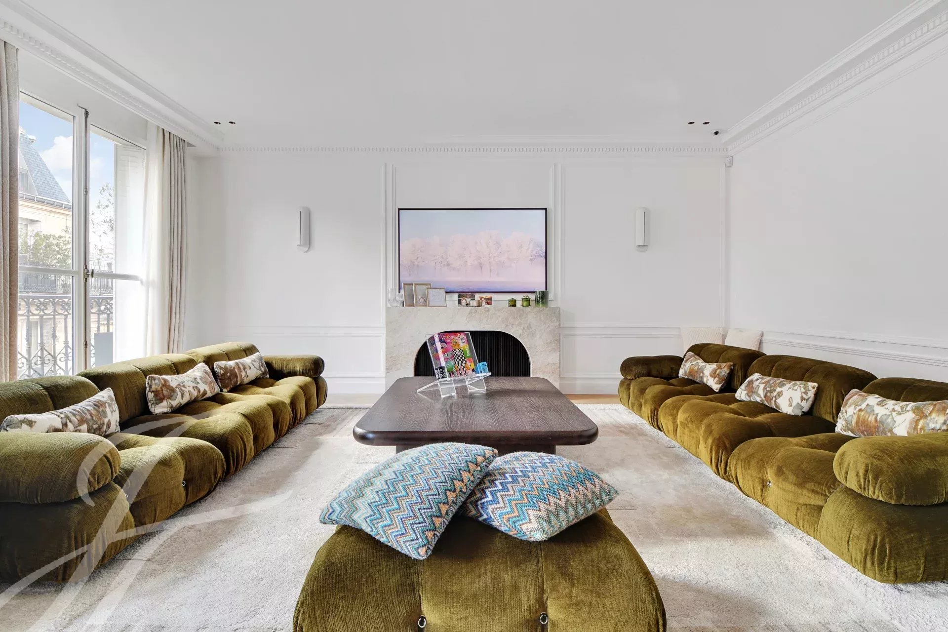 Au 5ème étage d’un immeuble haussmannien de grand standing avec ascenseur, superbe appartement familial et de réception de 152 m² carrez, bénéficiant d’un balcon filant et d’une belle luminosité traversante.
