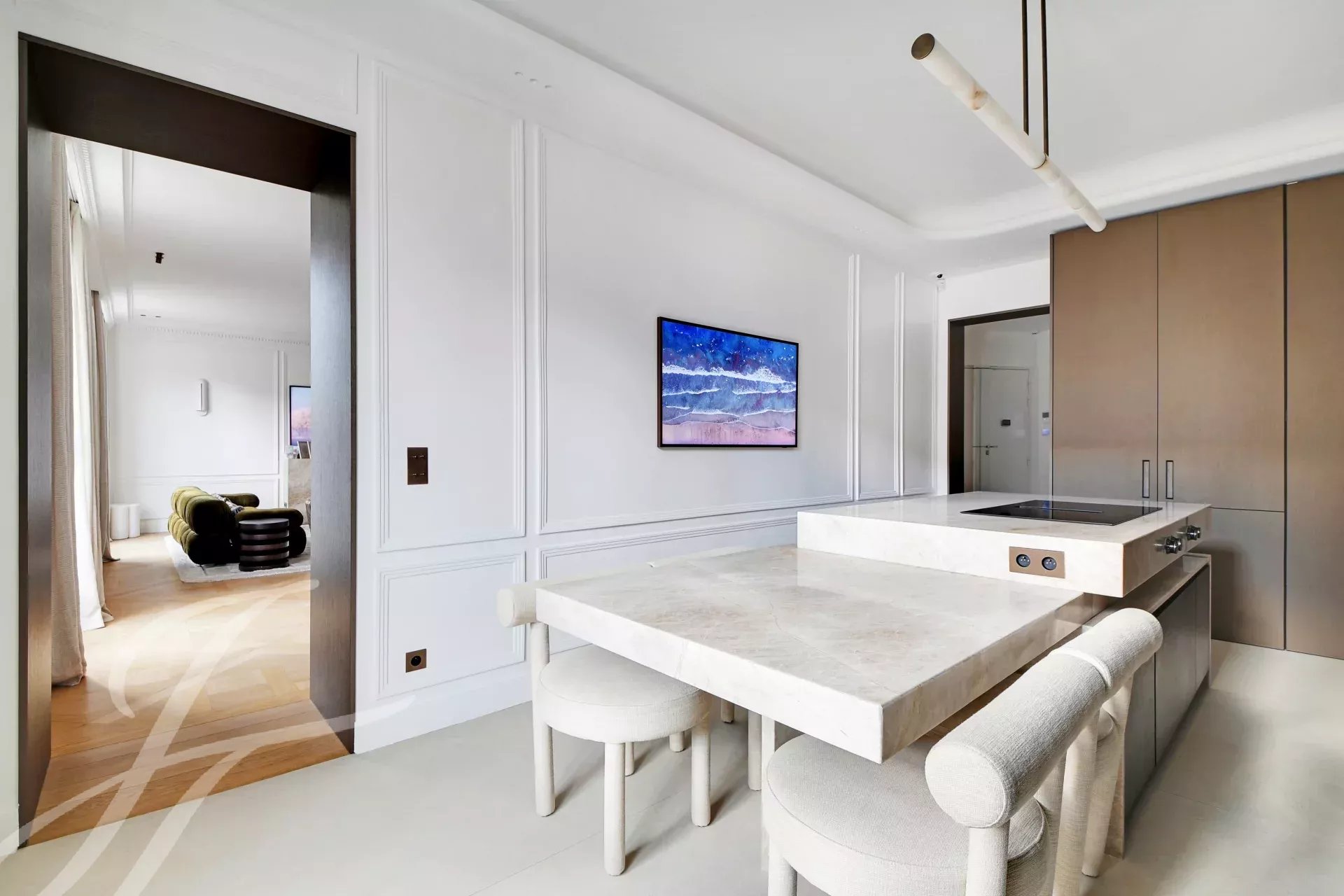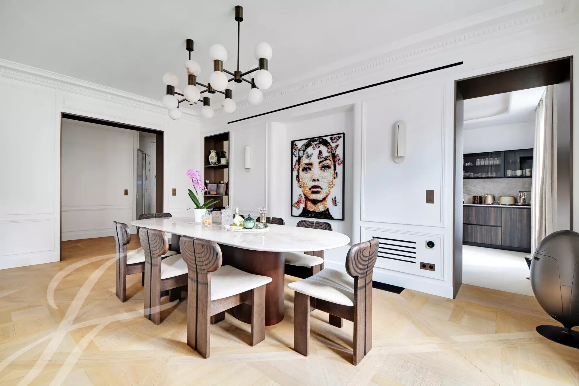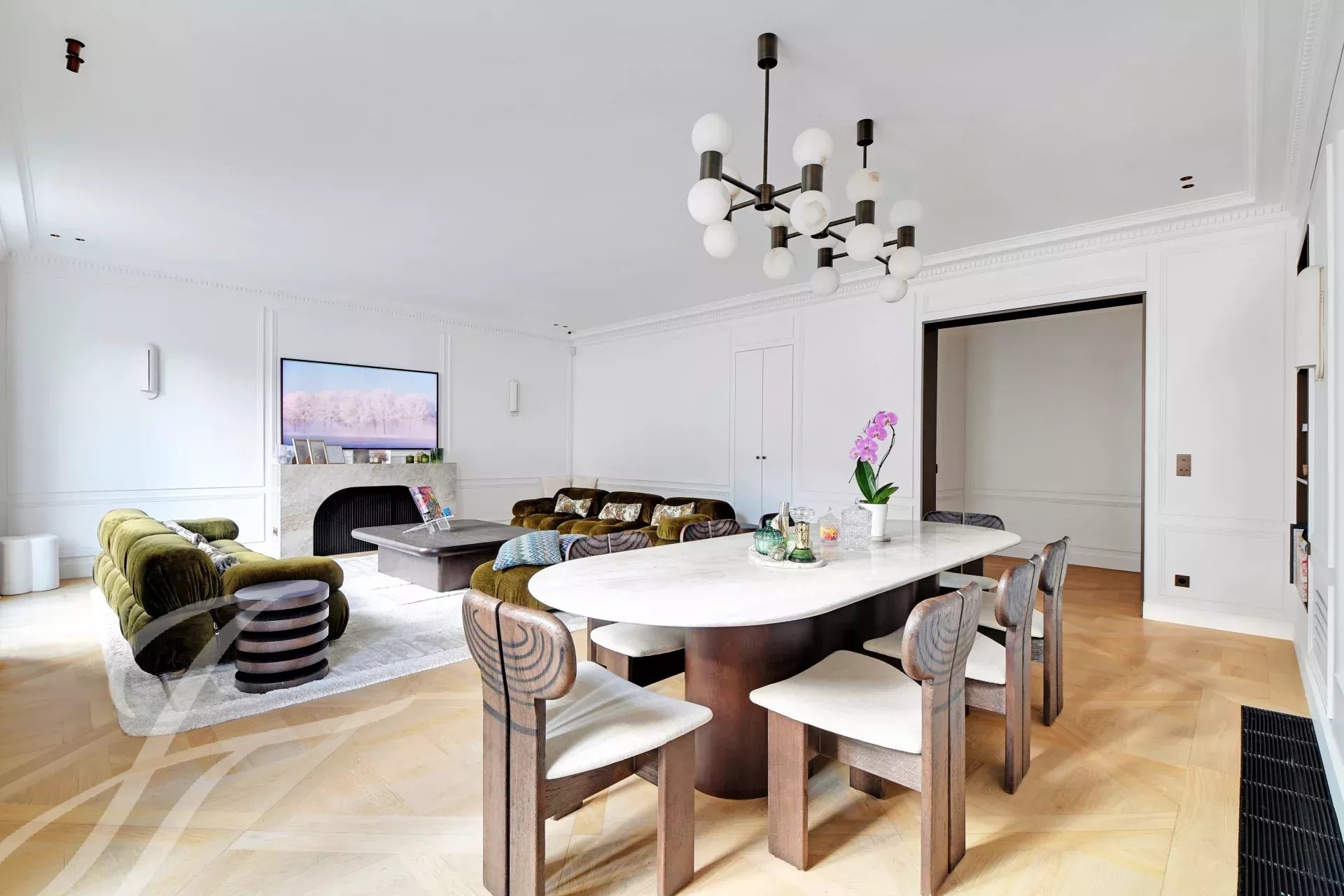 - Une élégante réception avec salon et salle à manger,