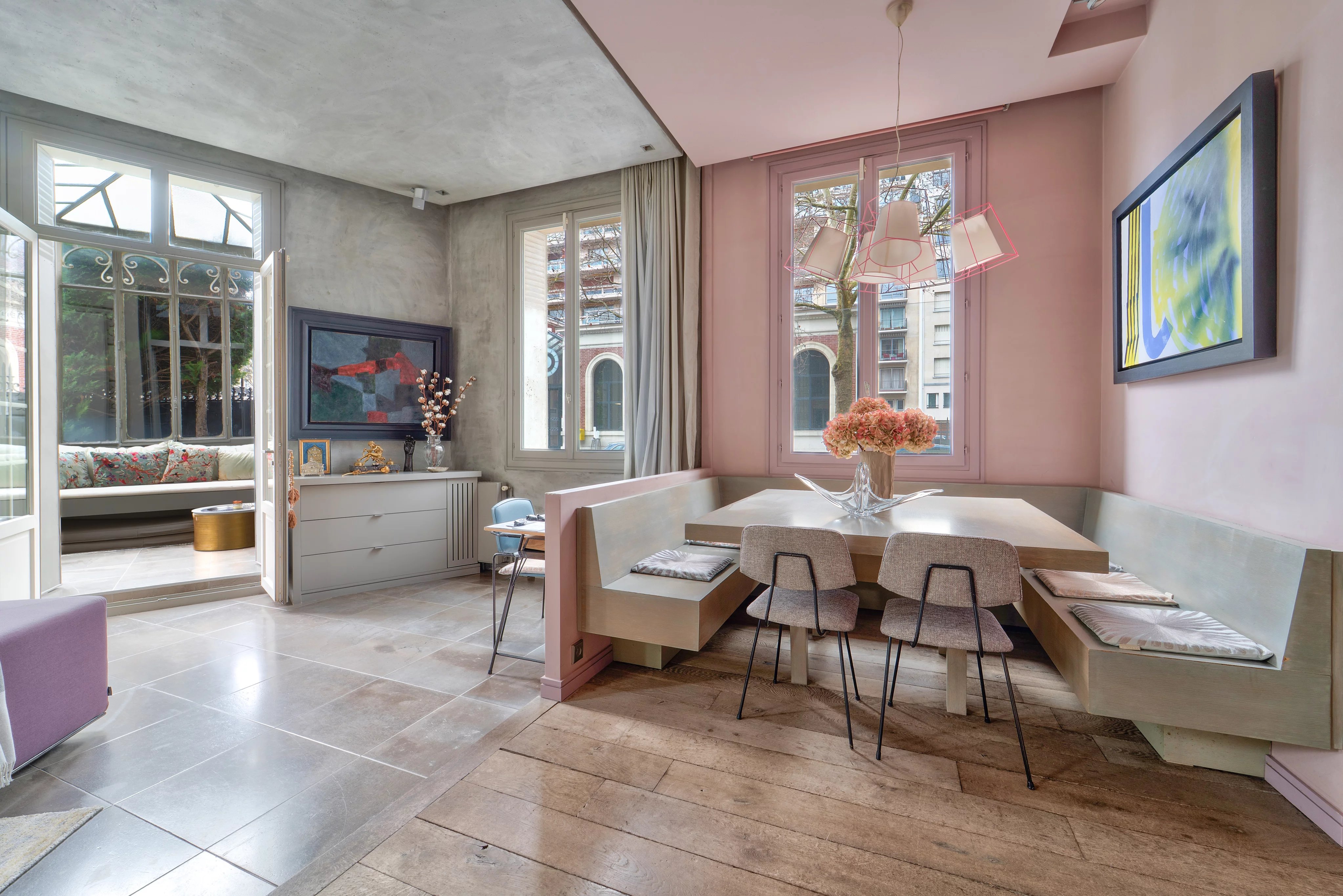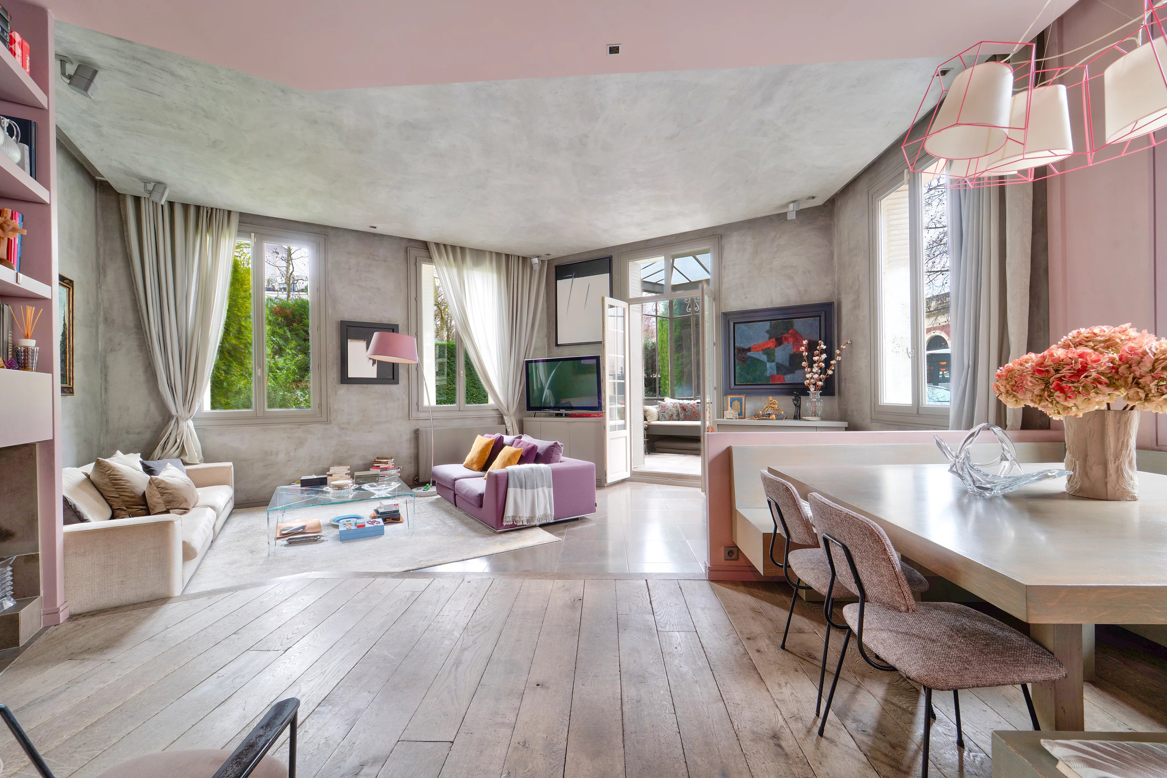 - Un salon et une salle à manger ouvertes sur le jardin