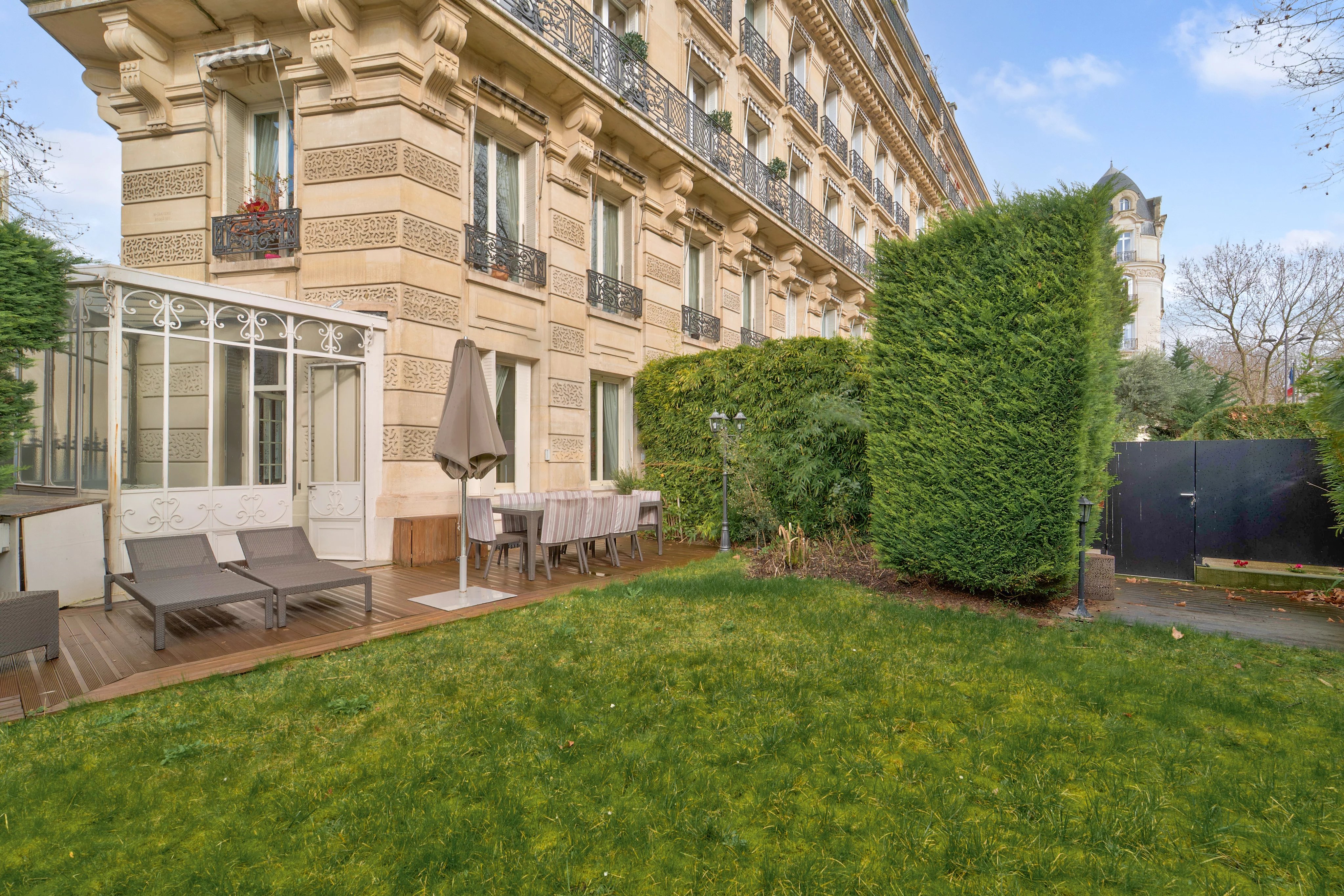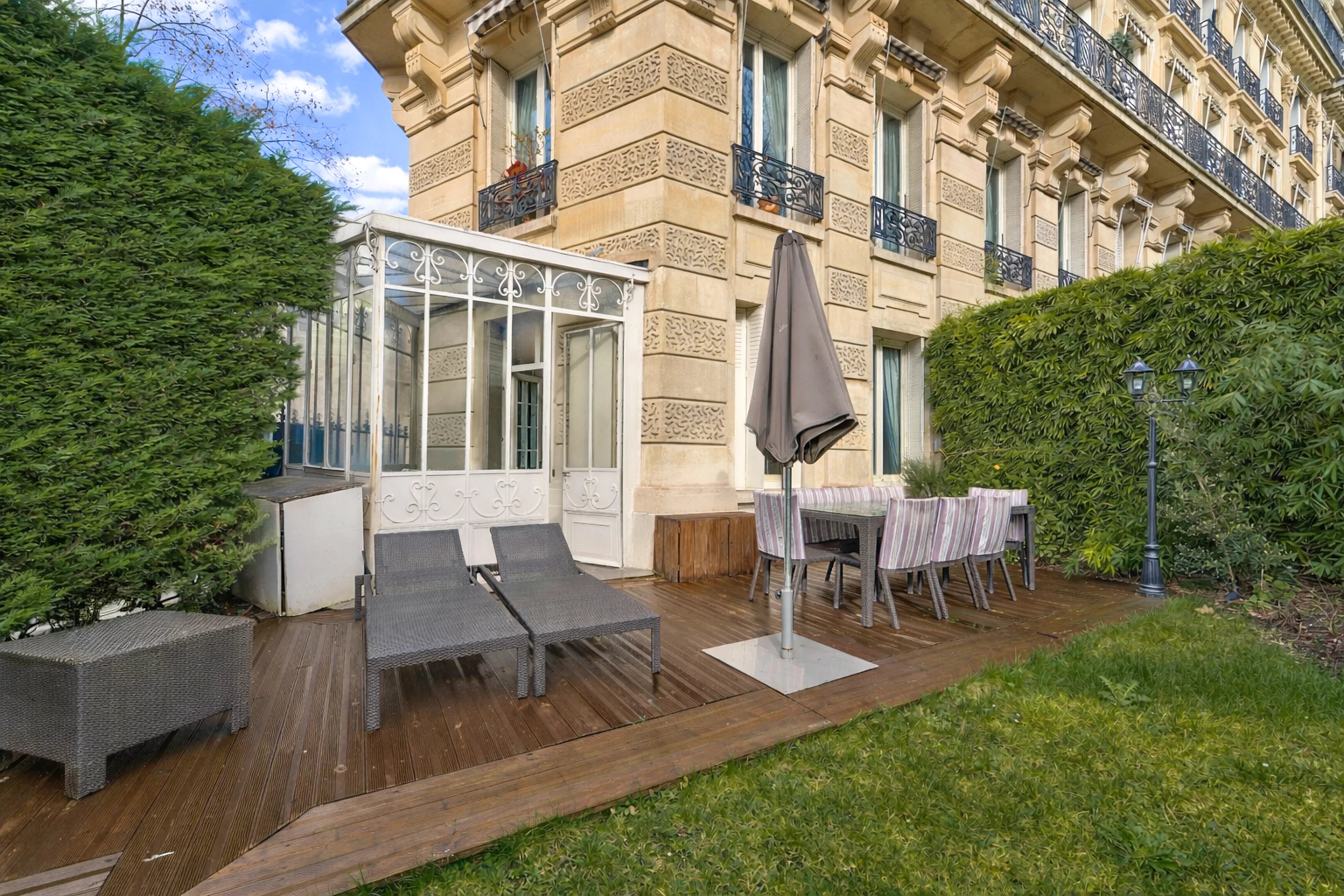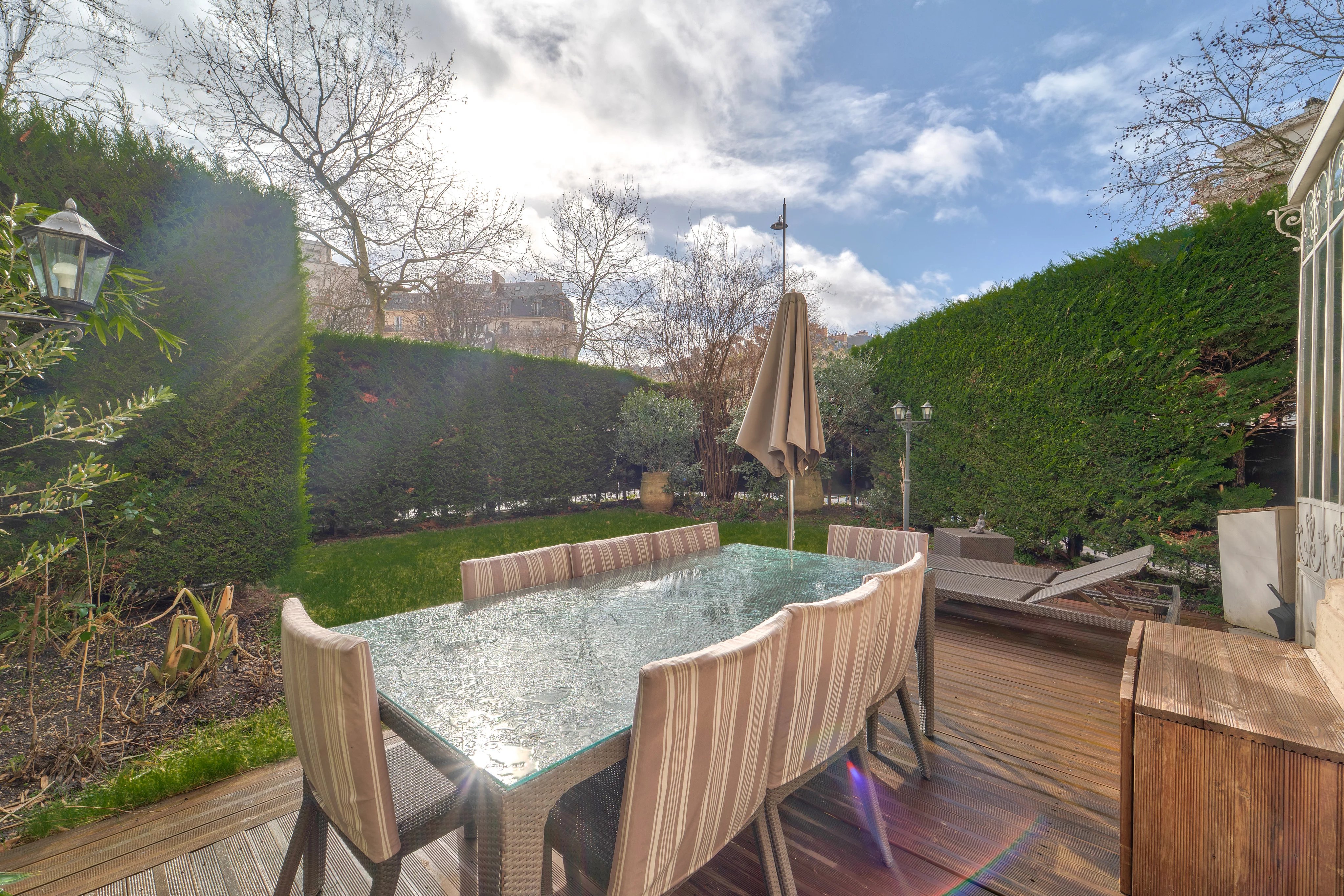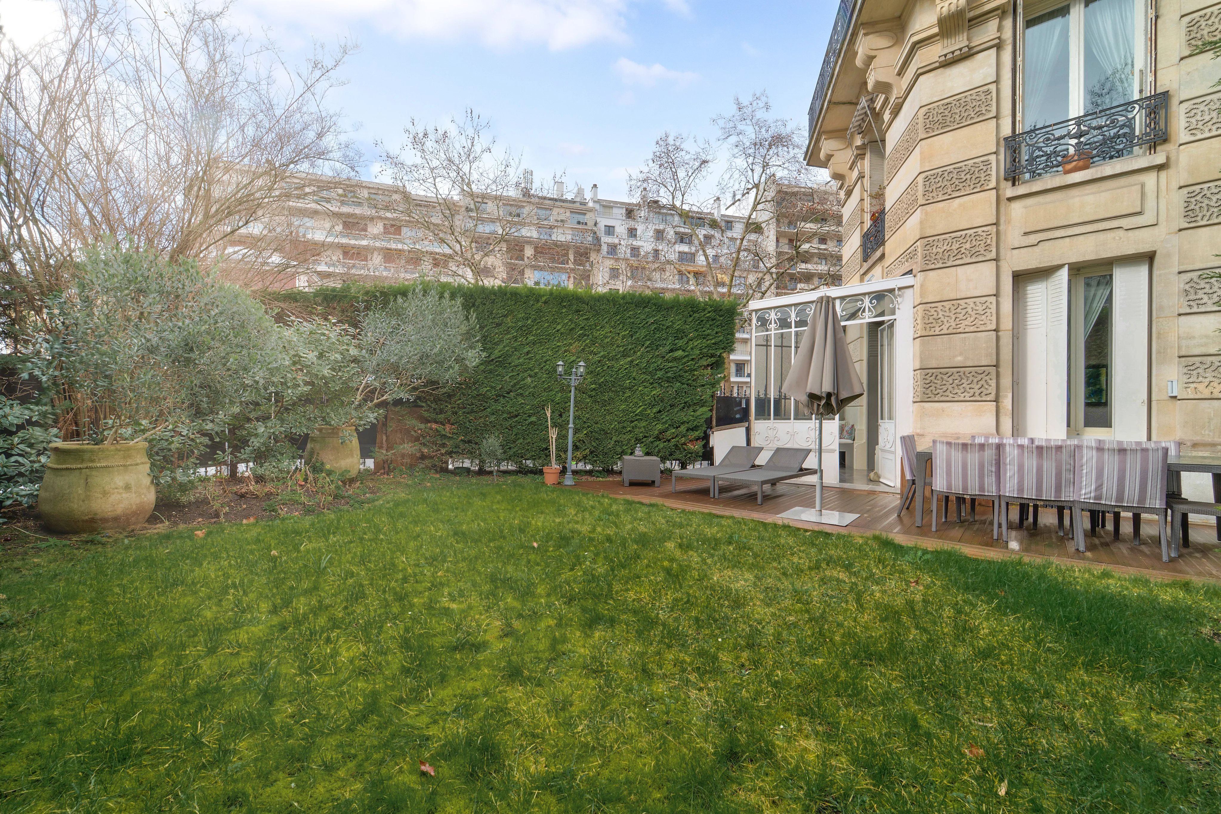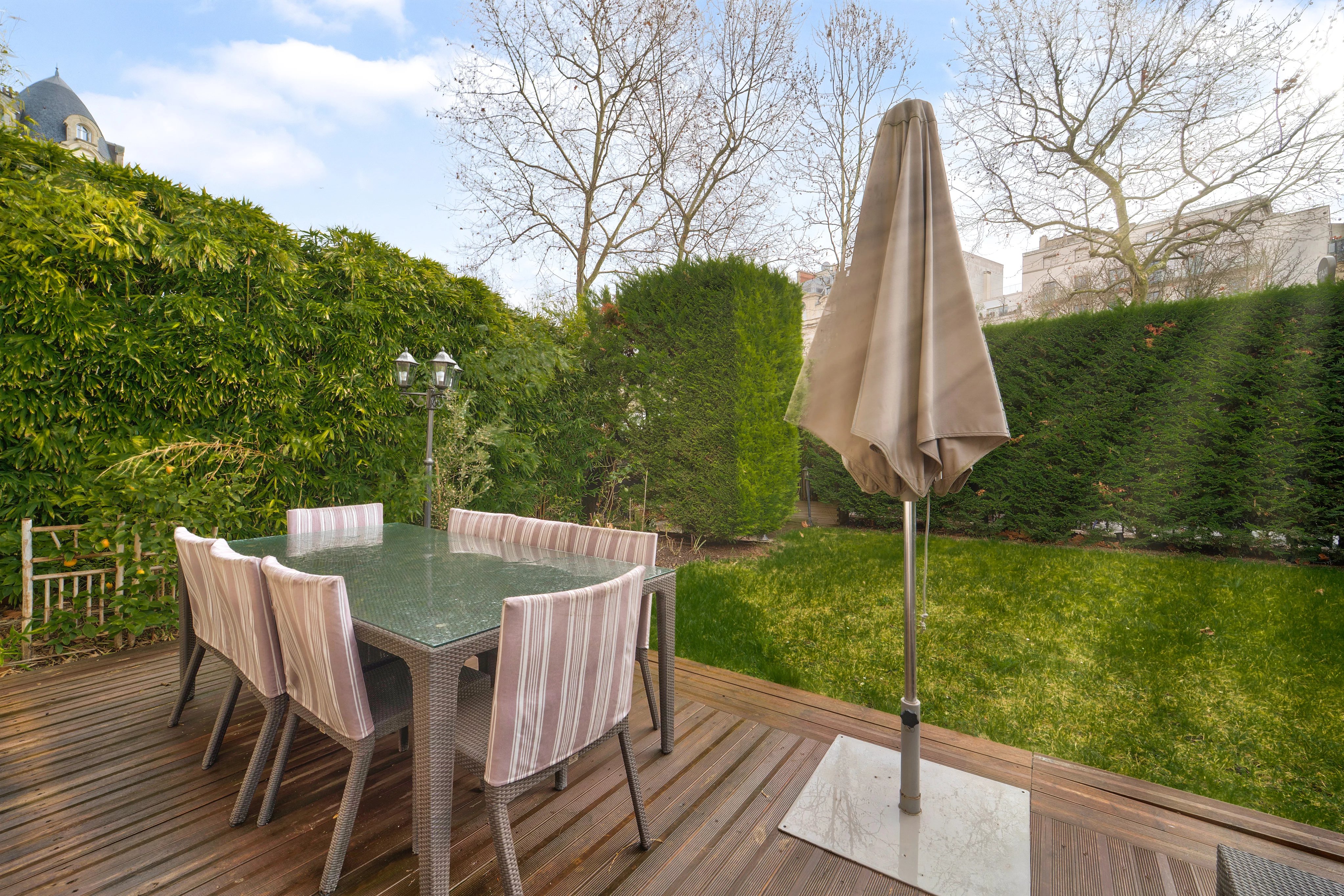 Le jardin est paysagé et bénéfice de la meilleure exposition qui rend cet appartement très lumineux et chaleureux.
