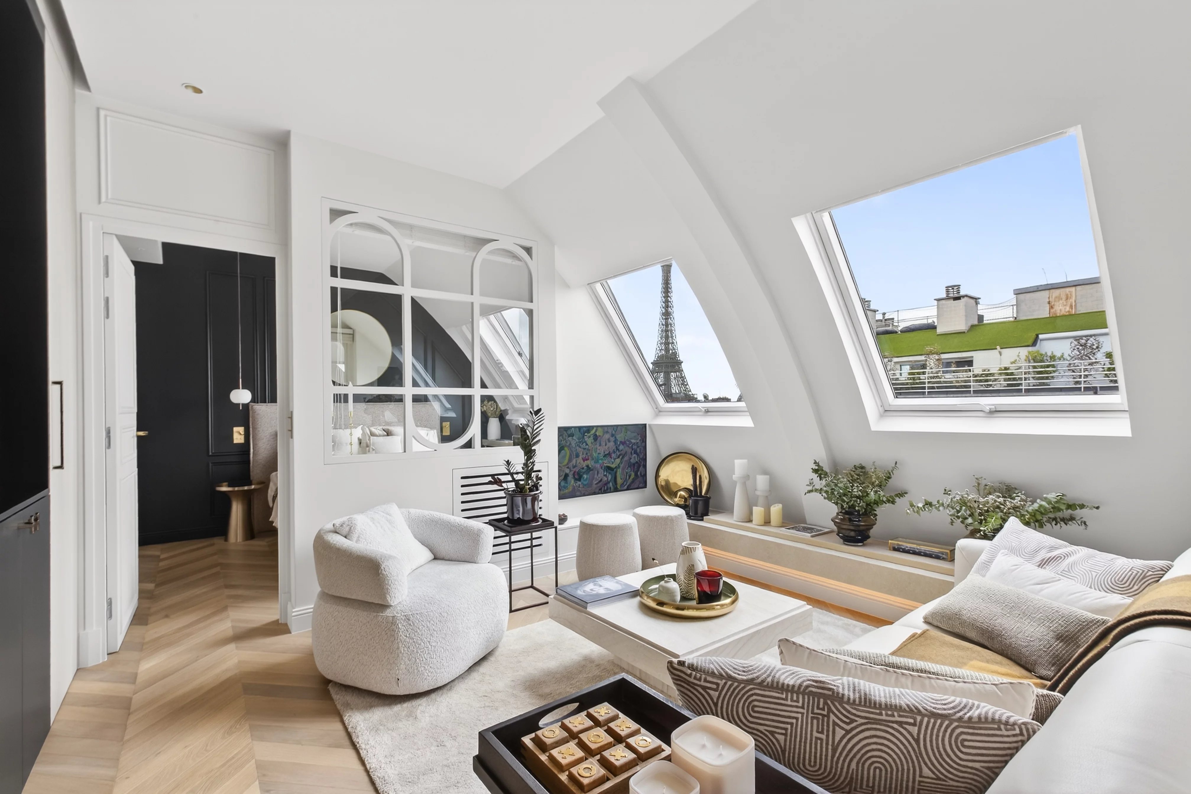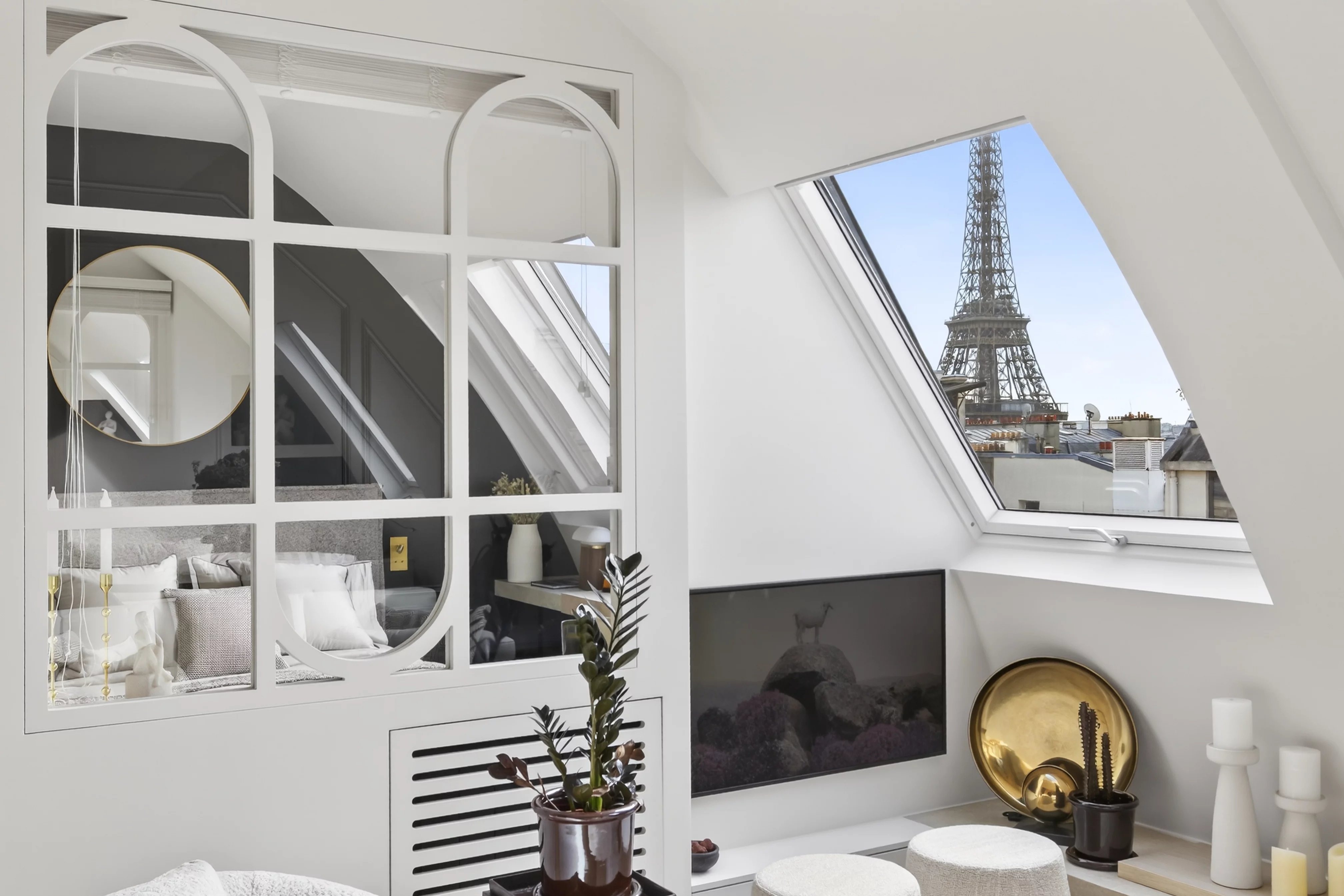 - Un séjour baigné de lumière avec des vues imprenables sur la Tour Eiffel,