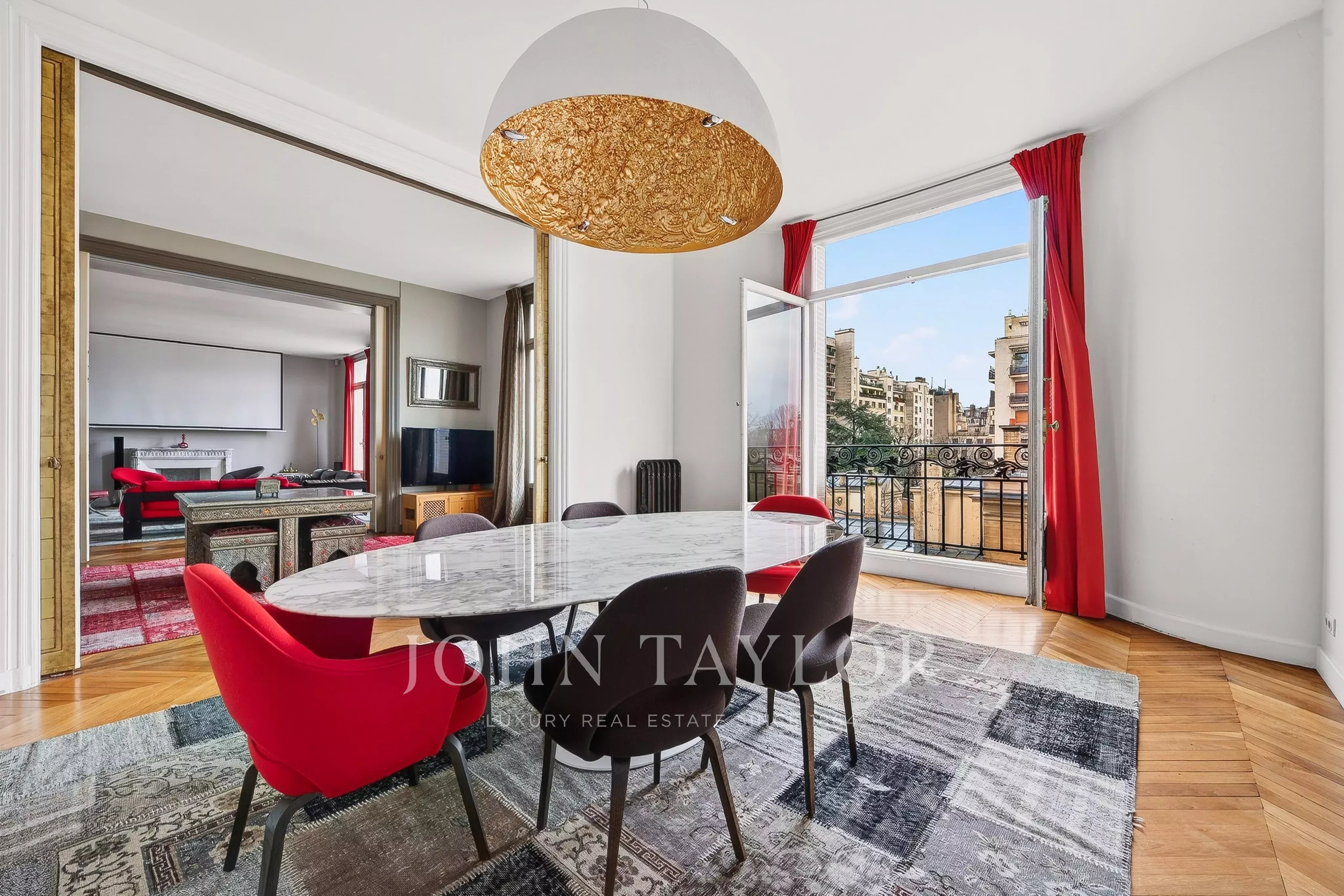 - Une triple réception de 83,31 m² dévoile trois espaces de vie aux volumes généreux (3,30 m de hauteur sous plafond) : deux salons et une salle à manger communicants sans aucun vis-à-vis, offrant un cadre idéal pour recevoir