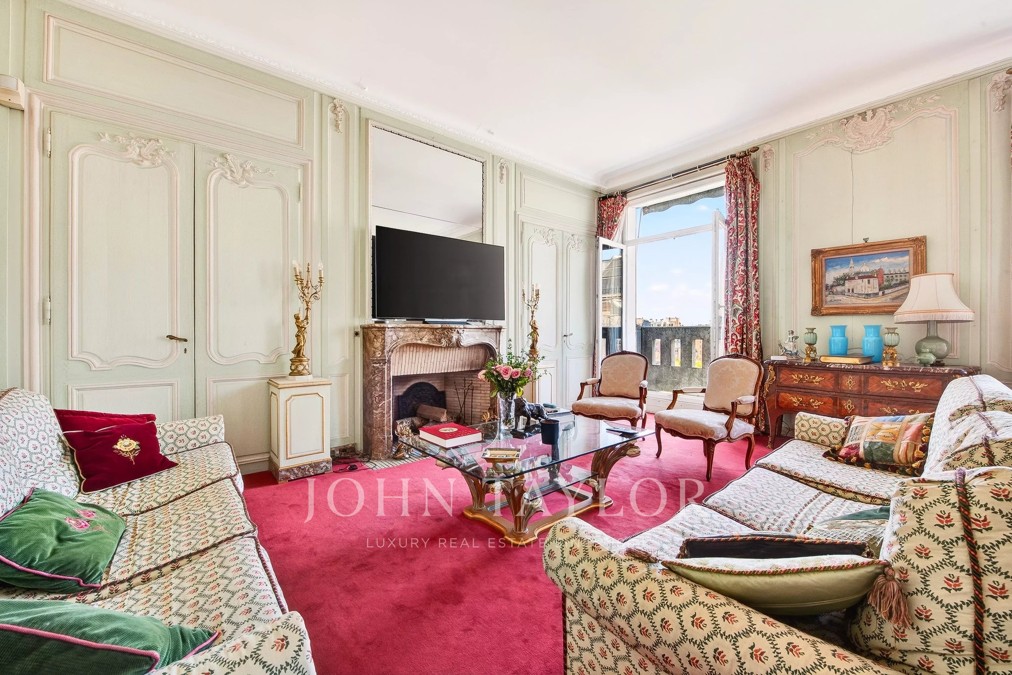 Baigné de lumière grâce à sa configuration d’angle et son exposition plein Sud, il bénéficie de superbes vues dégagées, de balcons, et d’un environnement résidentiel sécurisé à proximité de beaux hôtels particuliers, d'ambassades, et des jardins du Ranelagh.