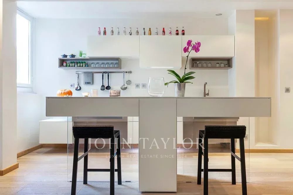 L’appartement dispose de nombreux rangements sur mesure et a été rénové avec des matériaux de qualité, offrant un cadre de vie confortable et immédiatement habitable.