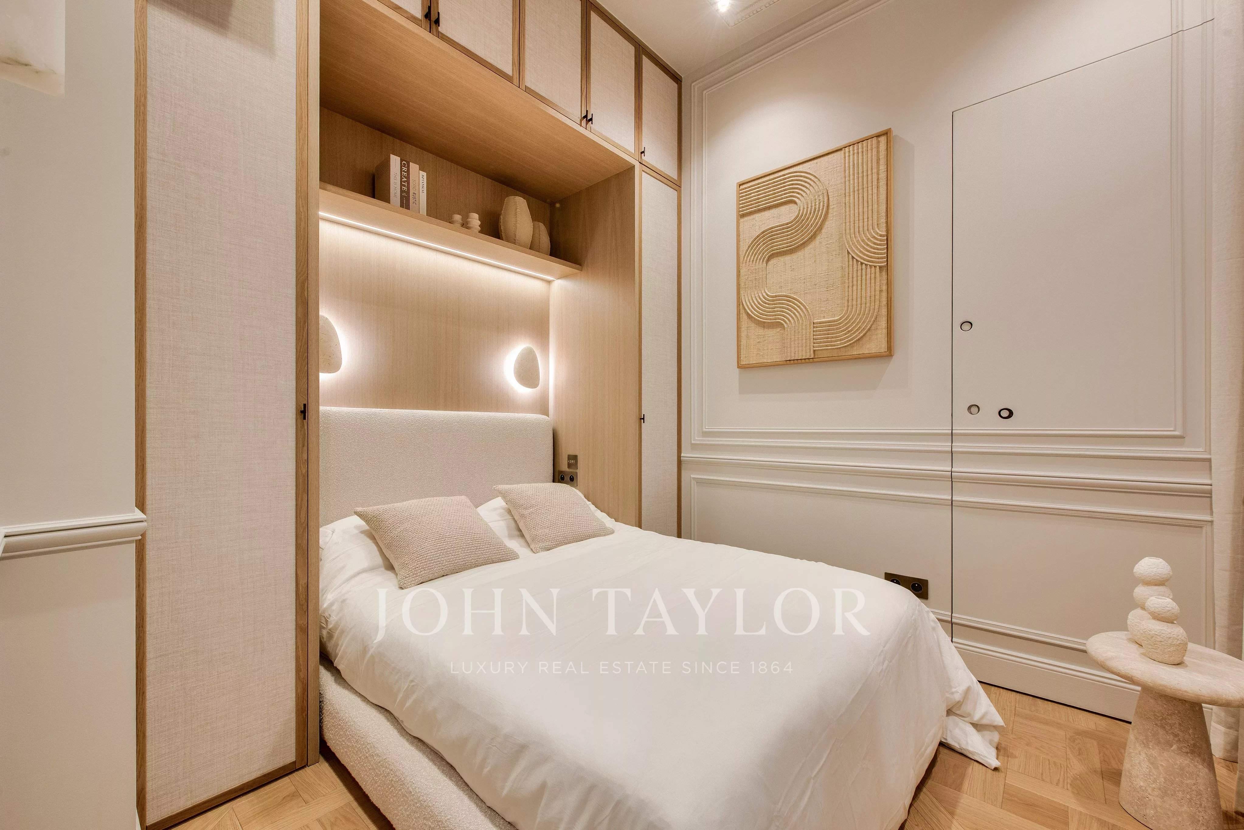 Situé au deuxième étage avec ascenseur dans un immeuble Haussmannien de très bon standing, ce bien est vendu avec l'intégrité des meubles et des équipements.
