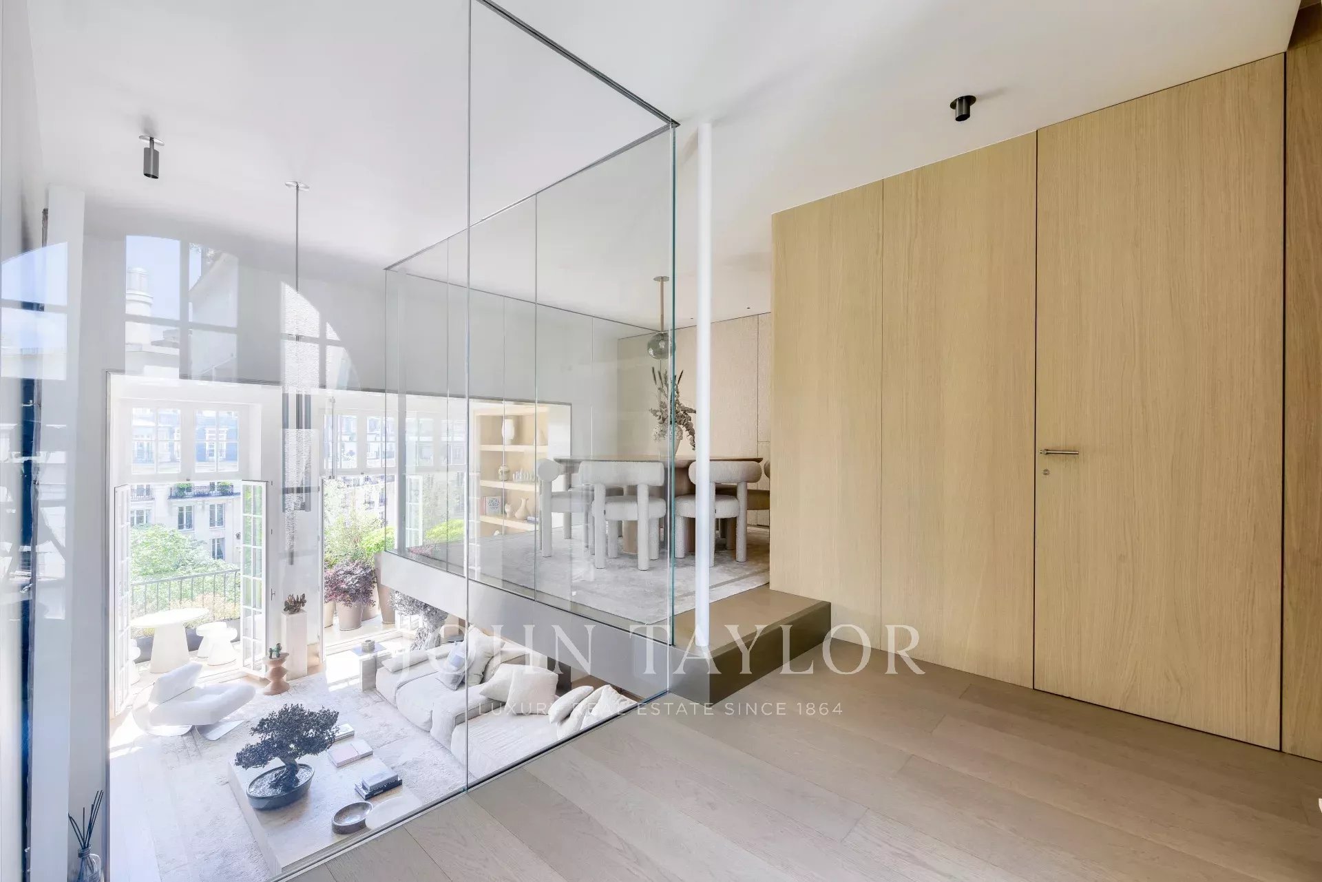 Au sein d'un très bel immeuble années 30 de standing, sublime appartement en triplex de 230 m², situé aux derniers étages avec ascenseur, bénéficiant d'un superbe rooftop et deux terrasses de plain-pied avec des vues fabuleuses.