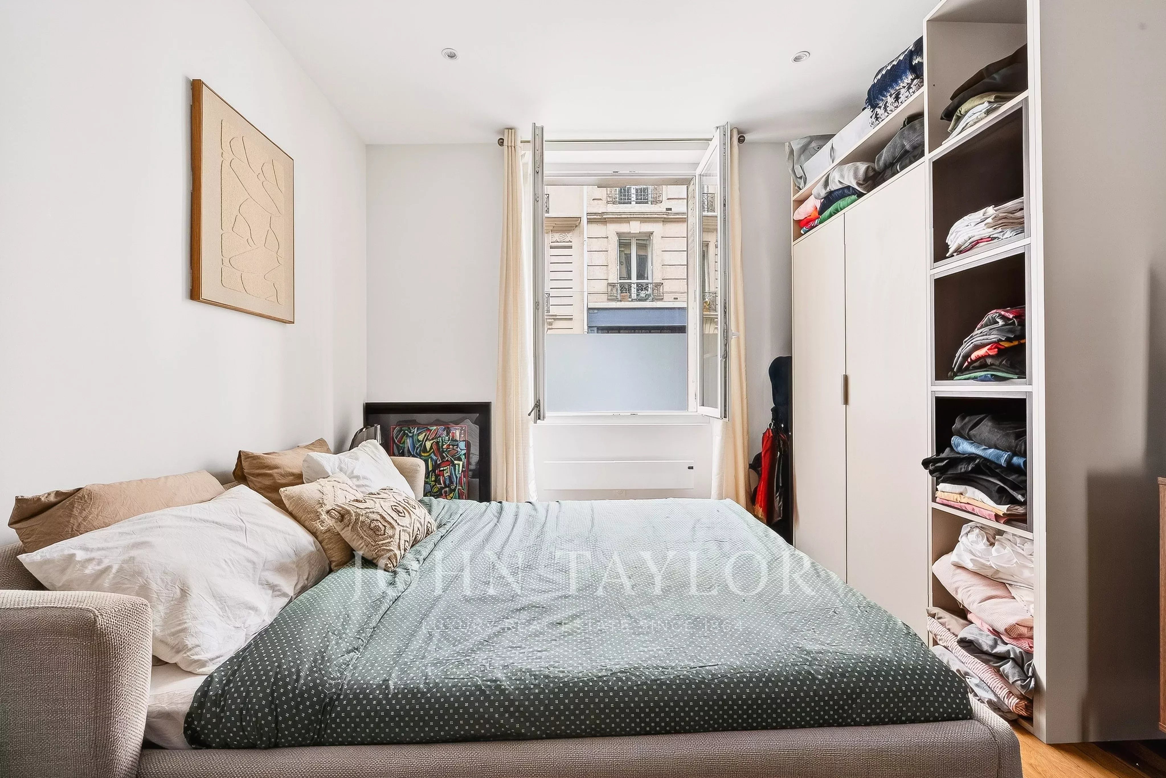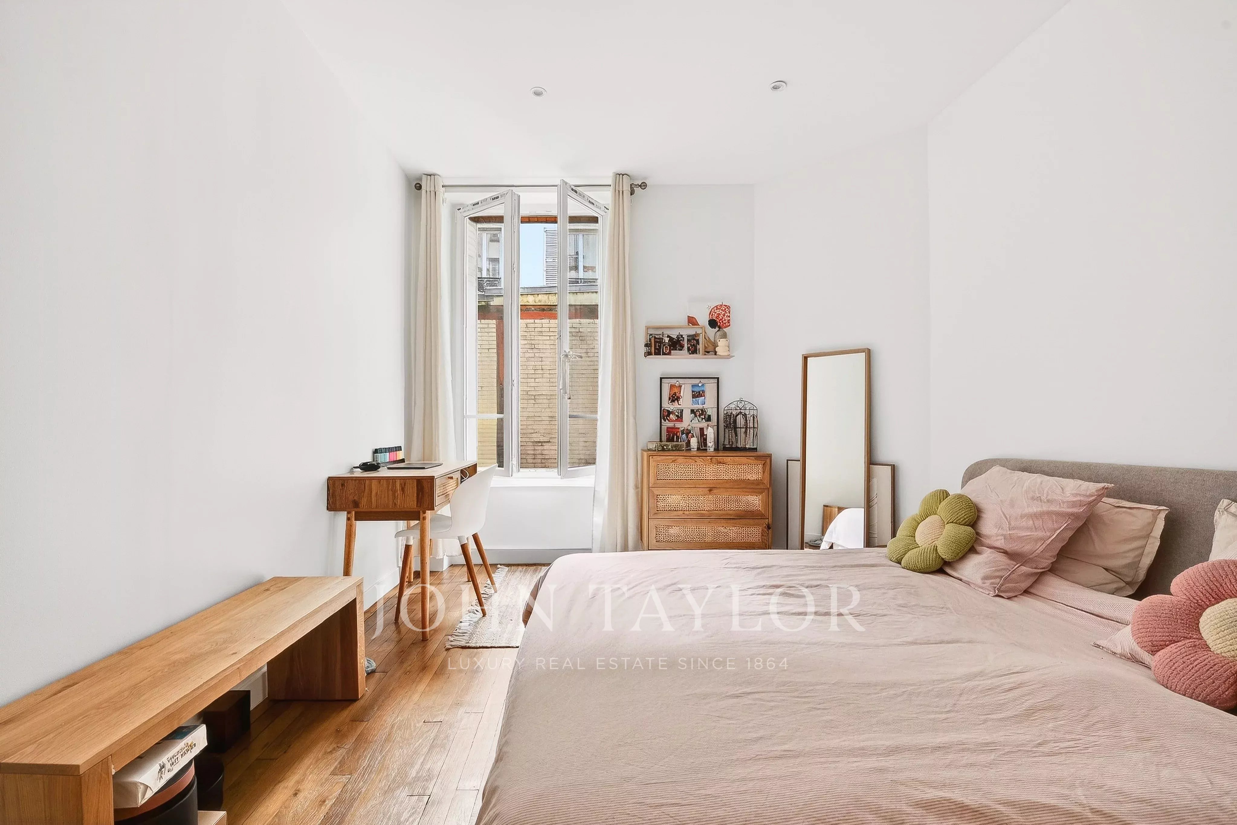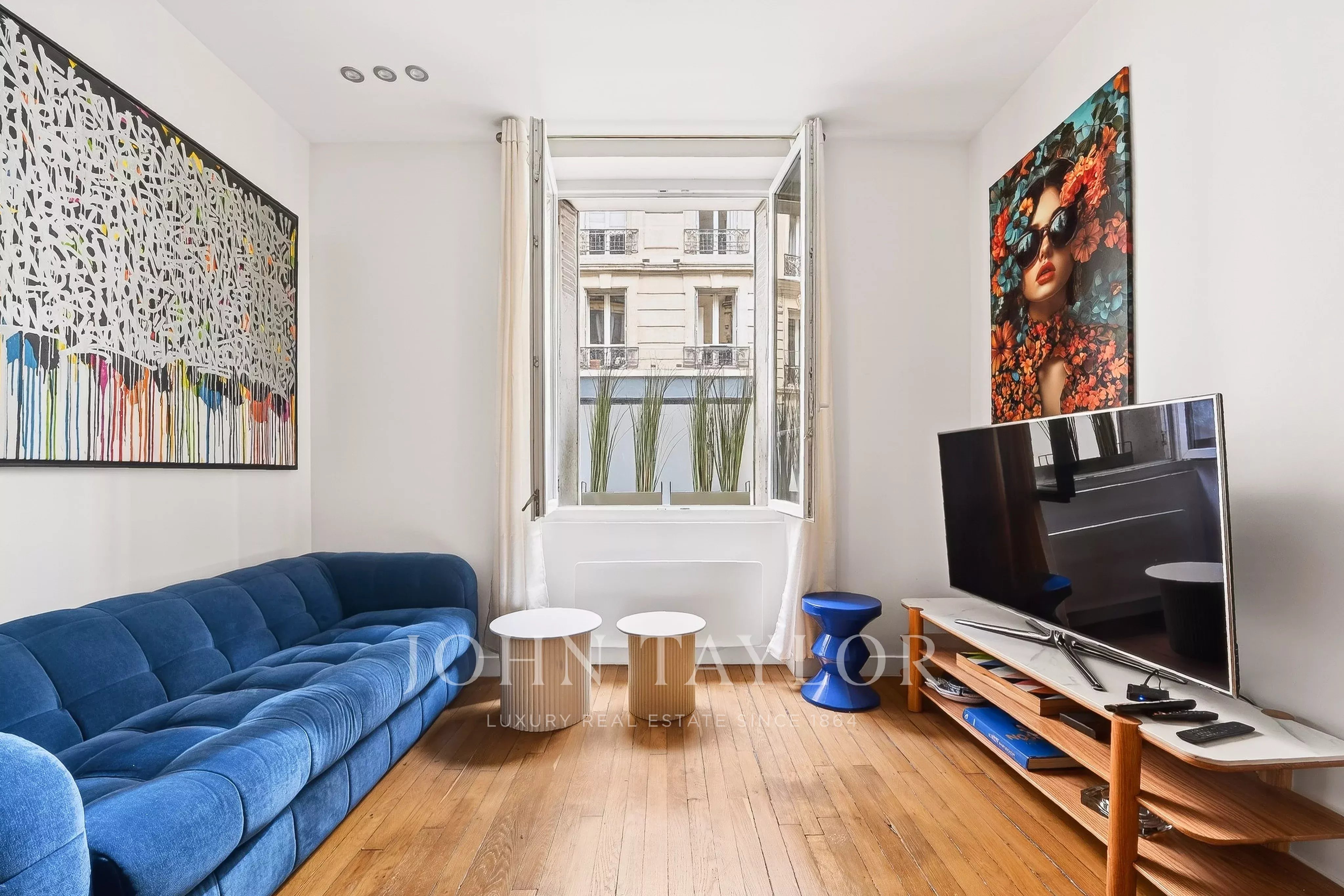 L’appartement bénéficie d’un plan traversant et d’une hauteur sous plafond de 3 mètres, apportant volume et luminosité.