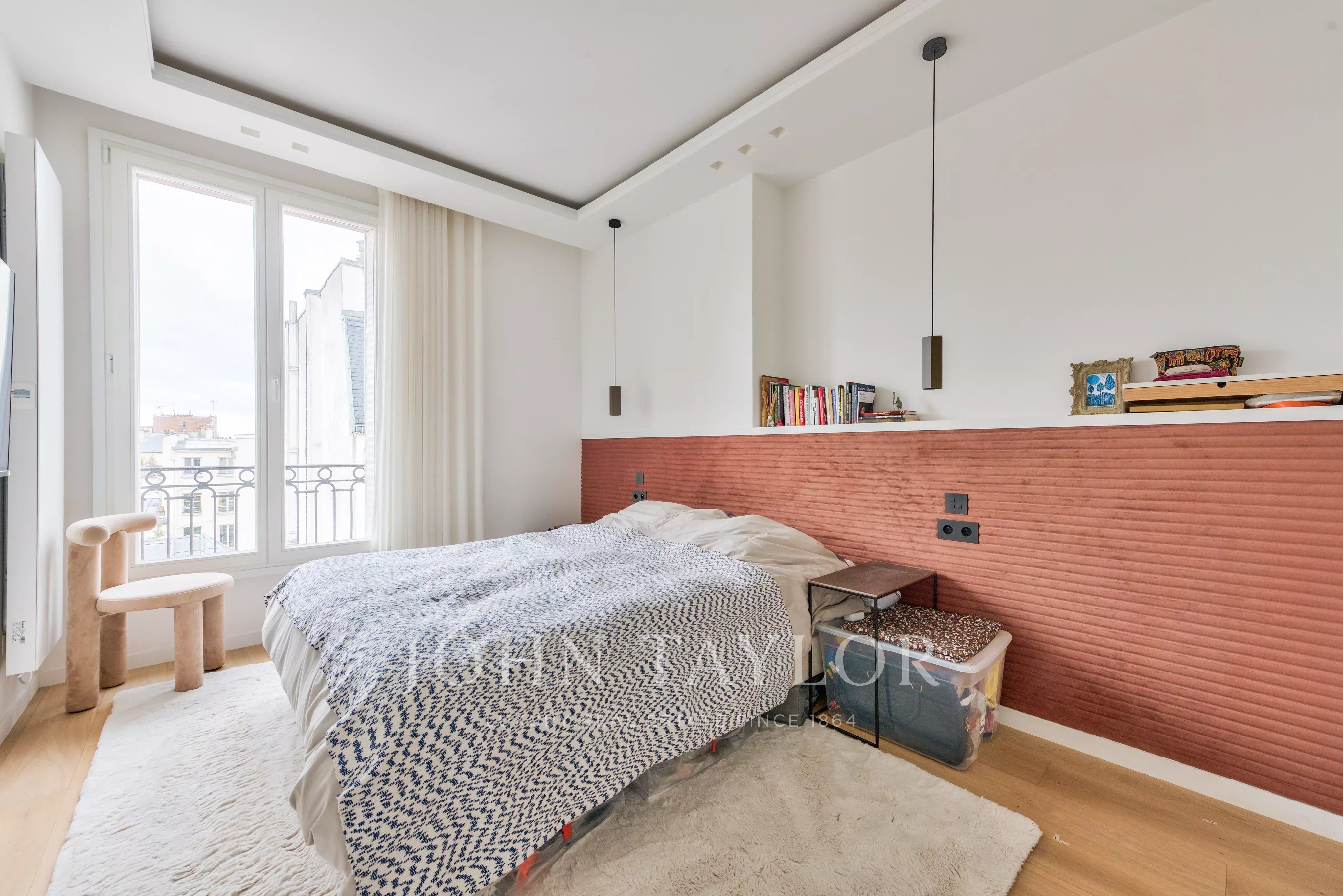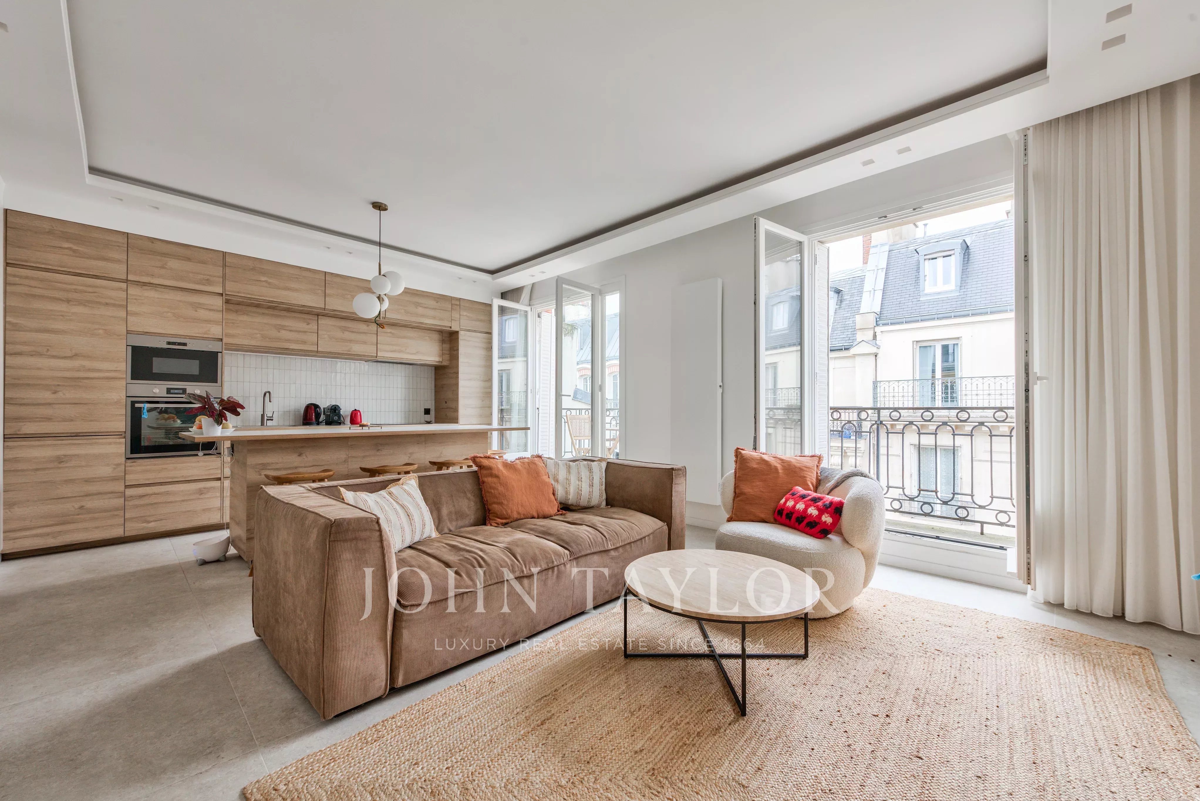 Situé au 5e étage d’un immeuble en pierre de taille avec gardienne, cet appartement de 66 m² est entièrement rénové.