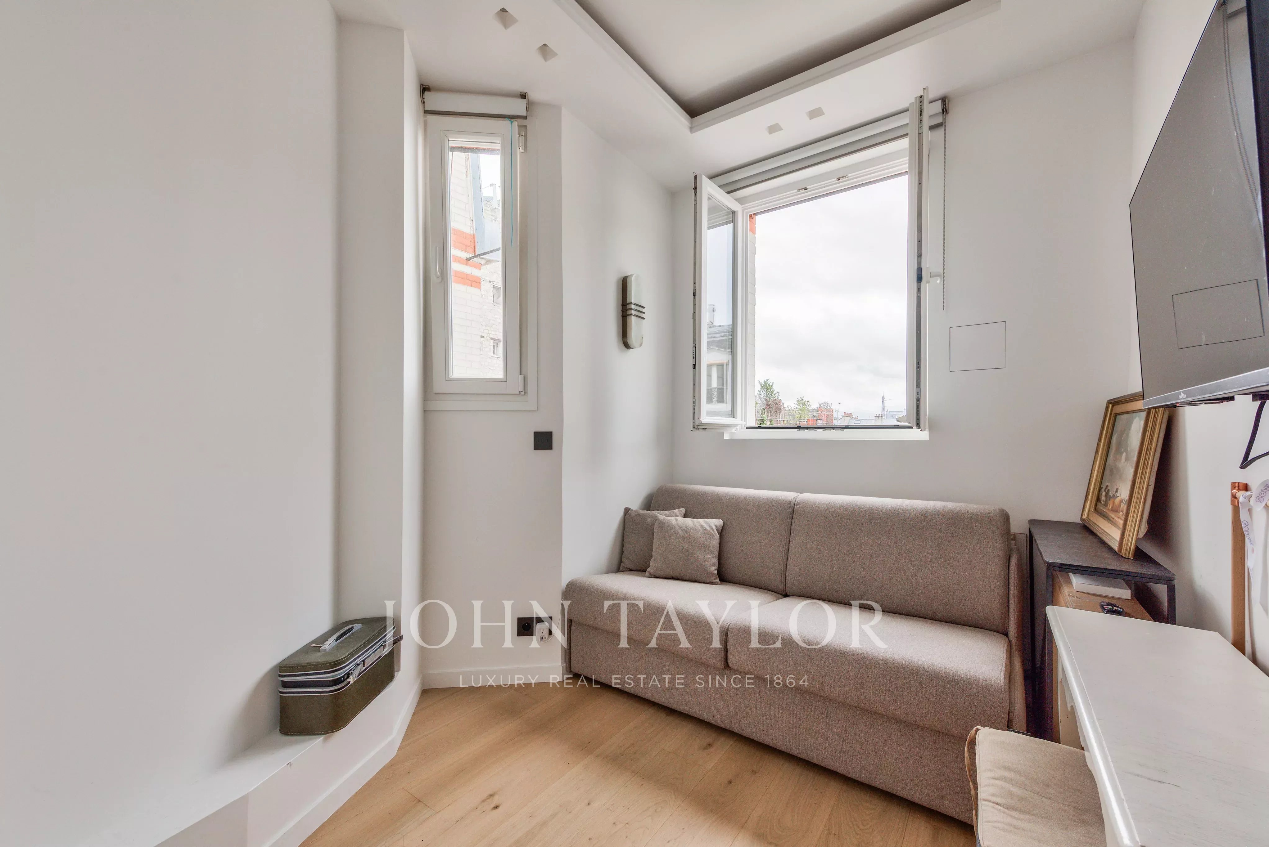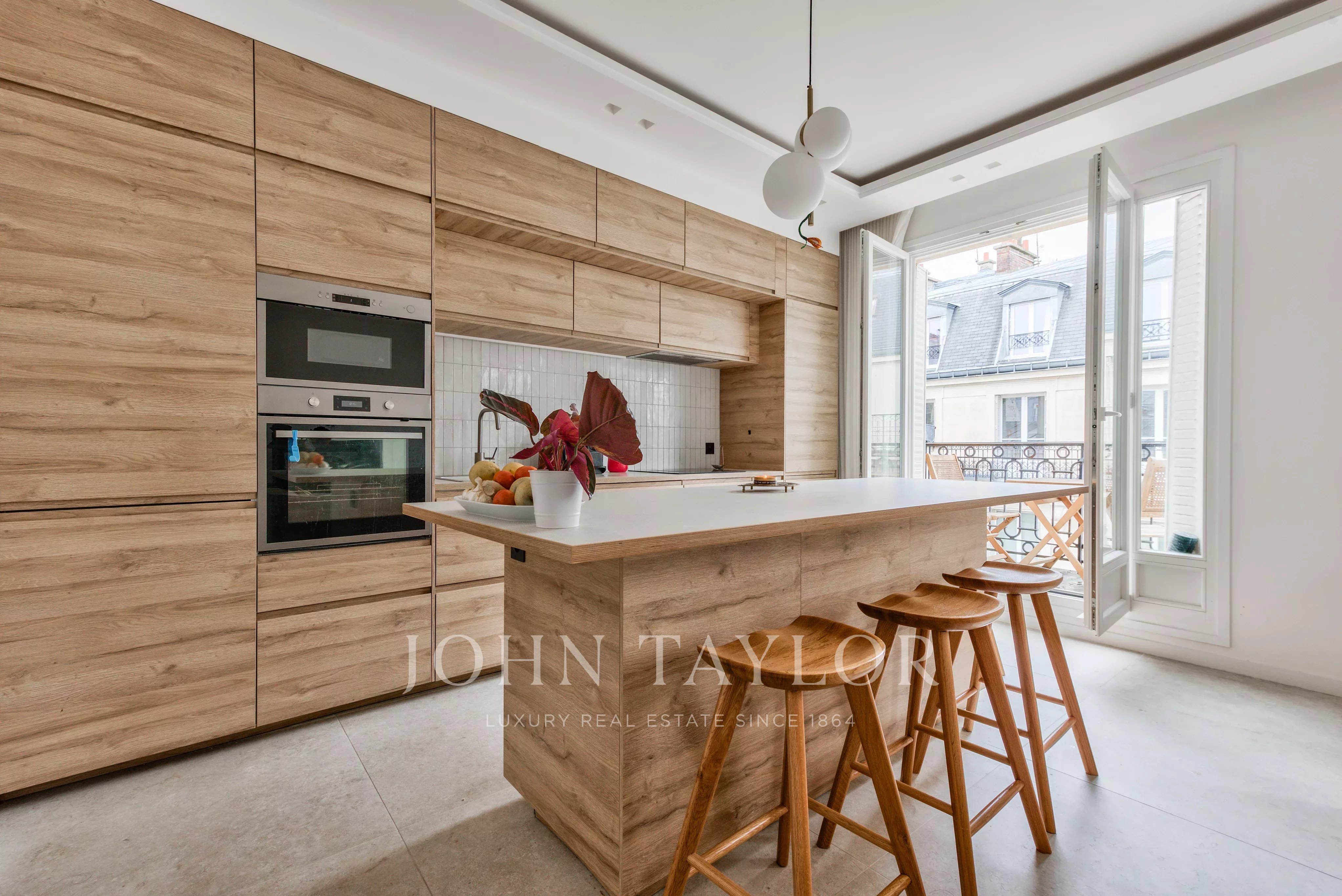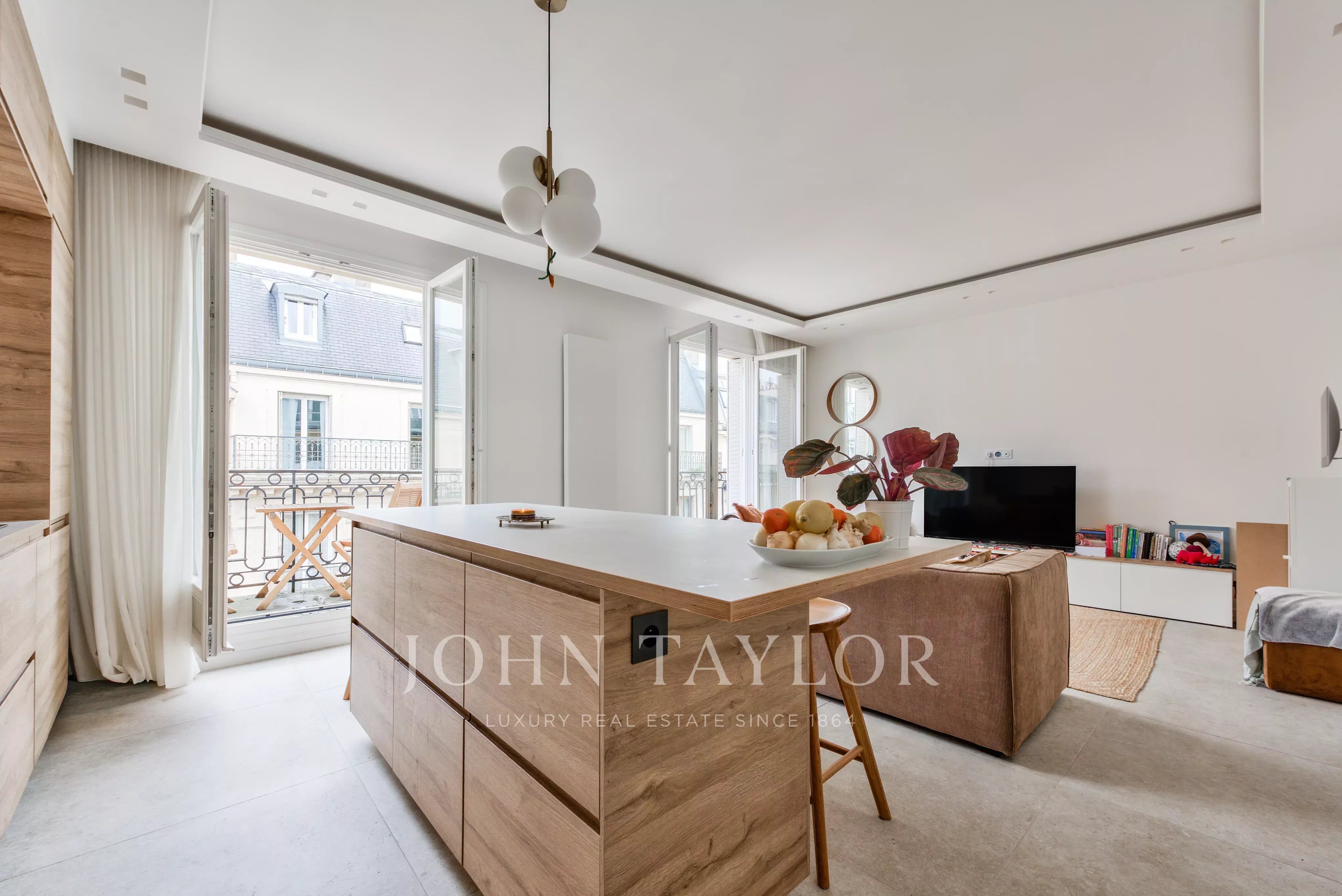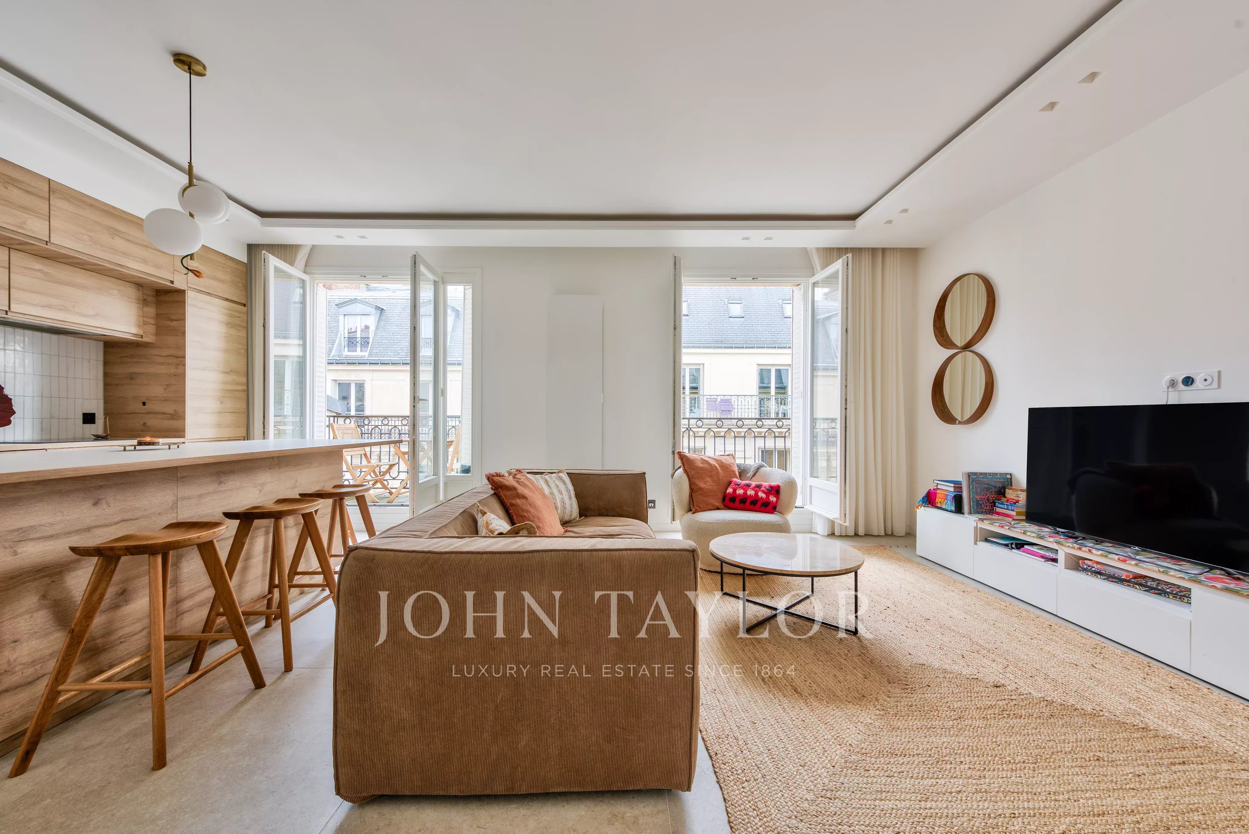 L’appartement bénéficie d’un plan traversant et d’une hauteur sous plafond de 3 mètres, apportant volume et luminosité.