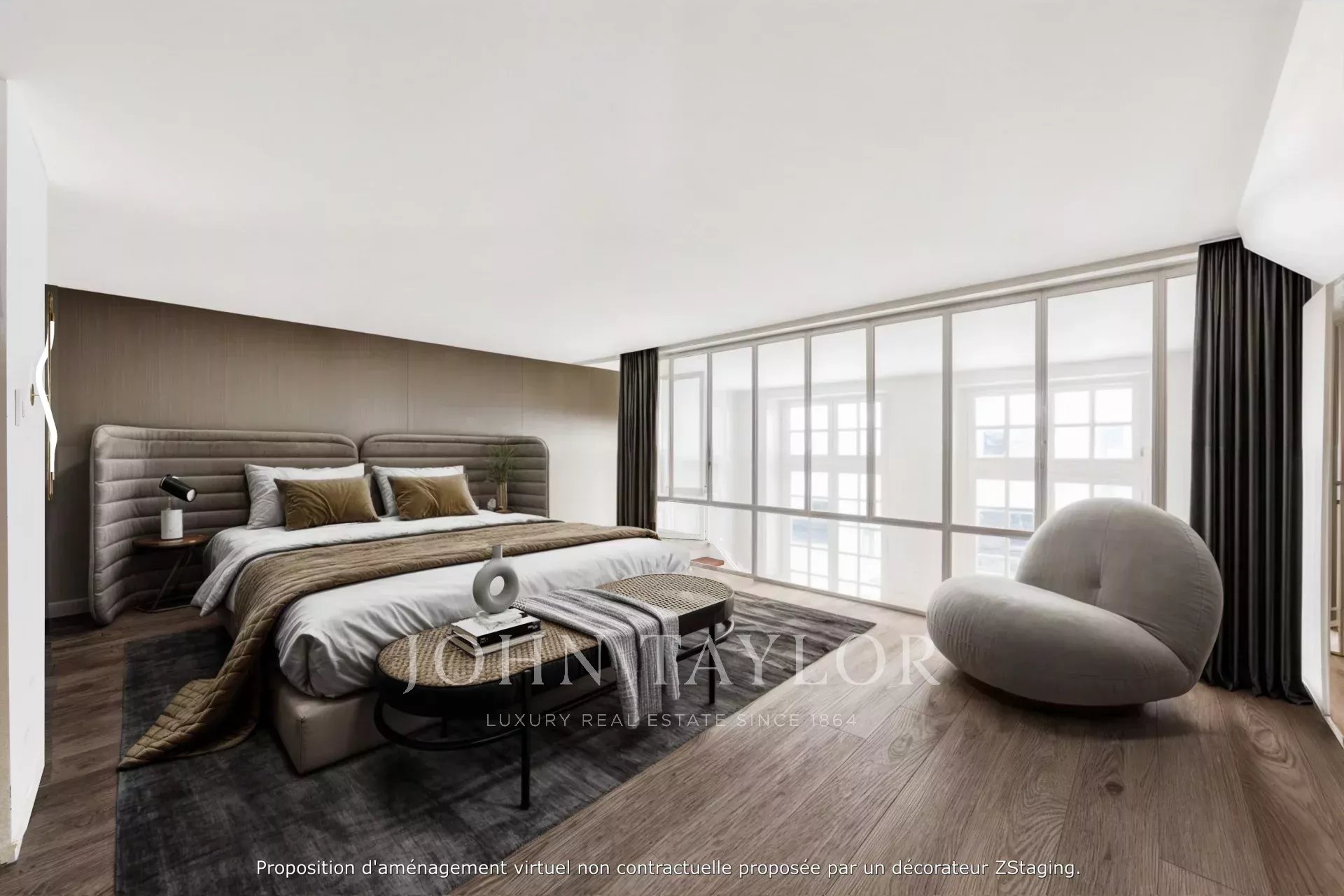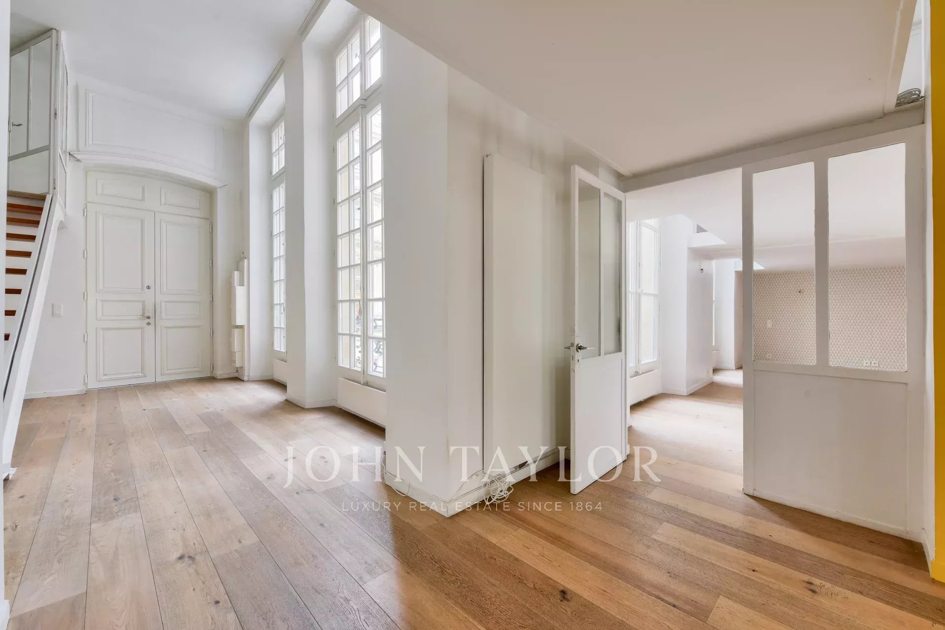 Cet appartement unique, situé dans un hôtel particulier chargé d’histoire ayant accueilli Jean-Jacques Rousseau, offre une surface totale de 258,16 m². Ses grandes fenêtres, sa cheminée à foyer ouvert et ses mezzanines lui confèrent un cachet, alliant le charme de l’ancien et l’esprit contemporain.