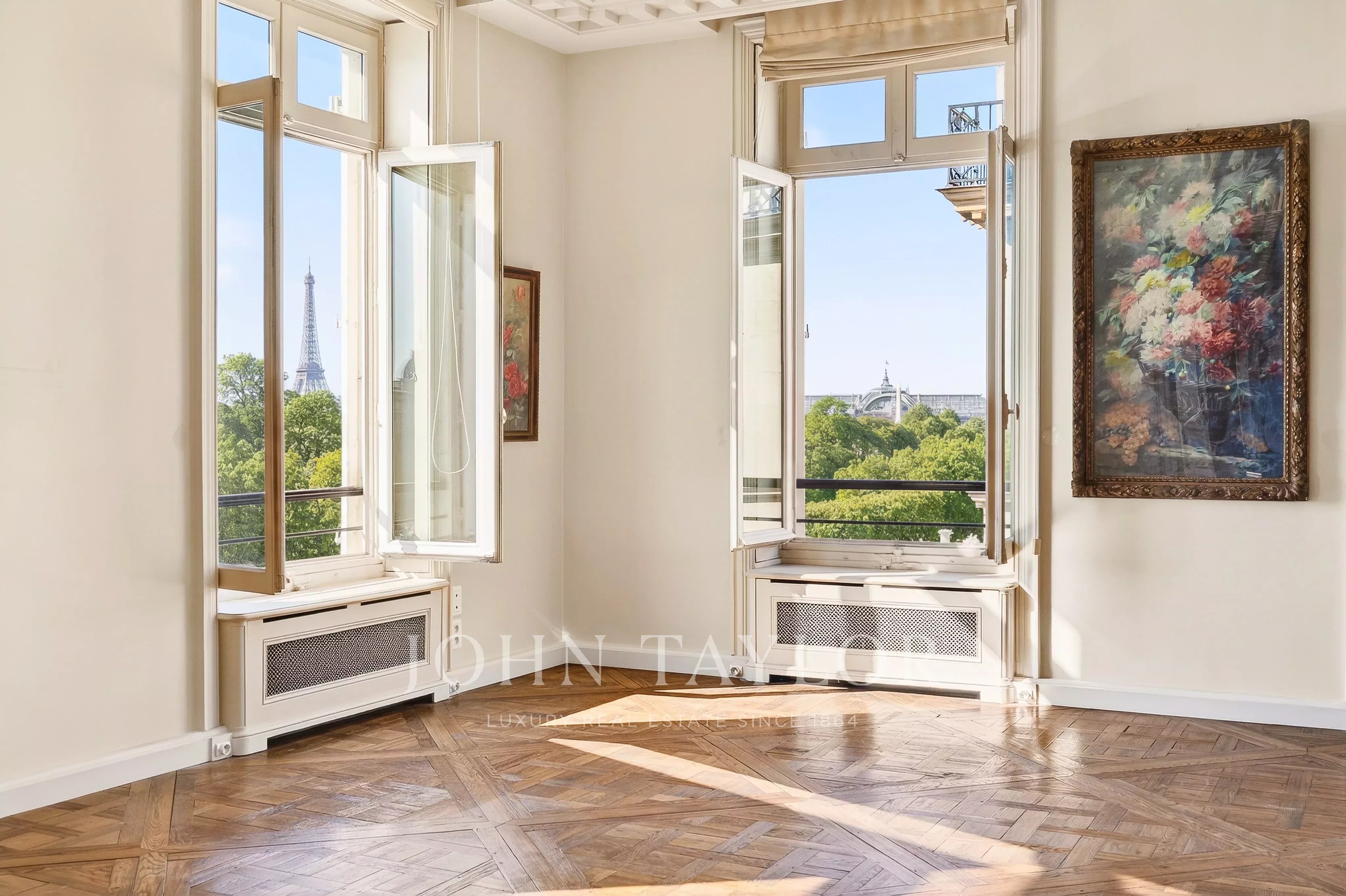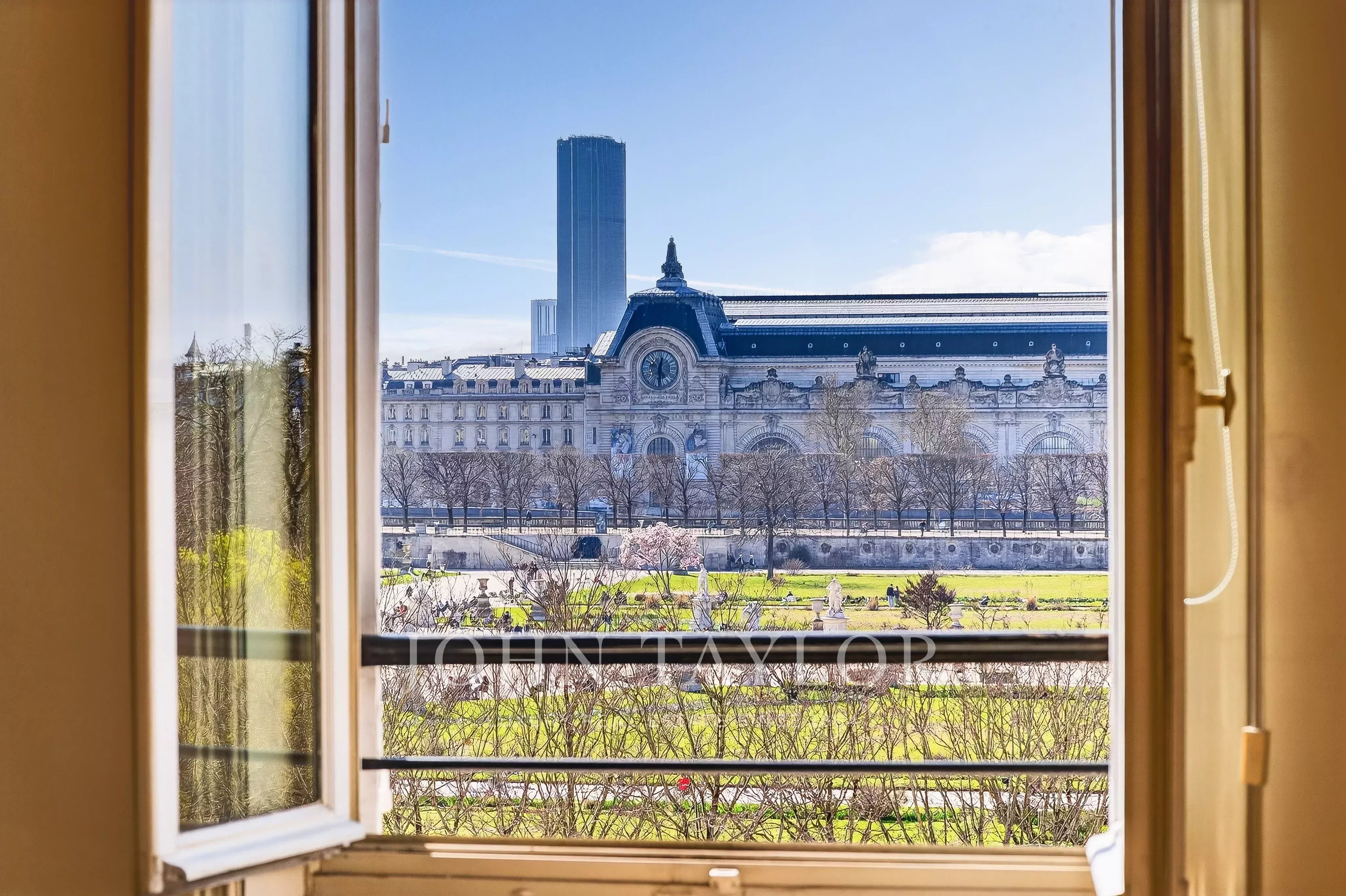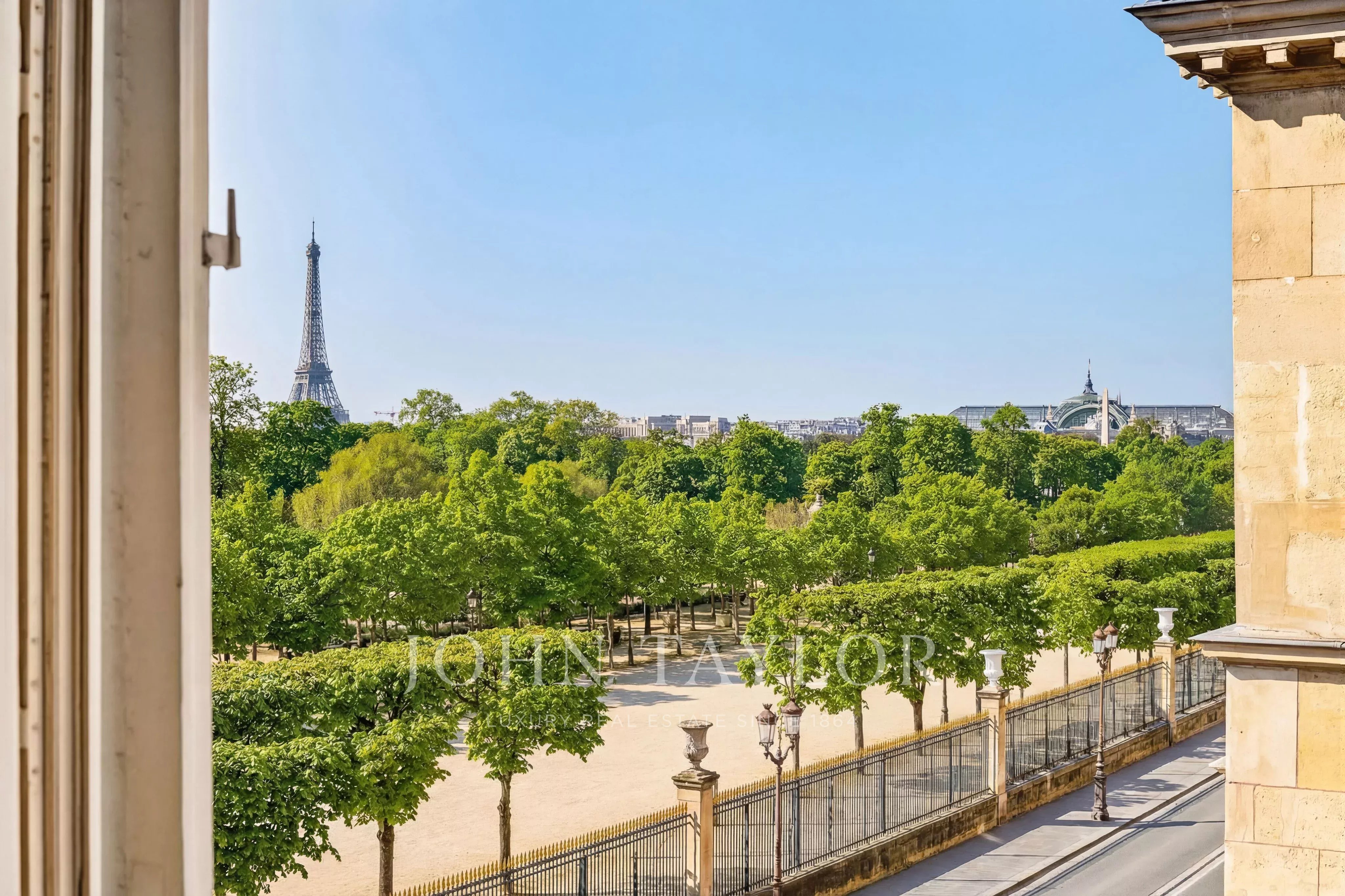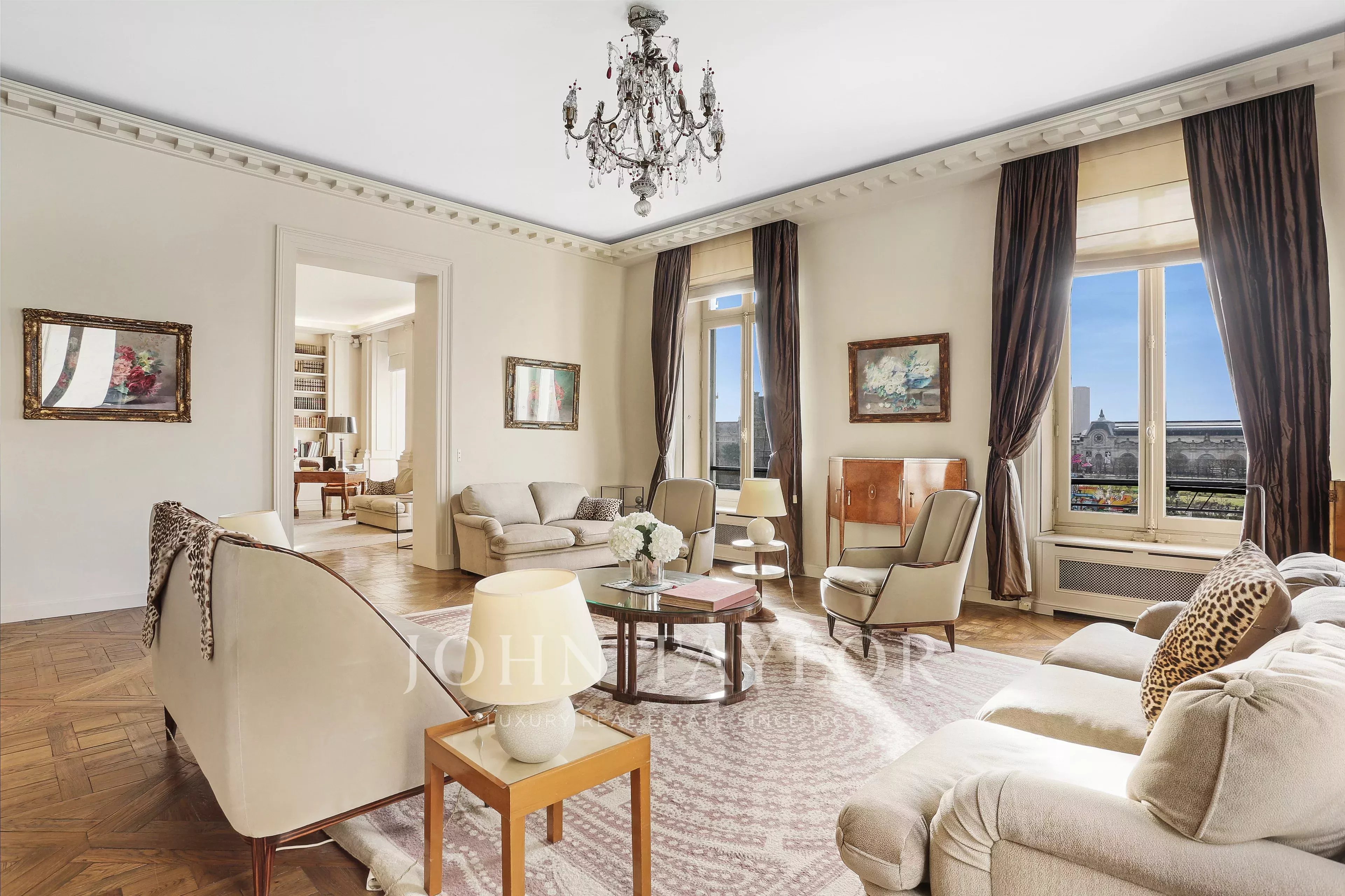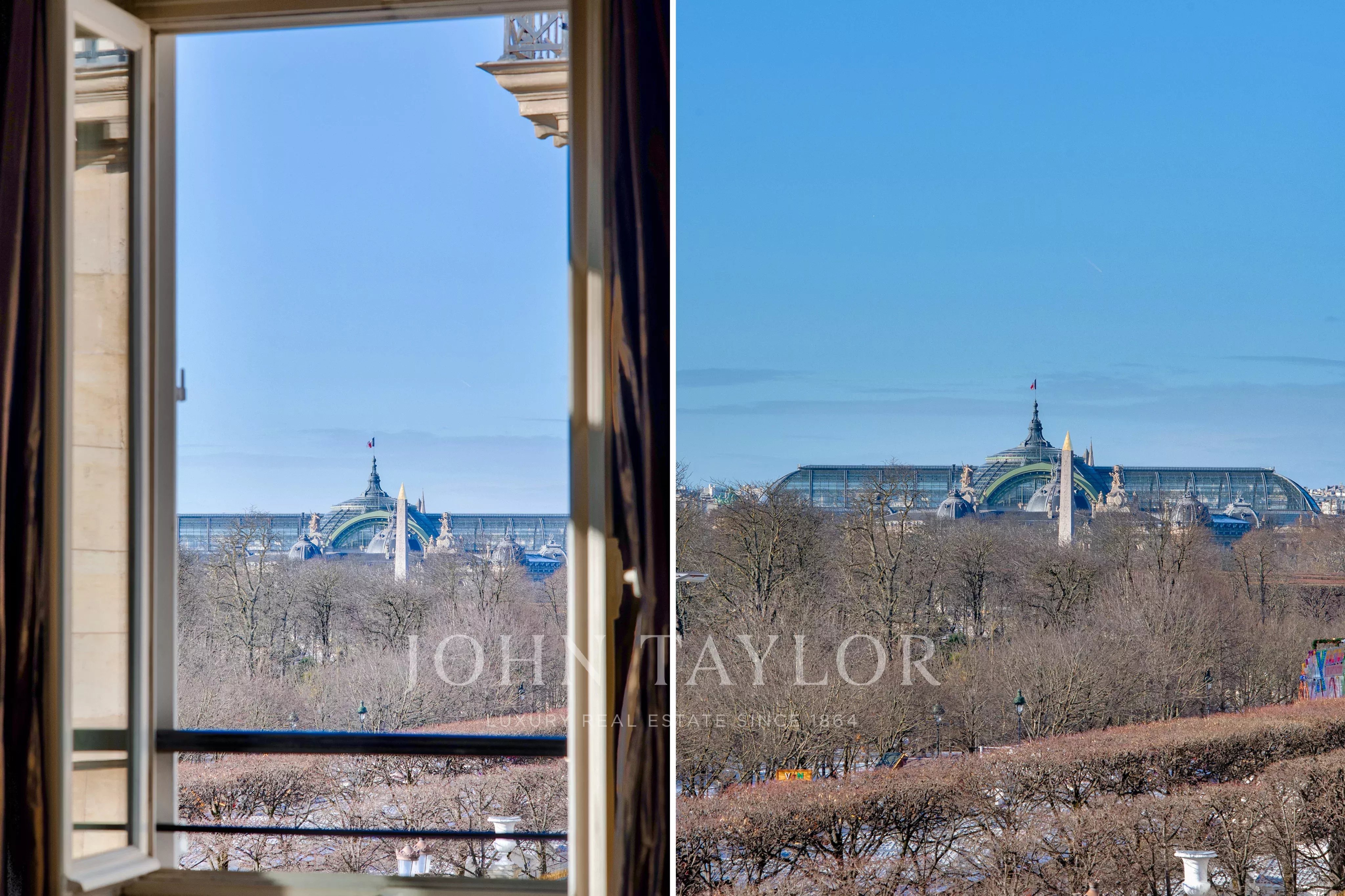 - Enfilade exceptionnelle de 3 pièces (deux grands salons et salle à manger) donnant sur le jardin des Tuileries. Ces pièces offrent plus de 120 m² de surface avec 7 fenêtres plein sud sans vis-à-vis qui ouvrent sur des vues uniques : Tour Eiffel, Grand Palais, Musée du Louvre, Dômes des Invalides, Musée d'Orsay, Trocadéro, Obélisque de la Concorde