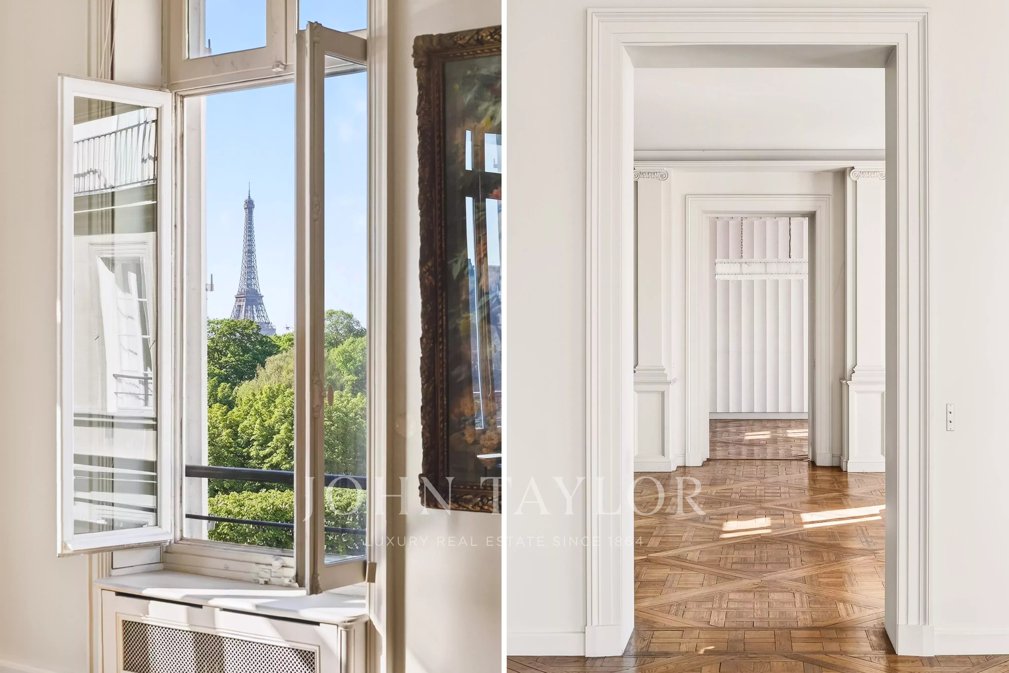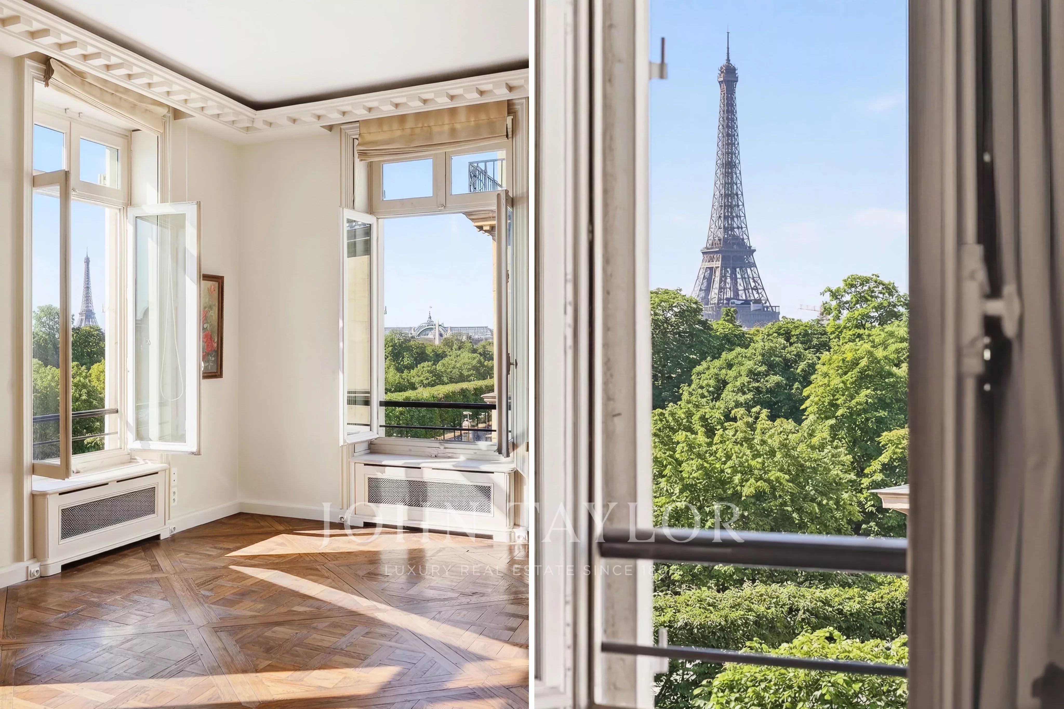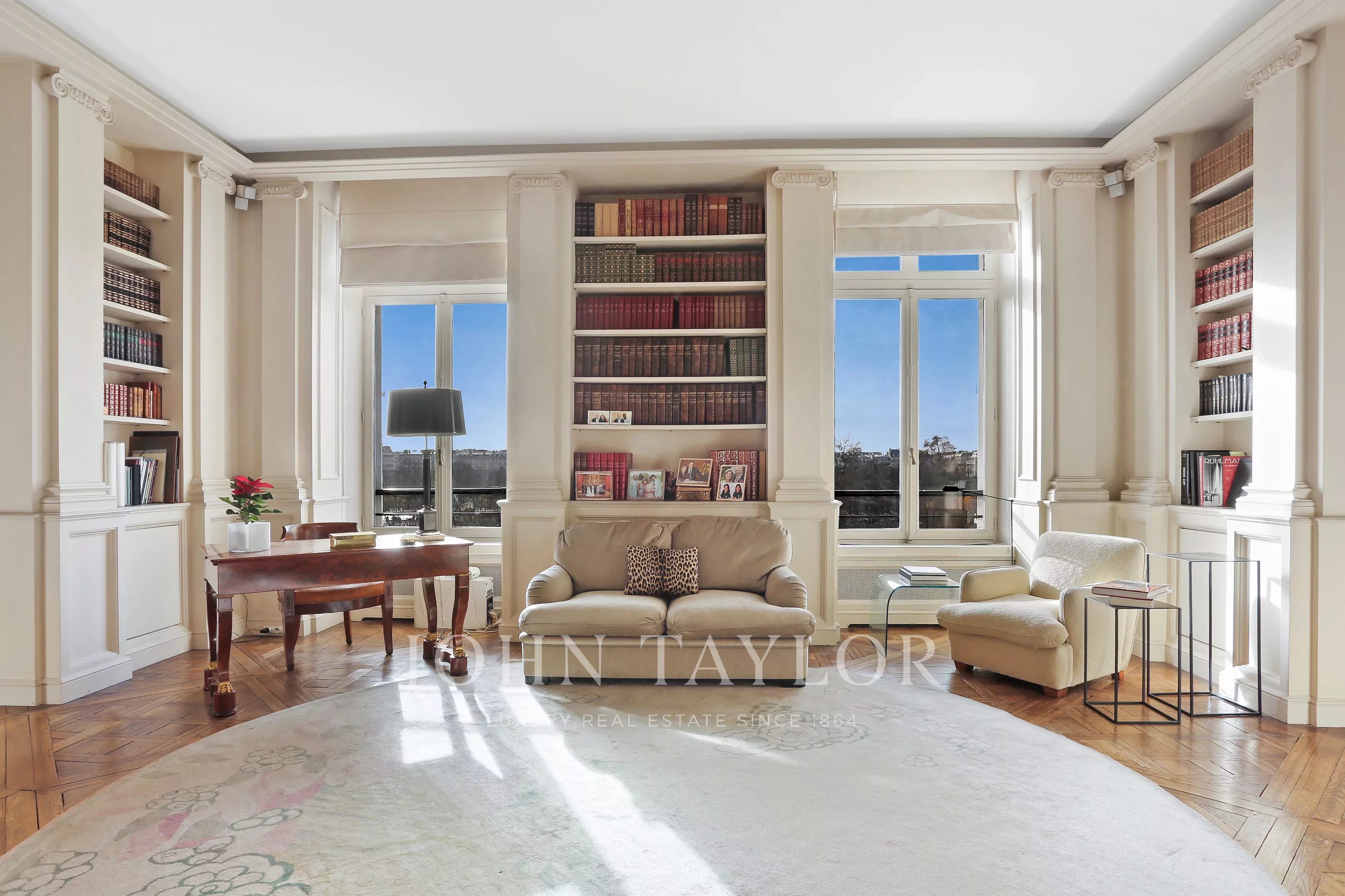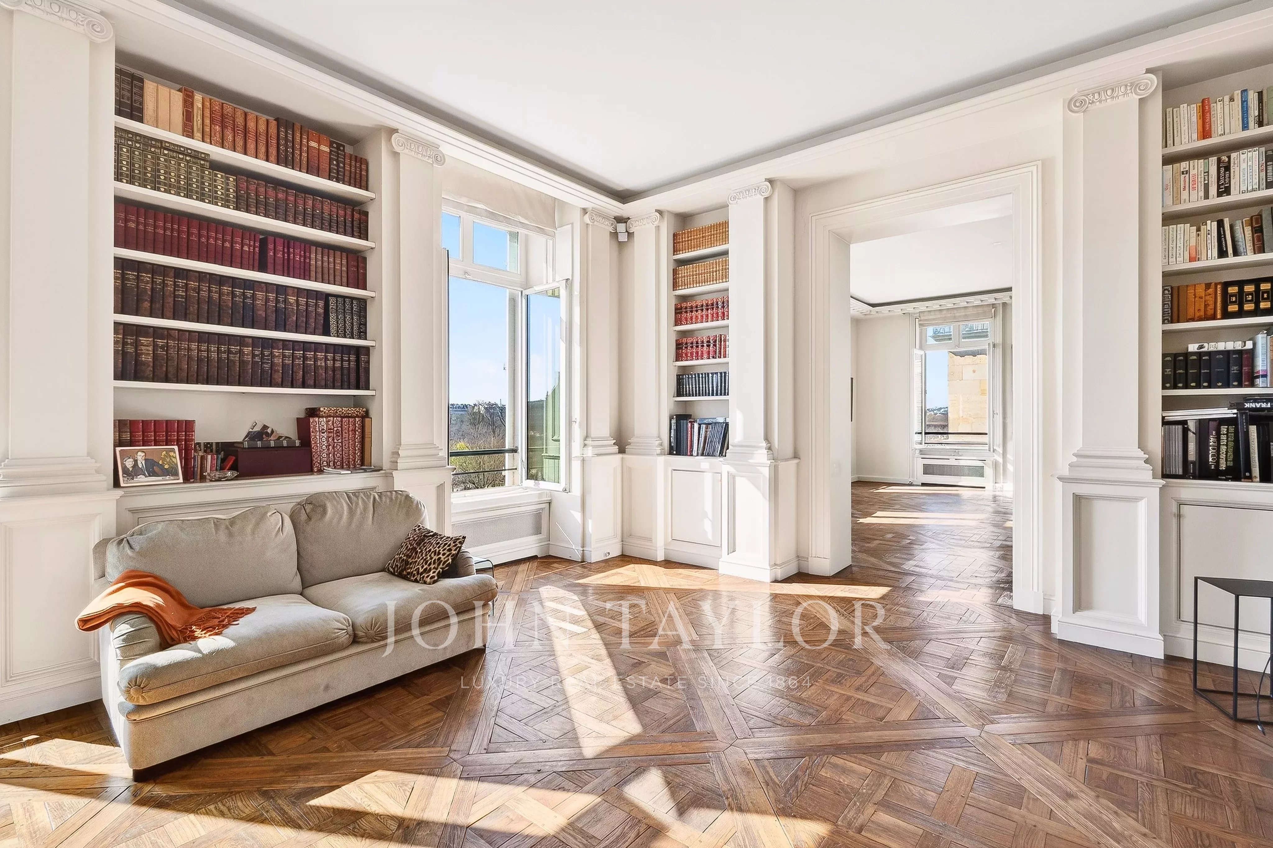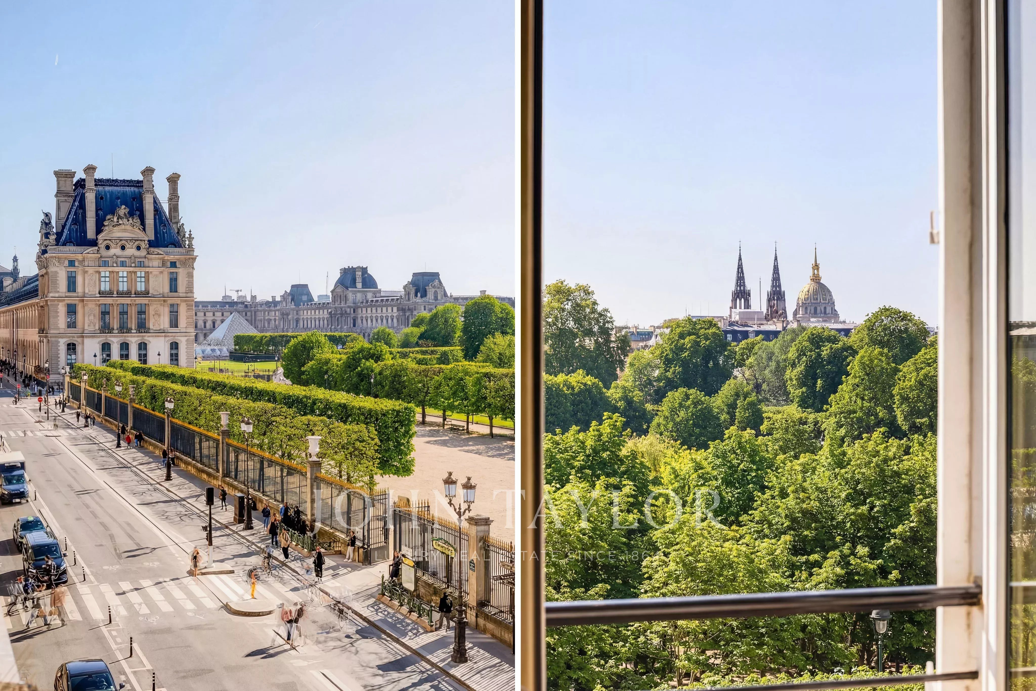 - Enfilade exceptionnelle de 3 pièces (deux grands salons et salle à manger) donnant sur le jardin des Tuileries. Ces pièces offrent plus de 120 m² de surface avec 7 fenêtres plein sud sans vis-à-vis qui ouvrent sur des vues uniques : Tour Eiffel, Grand Palais, Musée du Louvre, Dômes des Invalides, Musée d'Orsay, Trocadéro, Obélisque de la Concorde