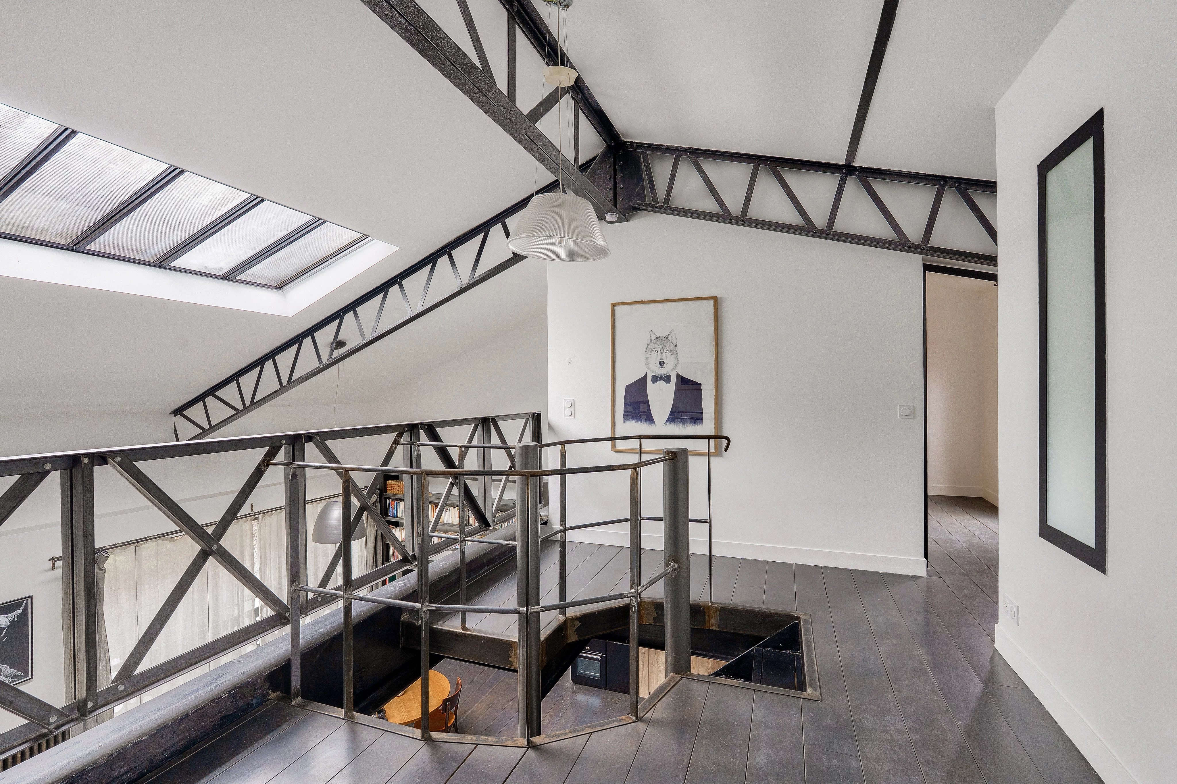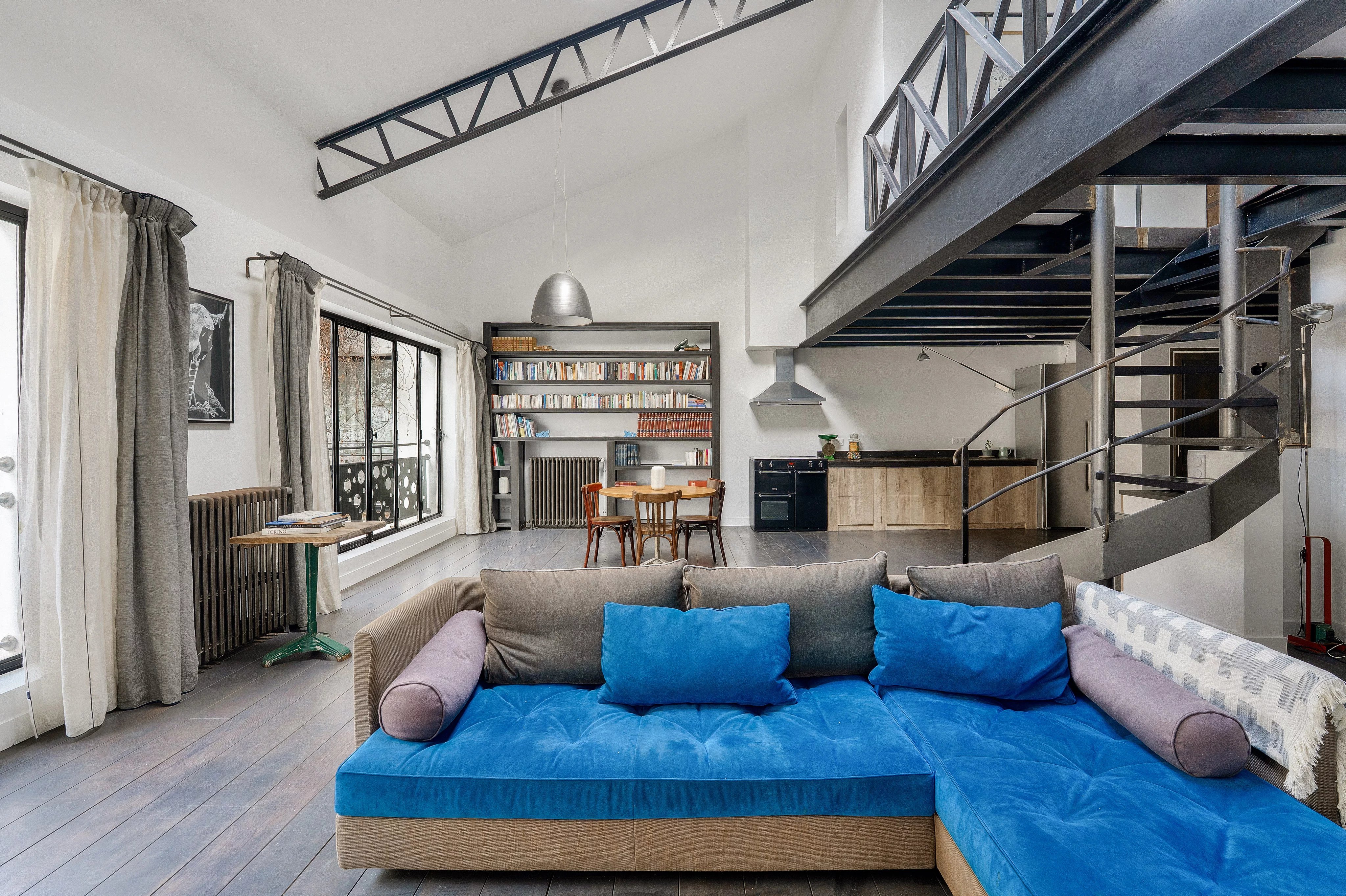 Paris 20e. Au sein d’une petite copropriété intimiste, ancien cinéma réhabilité en loft d’habitation, appartement en duplex situé au 2ᵉ et dernier étage, d’une superficie de 133,23 m² loi Carrez, comprenant :