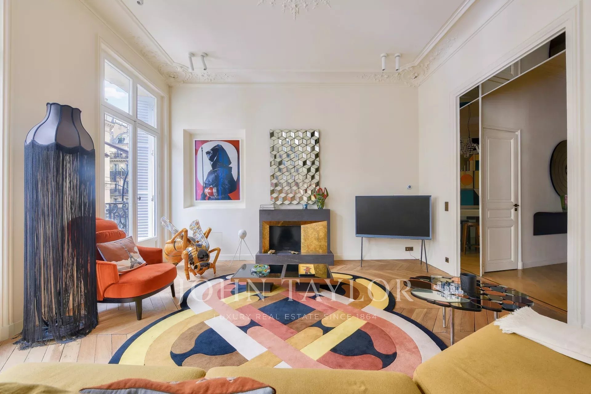 Au cœur du 2e arrondissement, au 2e étage par ascenseur, un appartement de 110 m² avec balcon filant et 3,60 m de hauteur sous plafond, récemment rénové par un architecte.