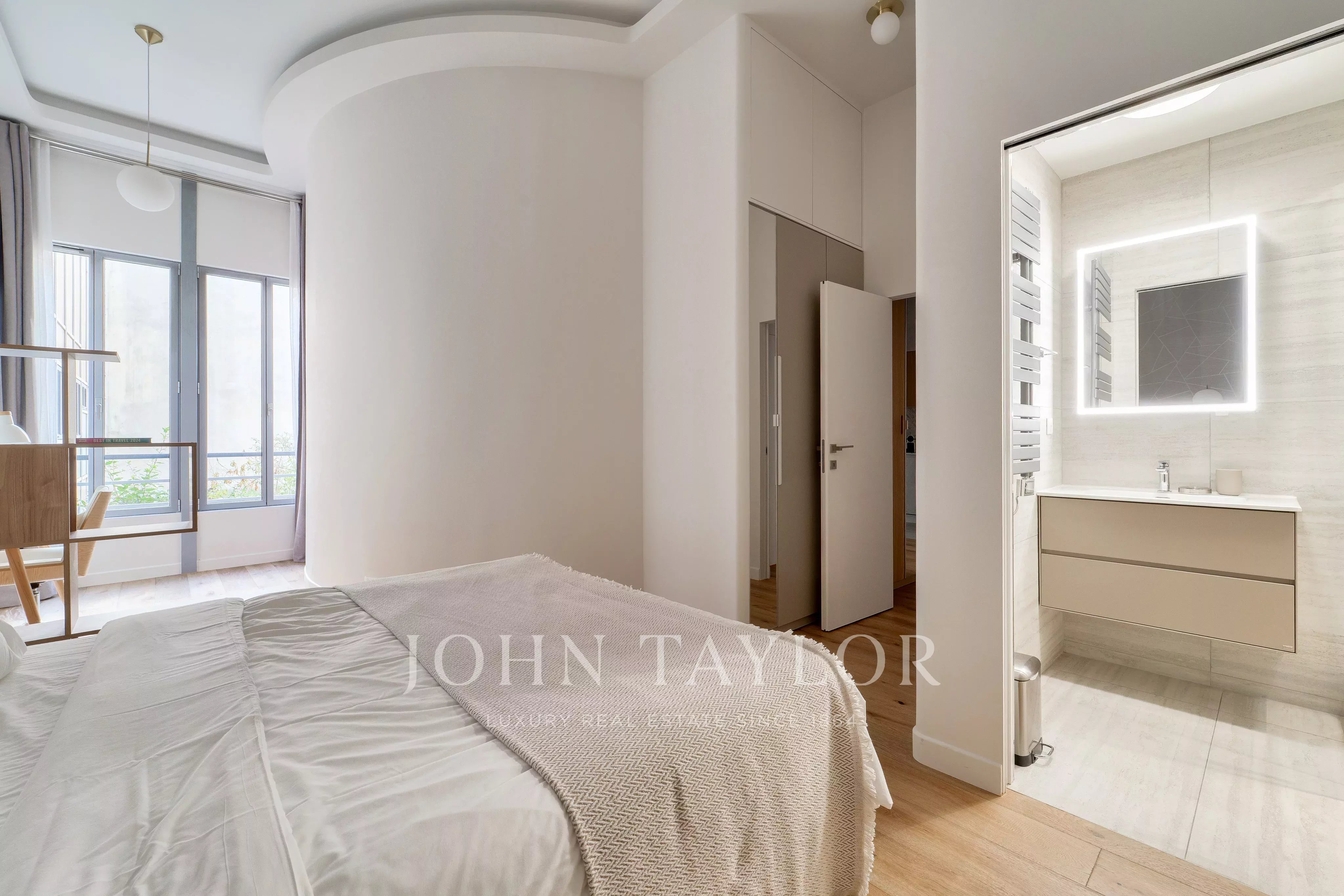Les murs incurvés et les arrondis, signatures de cette rénovation, confèrent à l’ensemble une atmosphère à la fois chaleureuse et élégante.