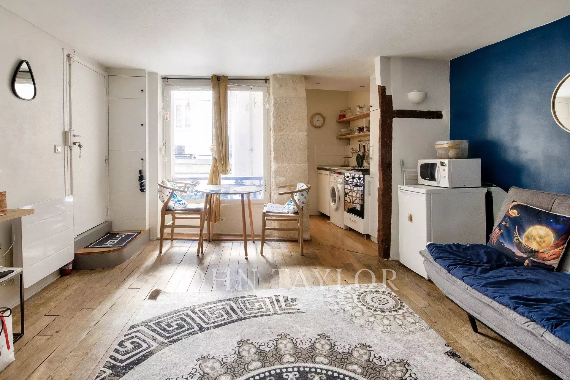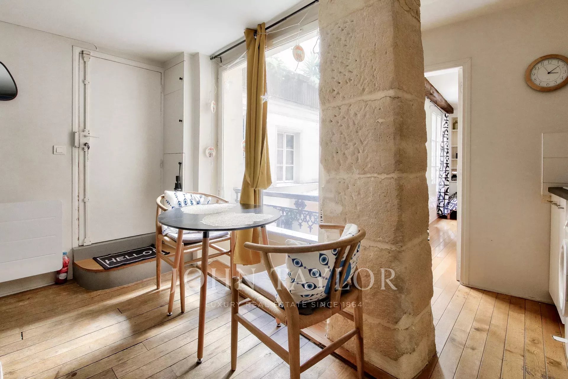 Au 1er étage (entresol) d'un bel immeuble érigé en 1820, ce joli deux pièces dans le quartier St Gervais, à la croisée des quais de Seine et du Marais, bénéficie d'un emplacement idéal.