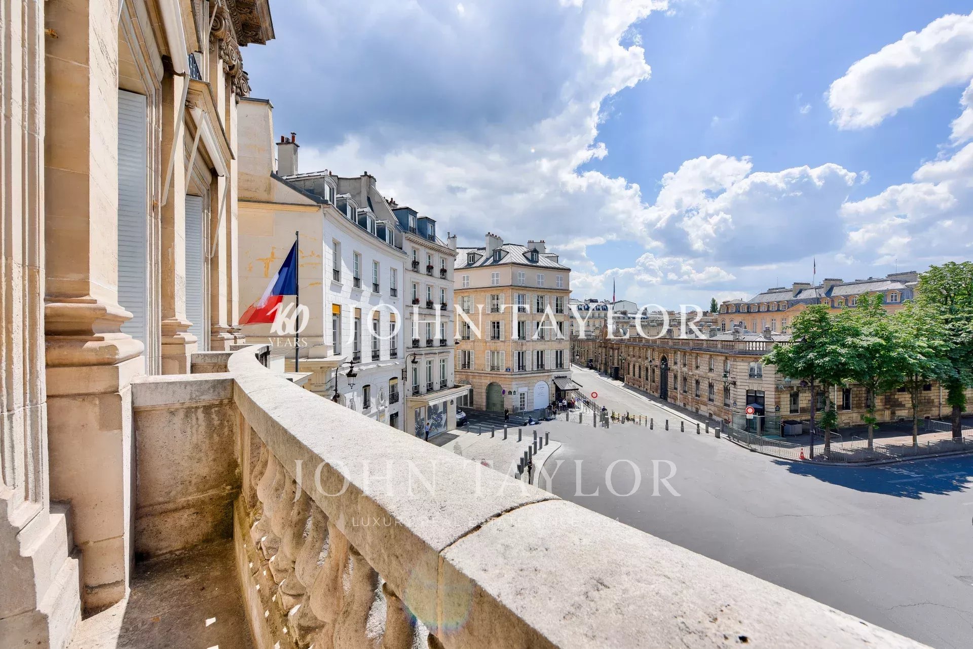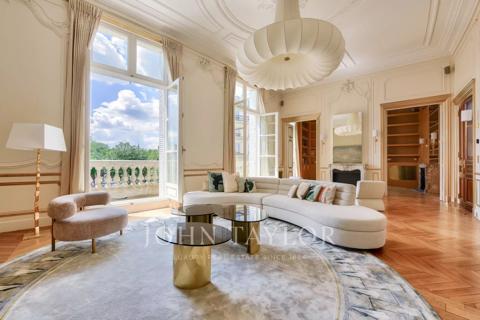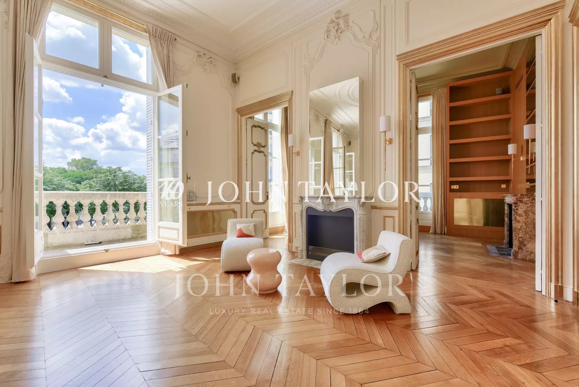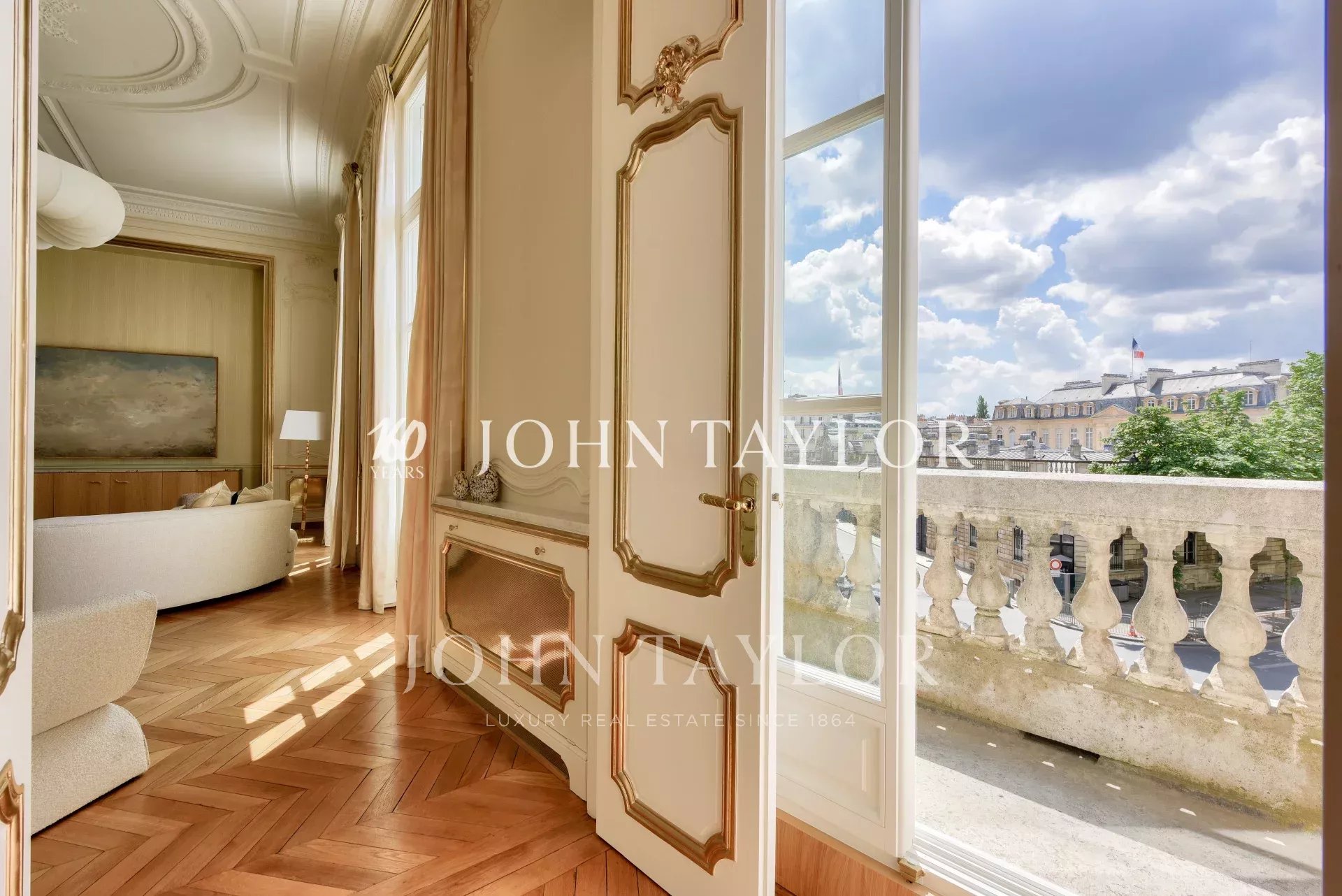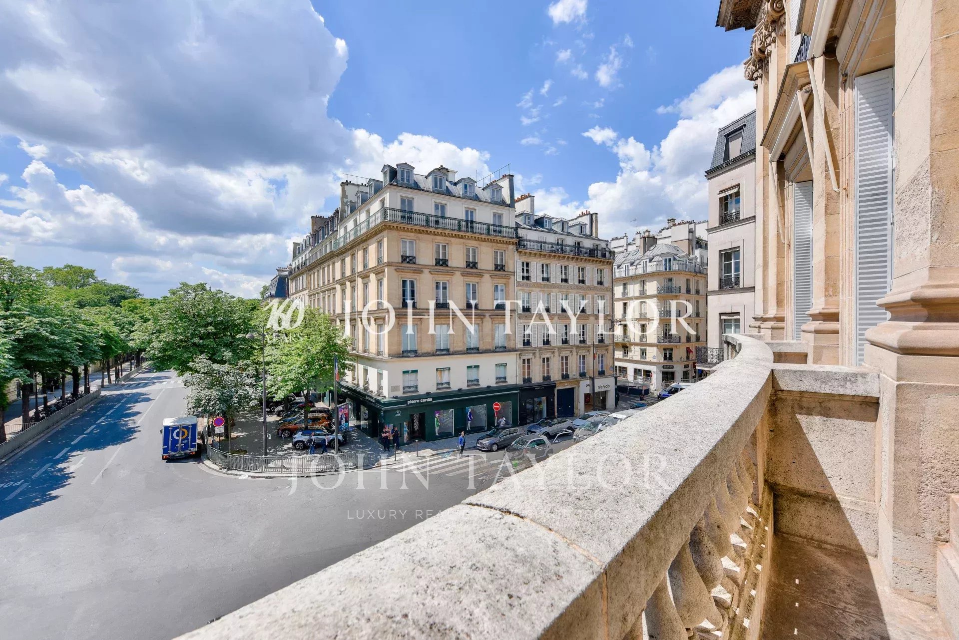 - grand salon d'apparat bordé d’un balcon filant plein Sud offrant des vues rares sur le Palais de l'Elysées et les verrières du Grand Palais