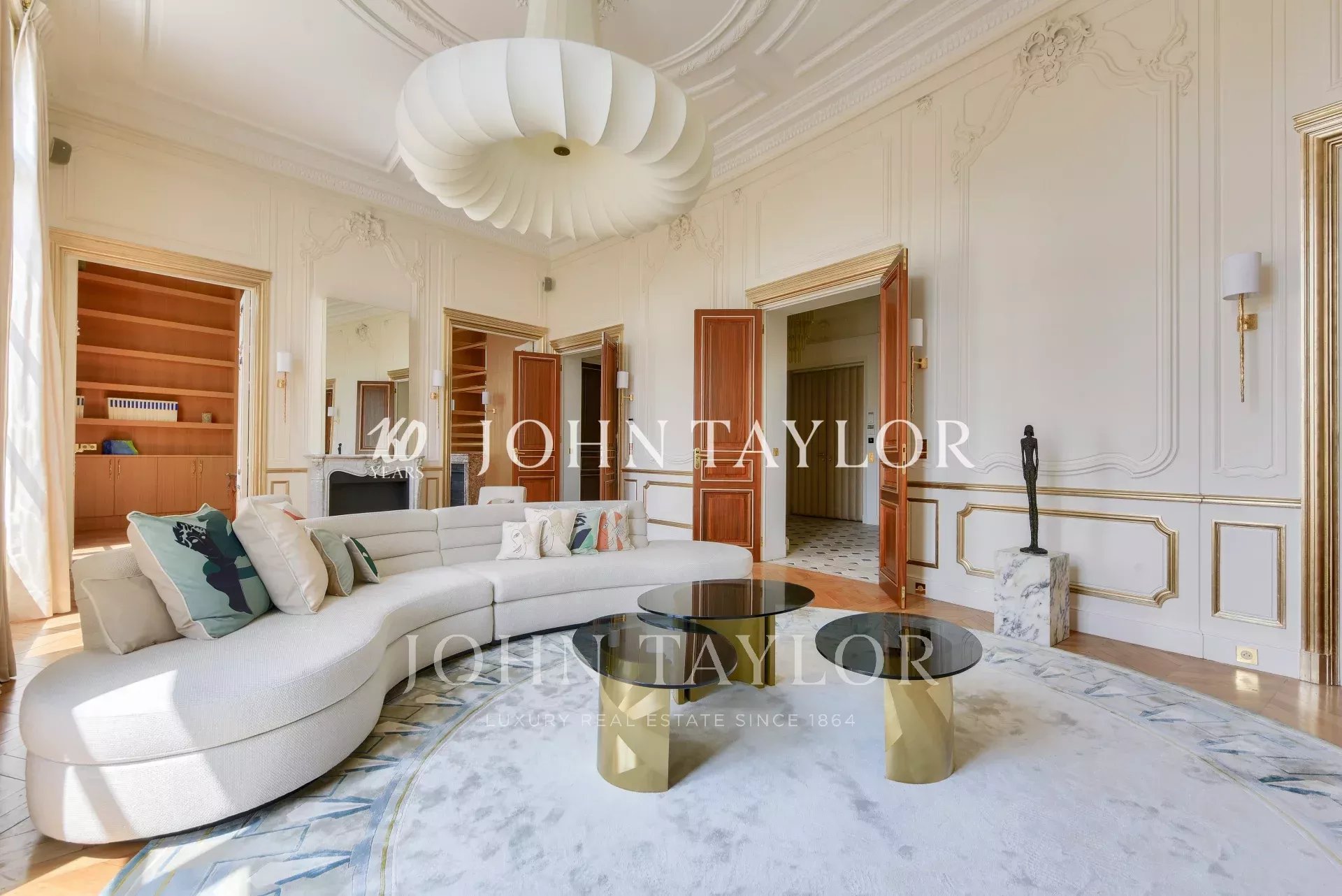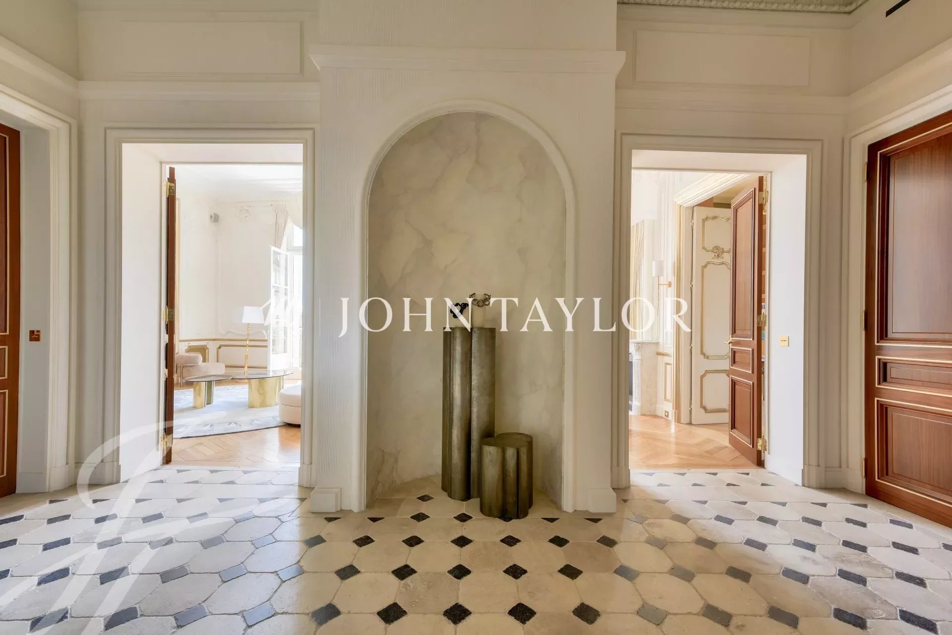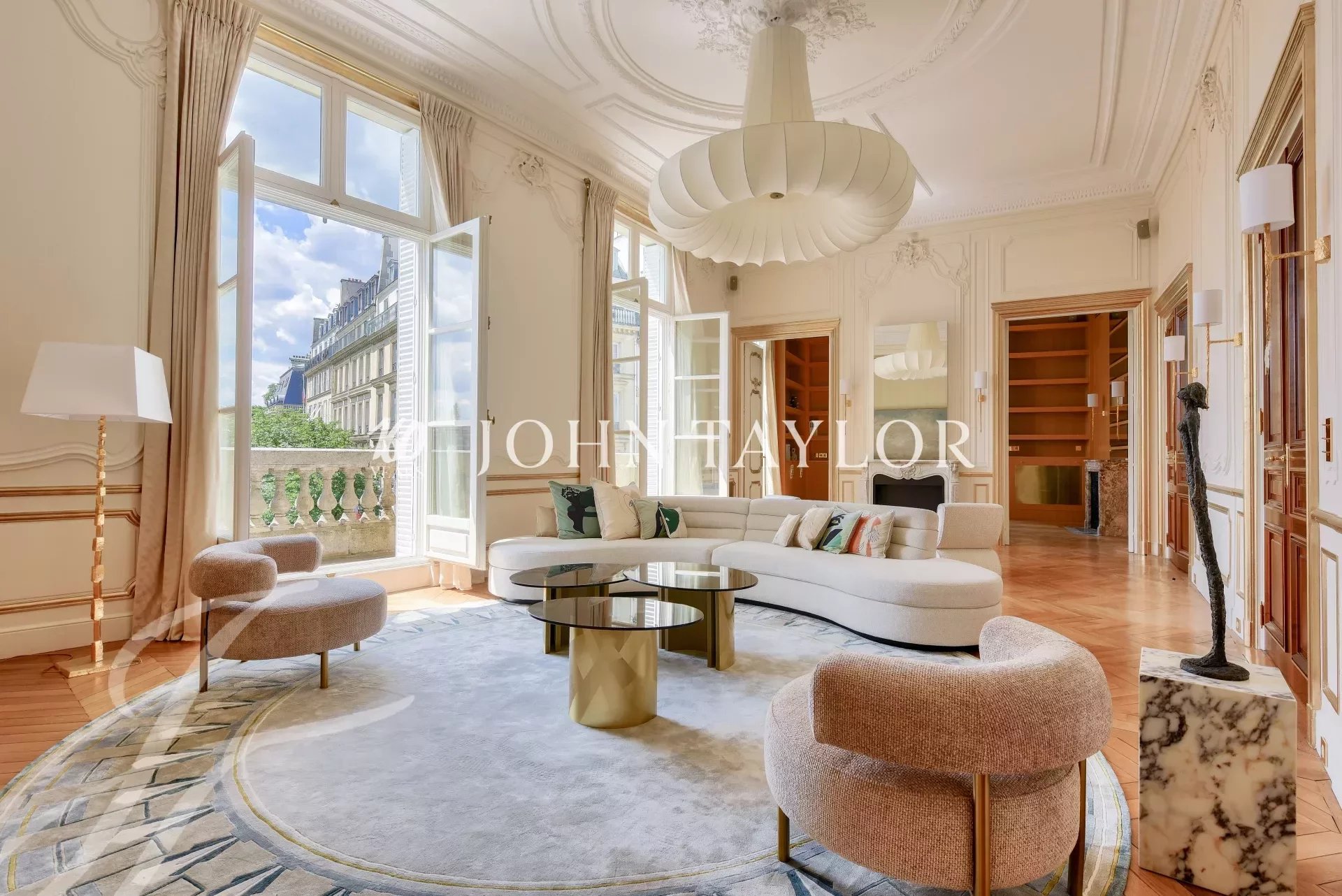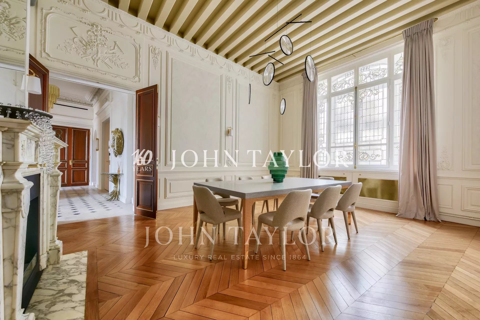 Dans un immeuble de grand standing, au deuxième étage avec ascenseur, fabuleux appartement de réception d’une superficie de 350 m2 au sol (319 m2 loi Carrez) ayant bénéficié d’une rénovation exceptionnelle par l'un des cabinets d'architecture les plus renommés.