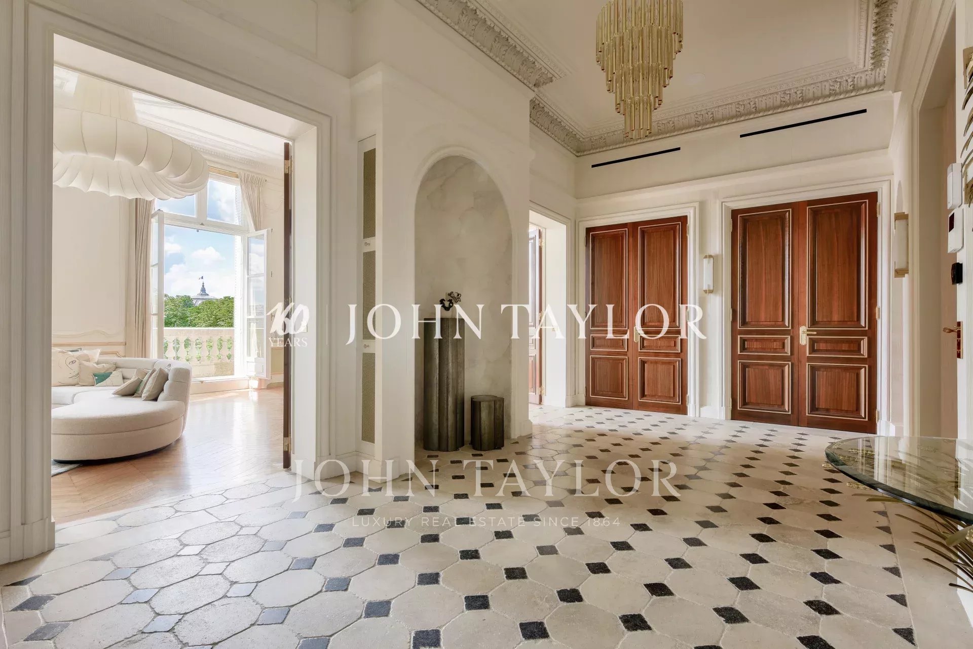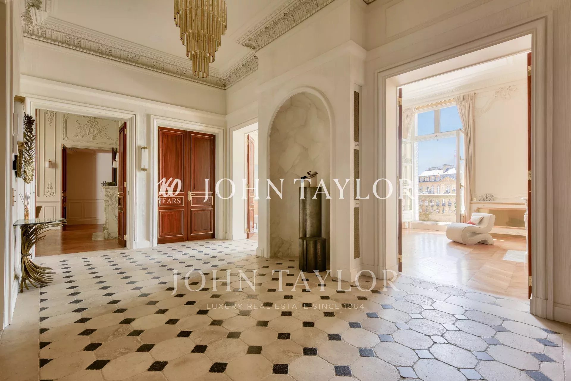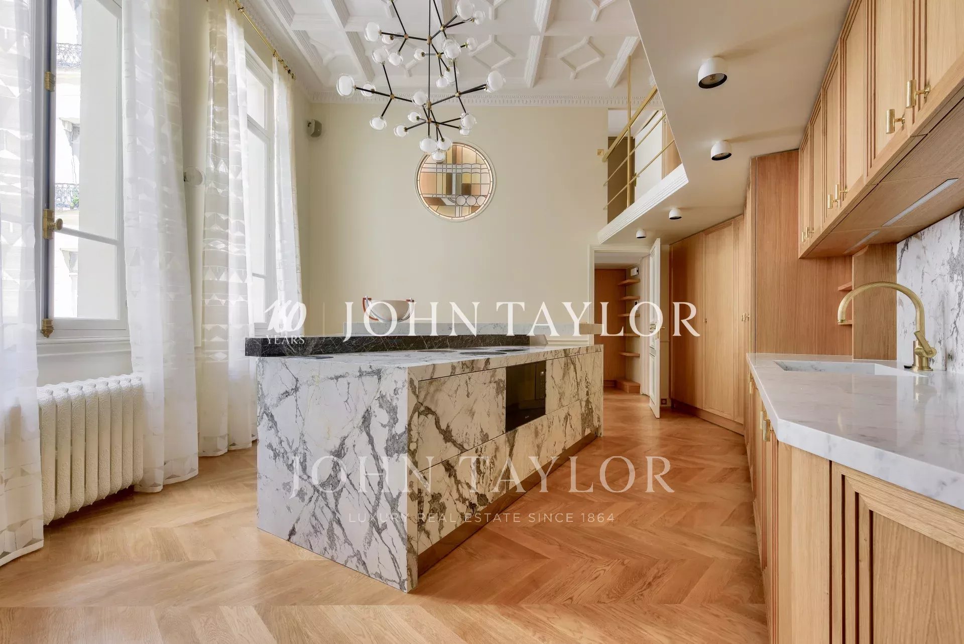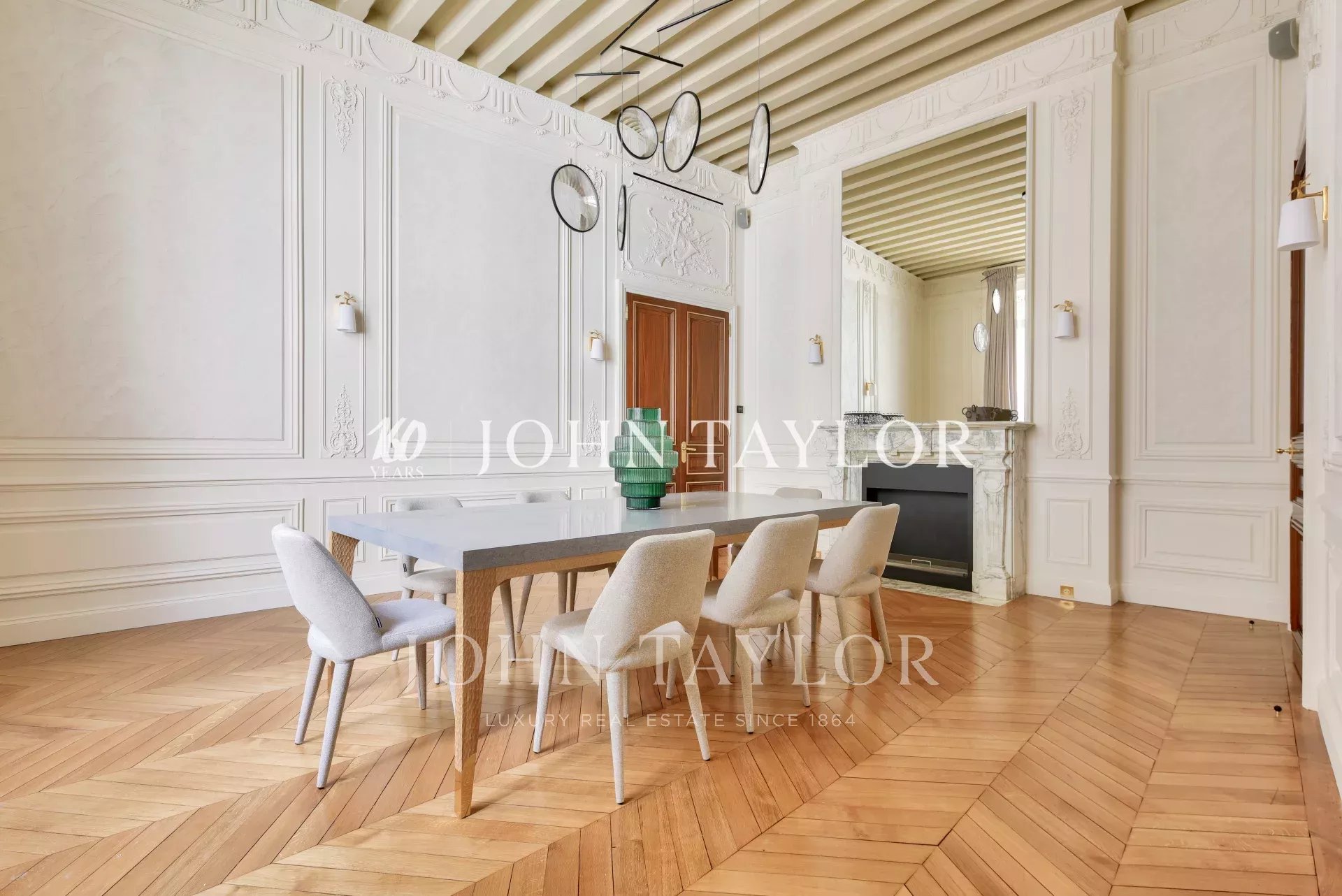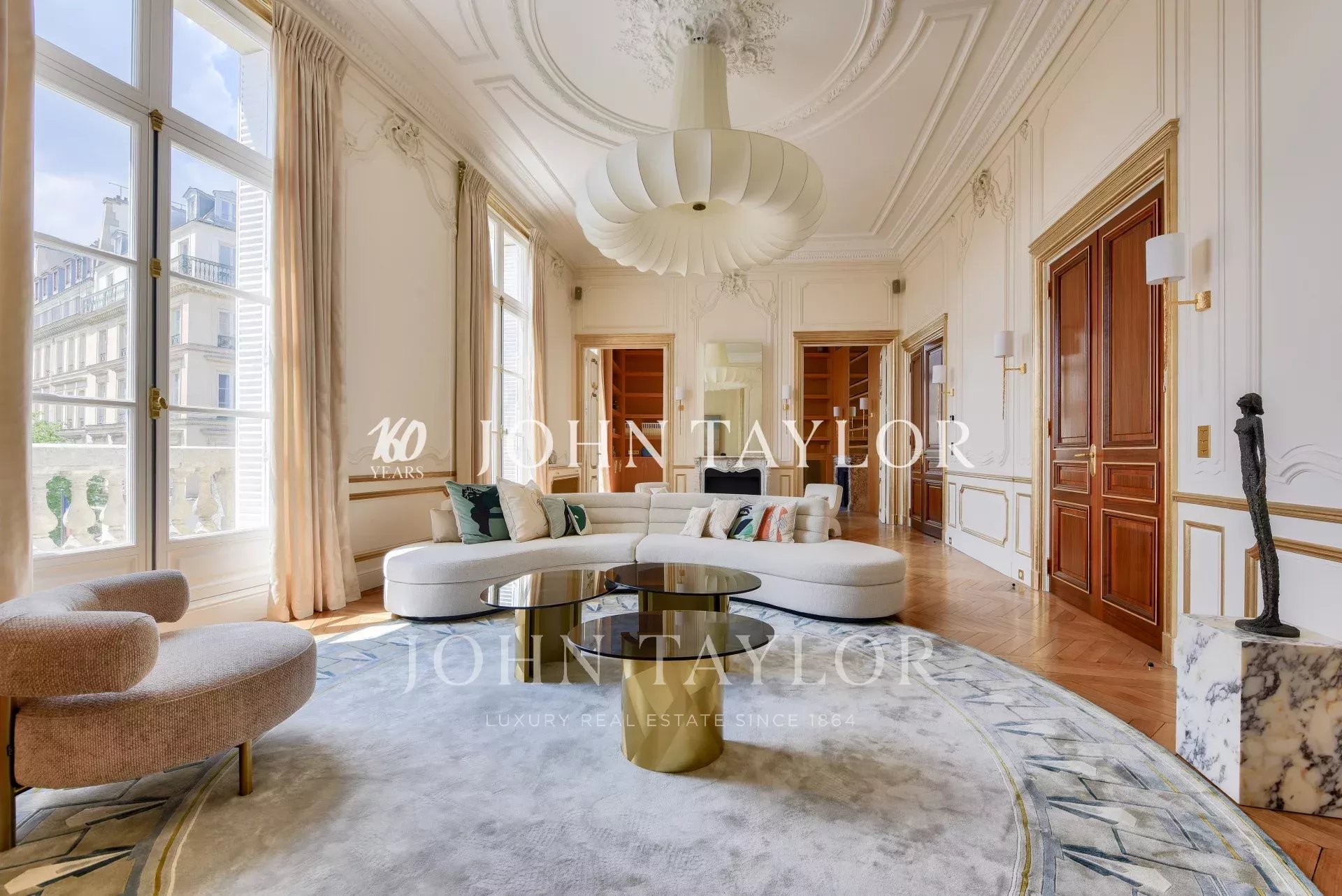 Dans un immeuble de grand standing, au deuxième étage avec ascenseur, fabuleux appartement de réception d’une superficie de 350 m2 au sol (319 m2 loi Carrez) ayant bénéficié d’une rénovation exceptionnelle par l'un des cabinets d'architecture les plus renommés.