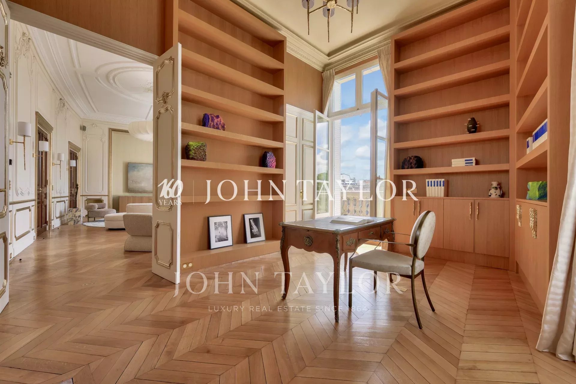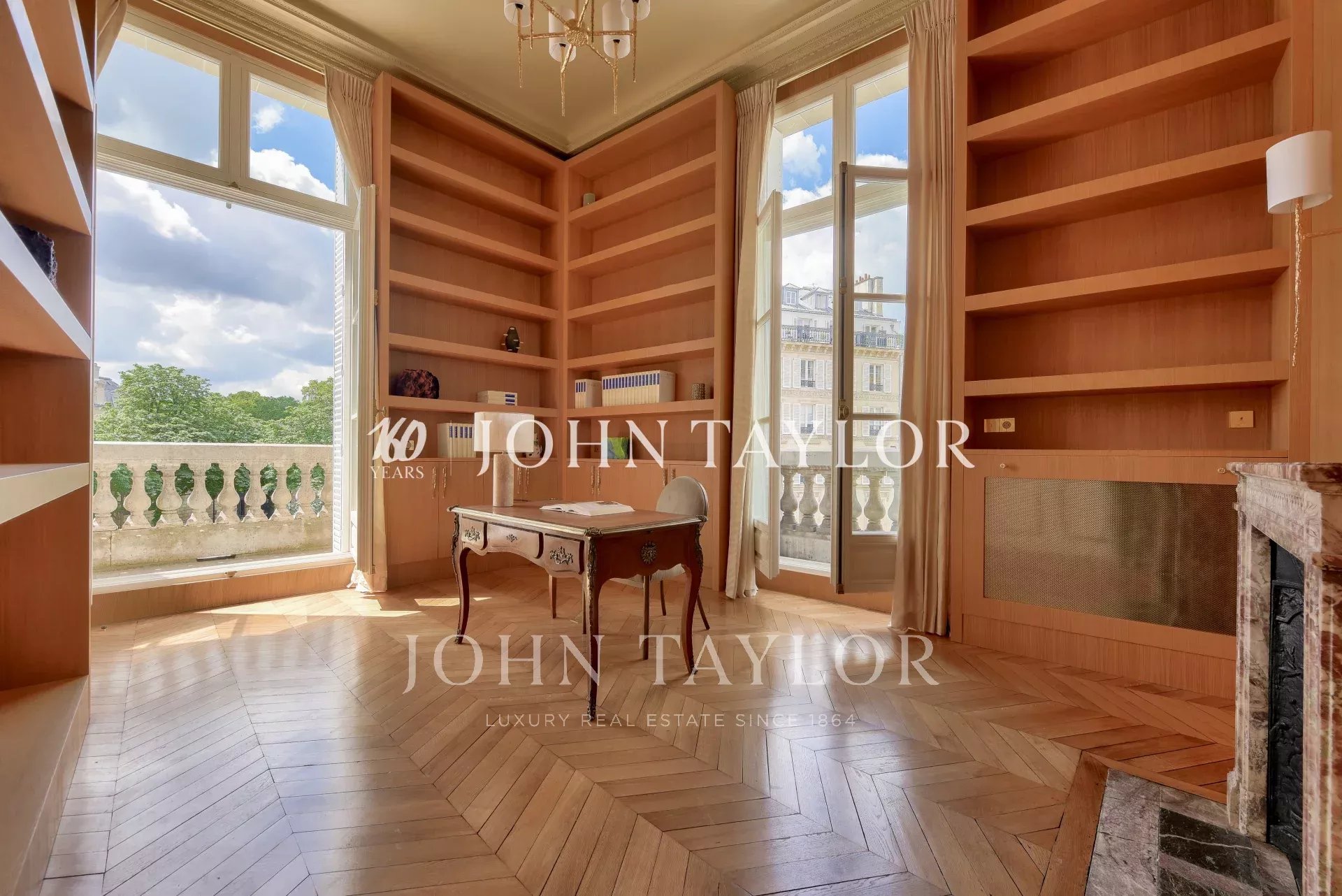 - un très élégant bureau d'angle, agrémenté de boiseries offrant lui aussi des vues sur l'Elysée (3e suite possible facilement)