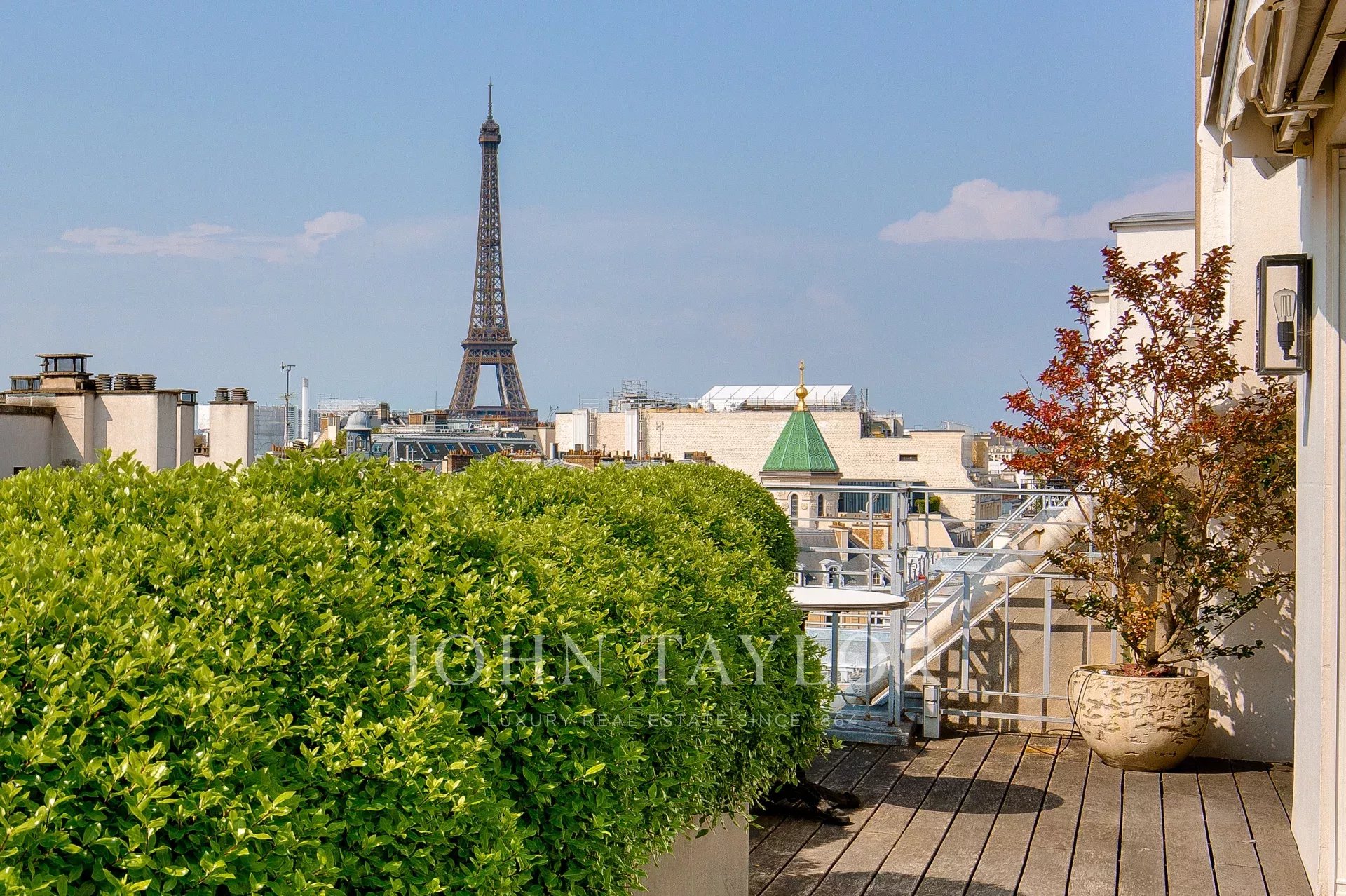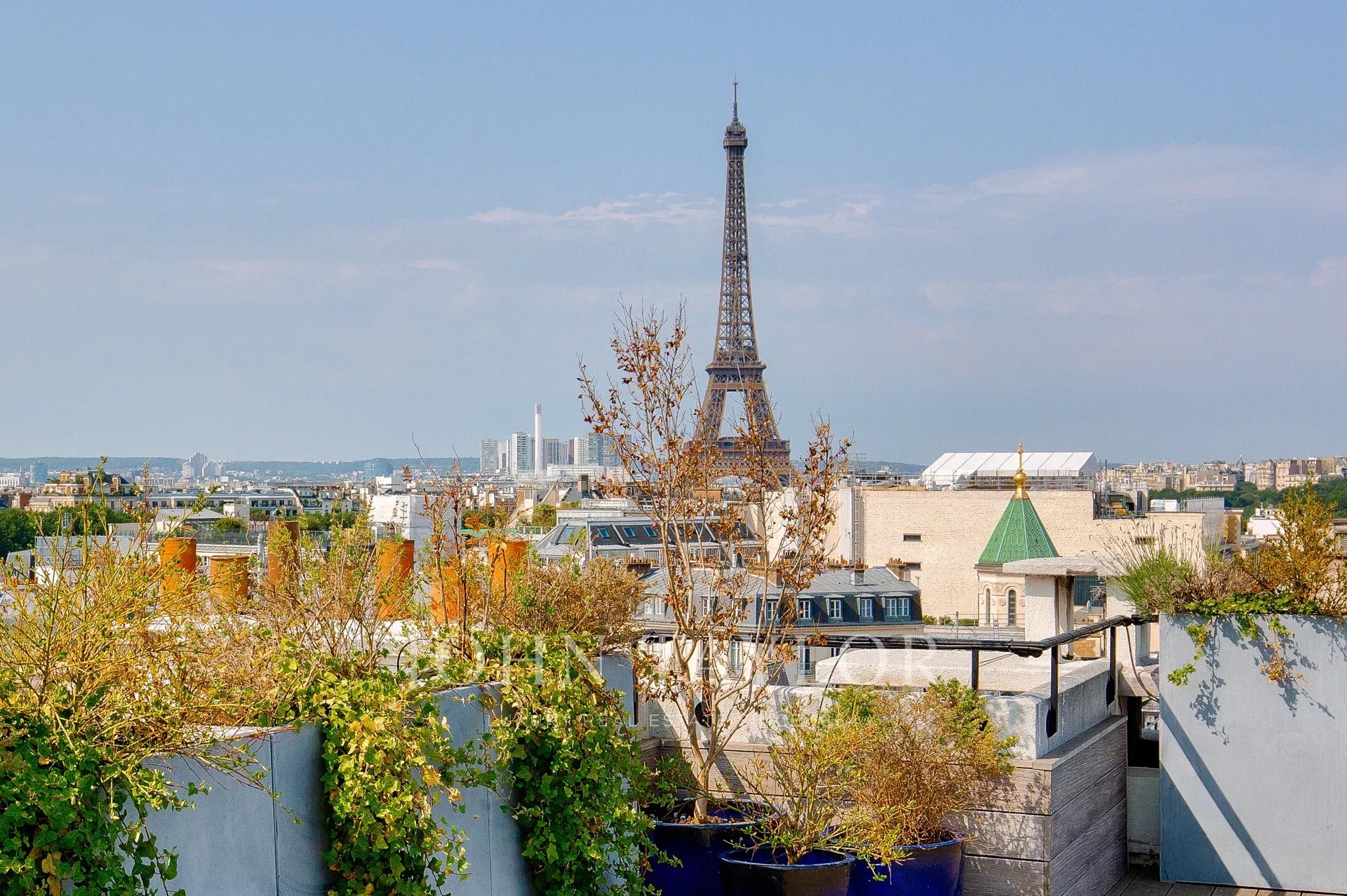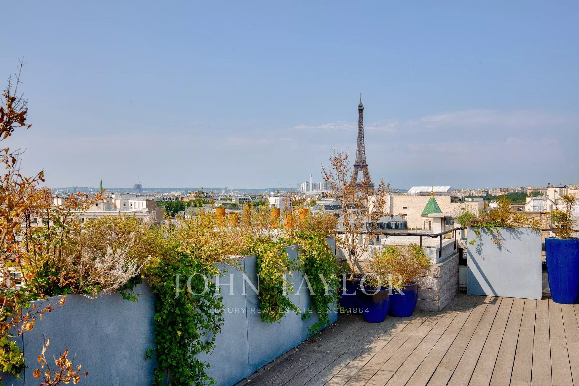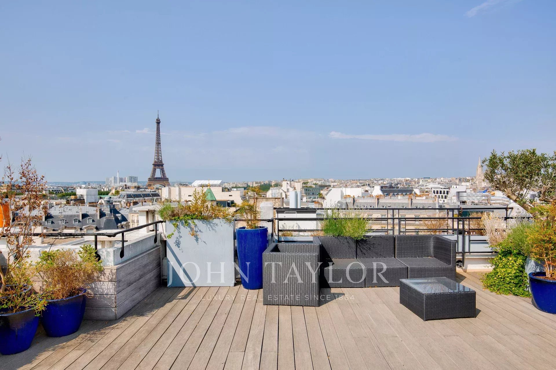 D'une superficie de 225 m2 cet appartement en parfait état et climatisé bénéficie de plusieurs terrasses offrant des vues exceptionnelles sur Paris, la Tour Eiffel et le Grand Palais.