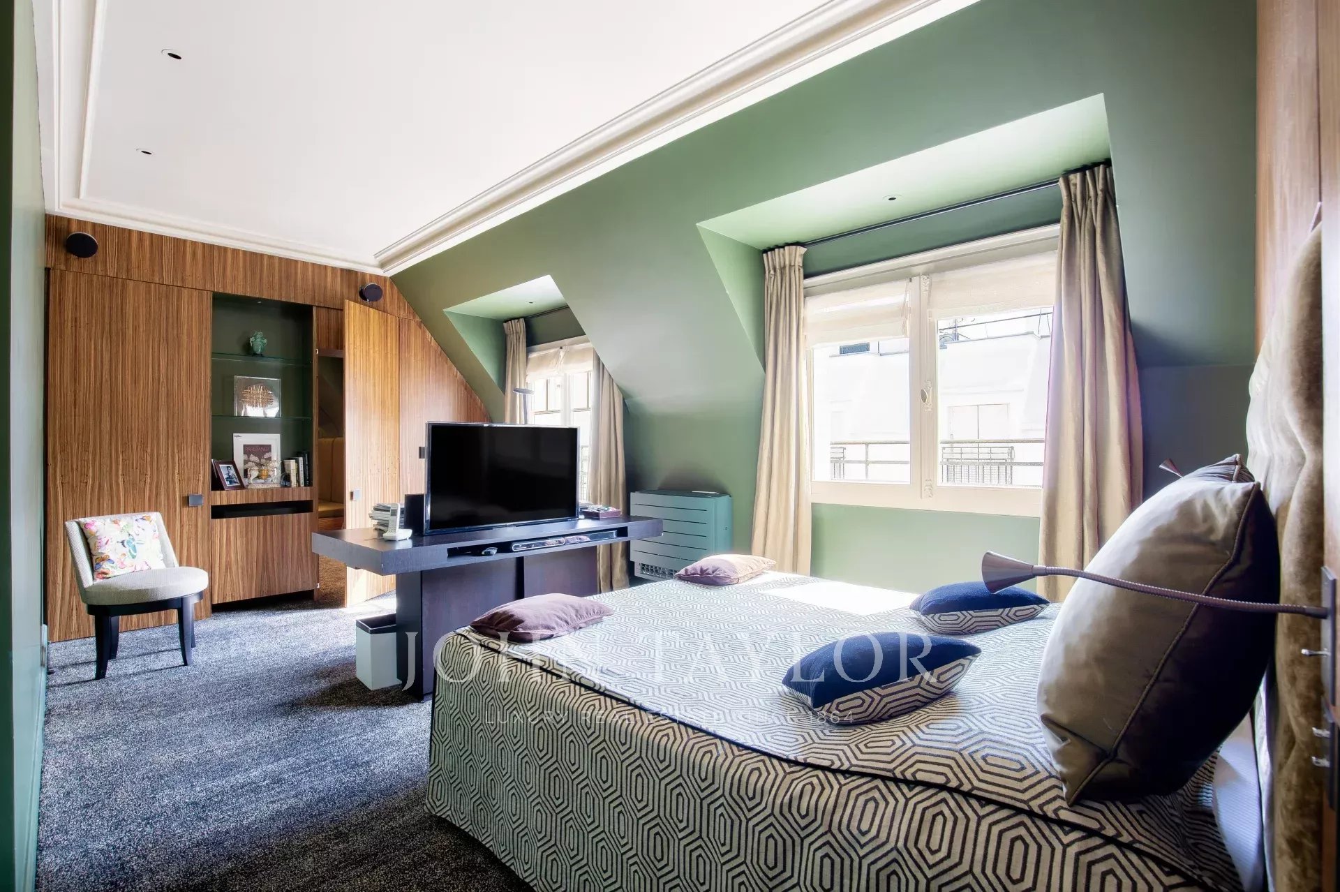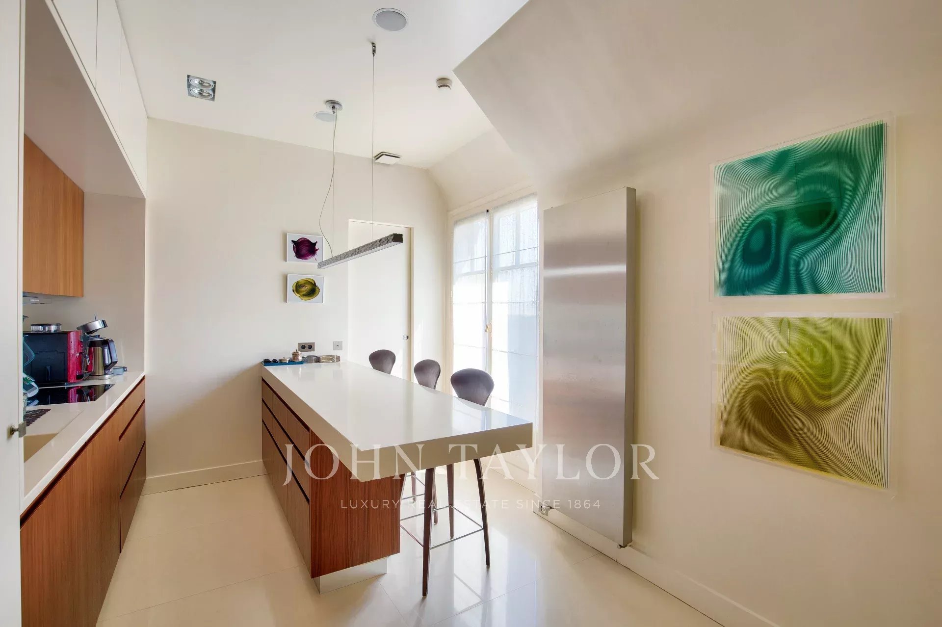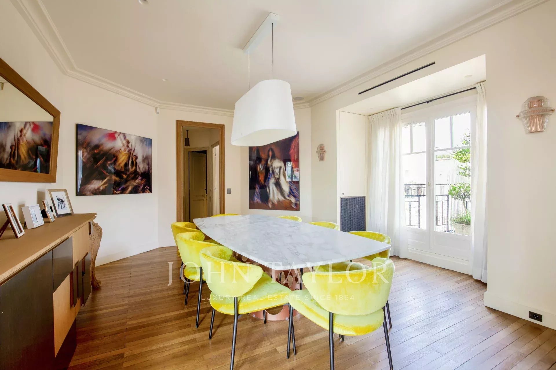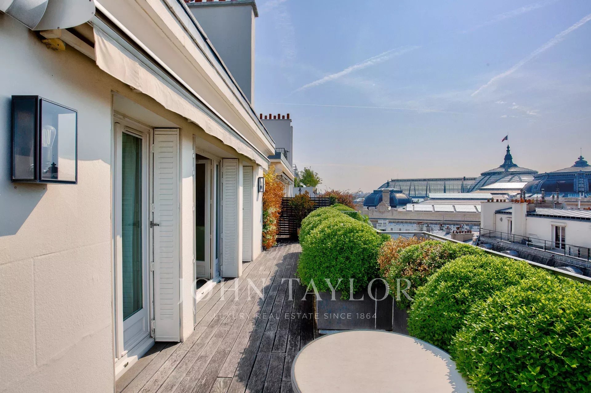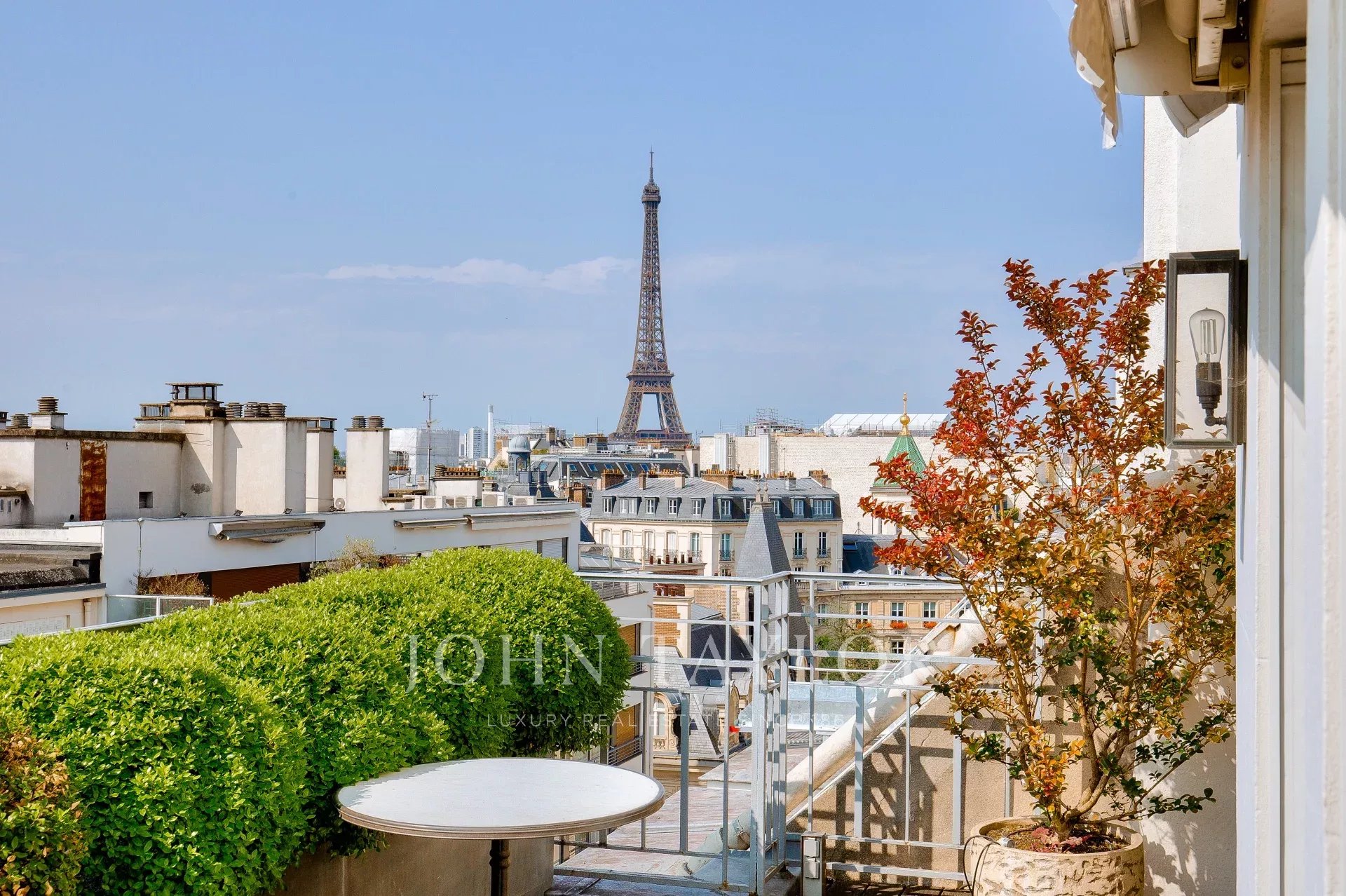 D'une superficie de 225 m2 cet appartement en parfait état et climatisé bénéficie de plusieurs terrasses offrant des vues exceptionnelles sur Paris, la Tour Eiffel et le Grand Palais.