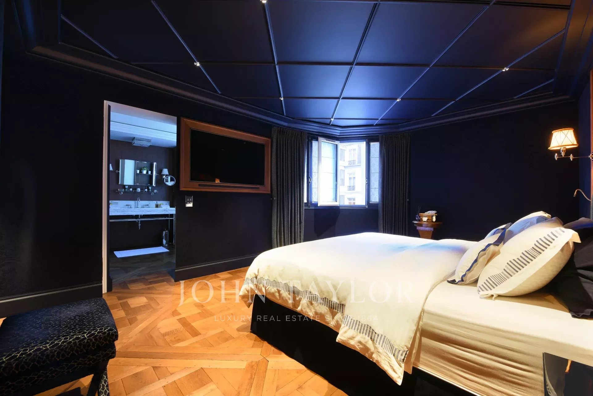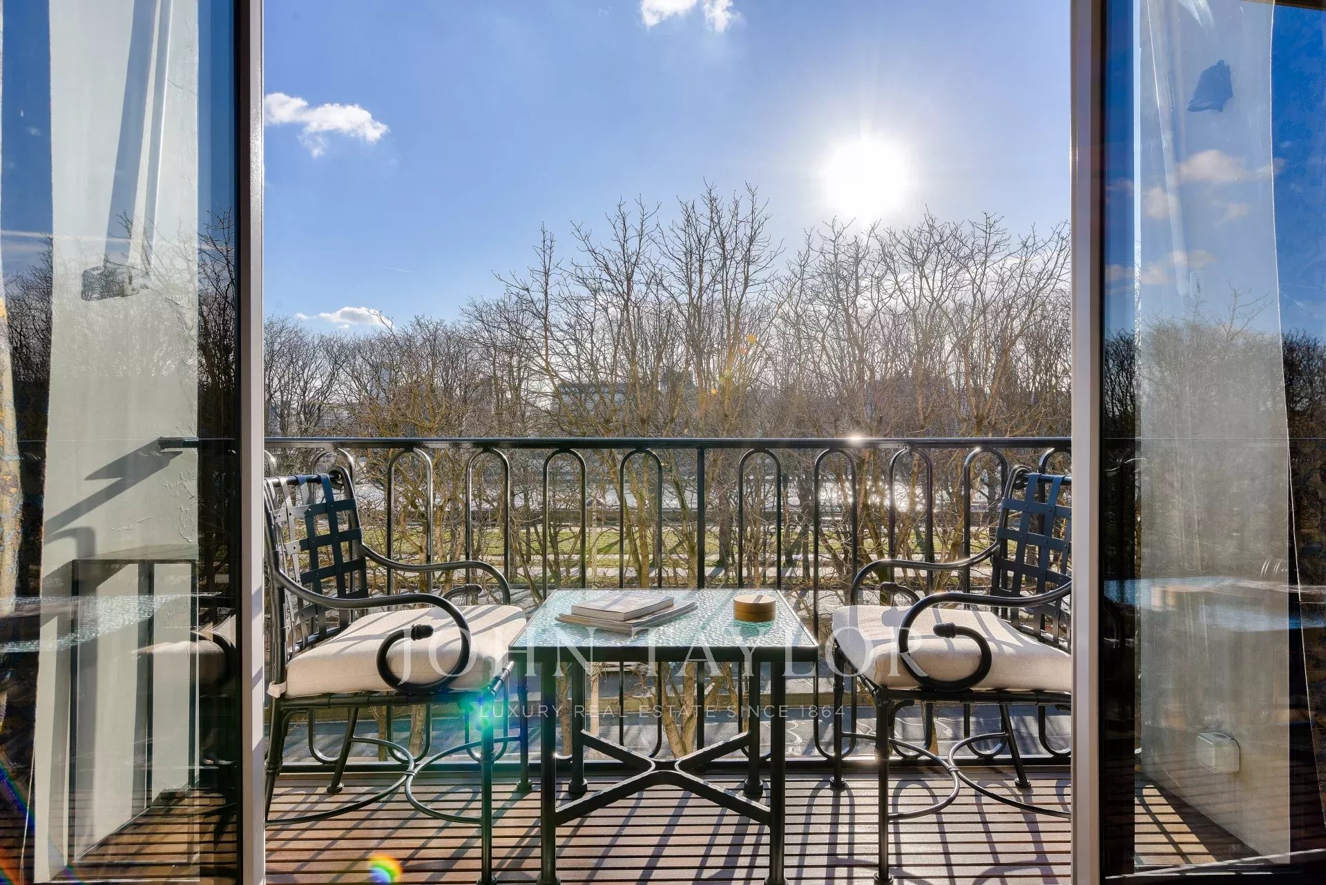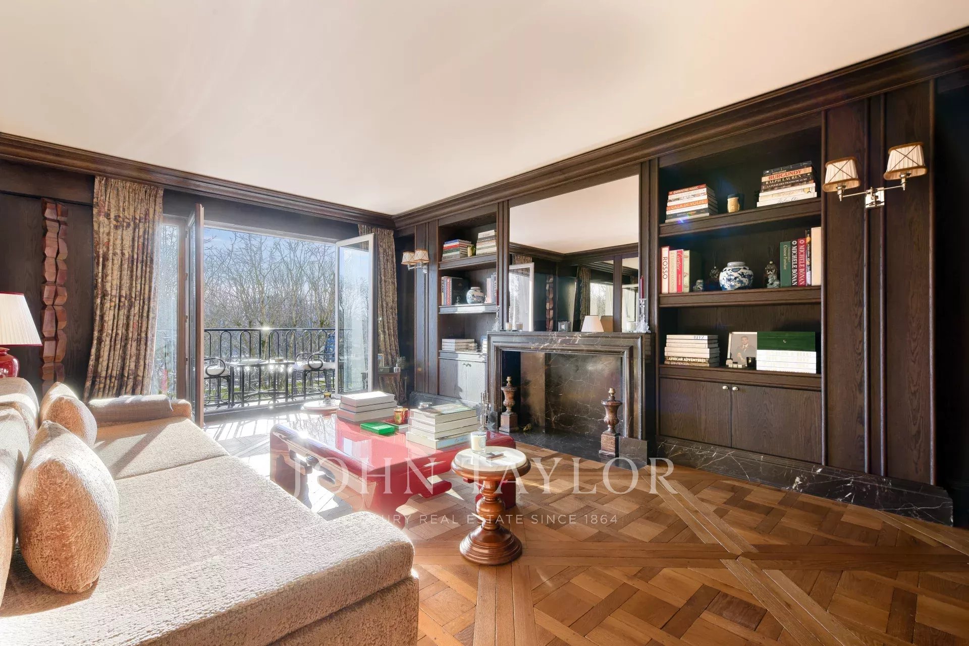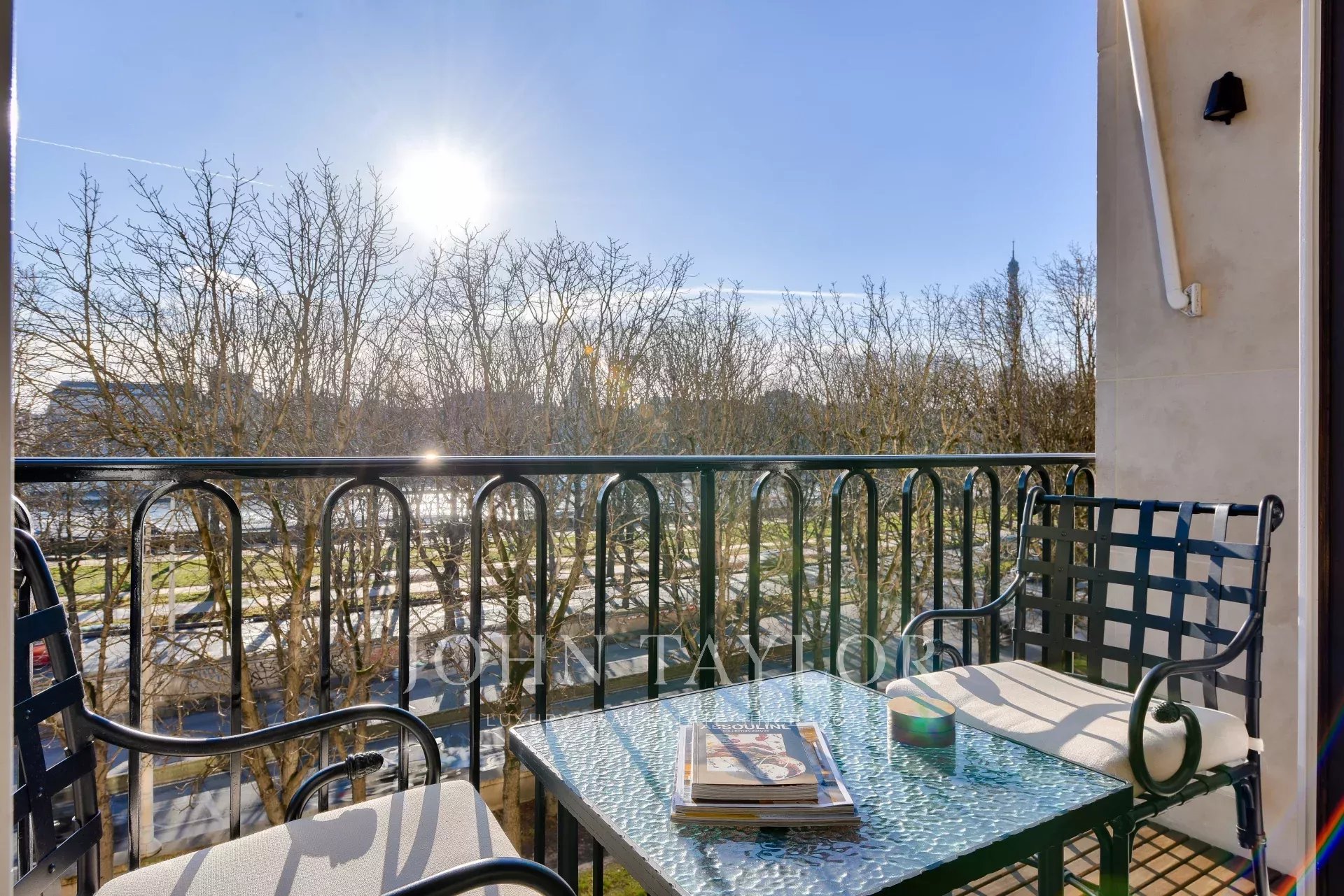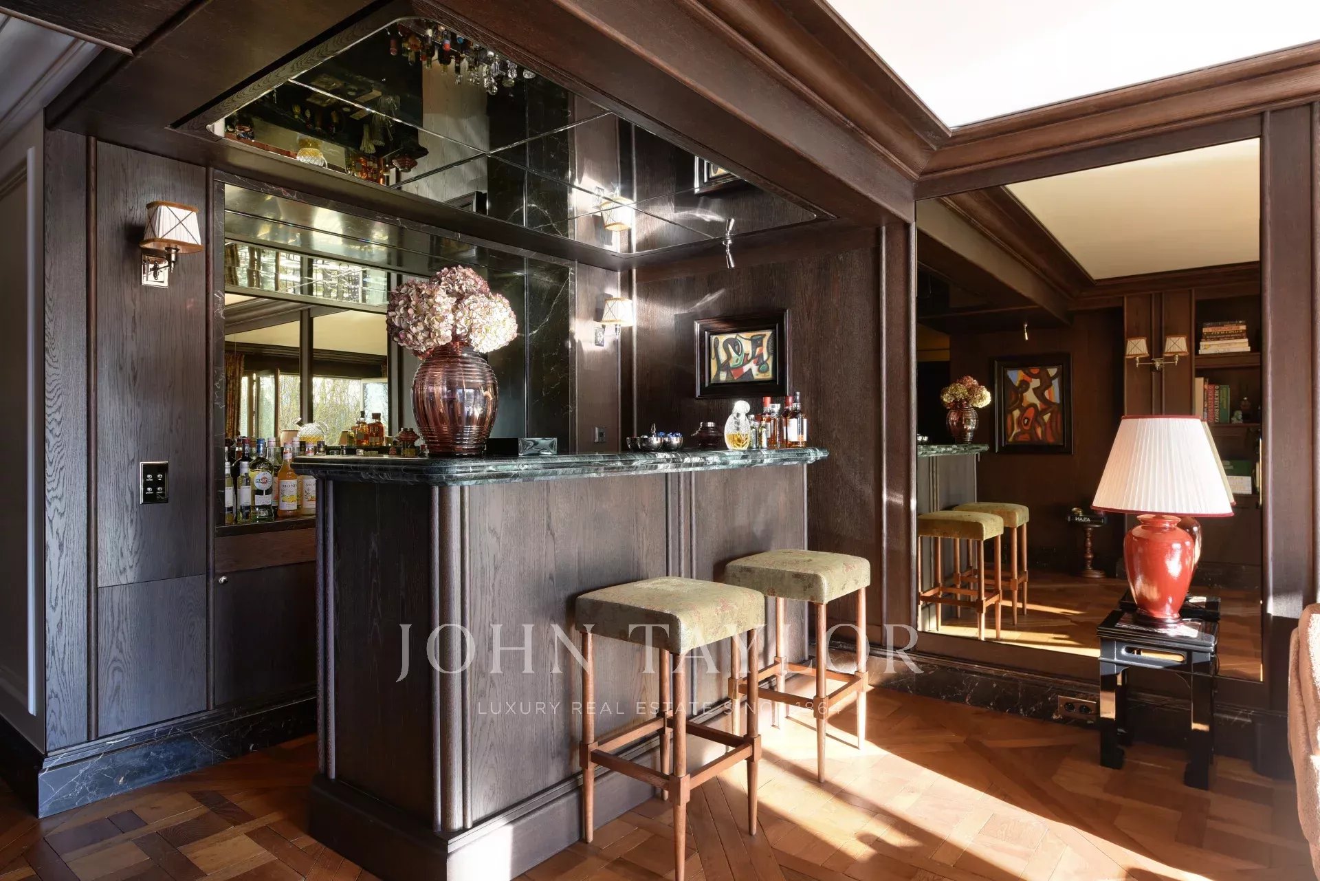 - Un vaste salon agrémenté d’un superbe bar professionnel et prolongé par un balcon plein Sud avec vue Tour Eiffel,