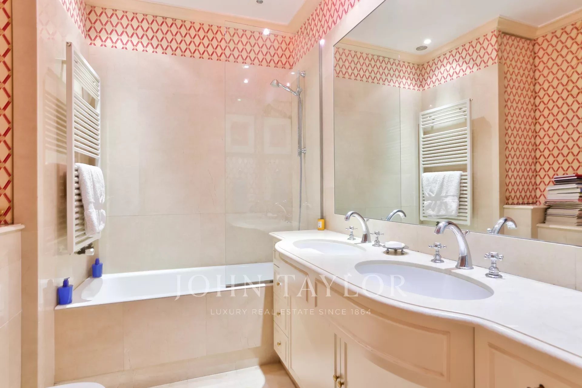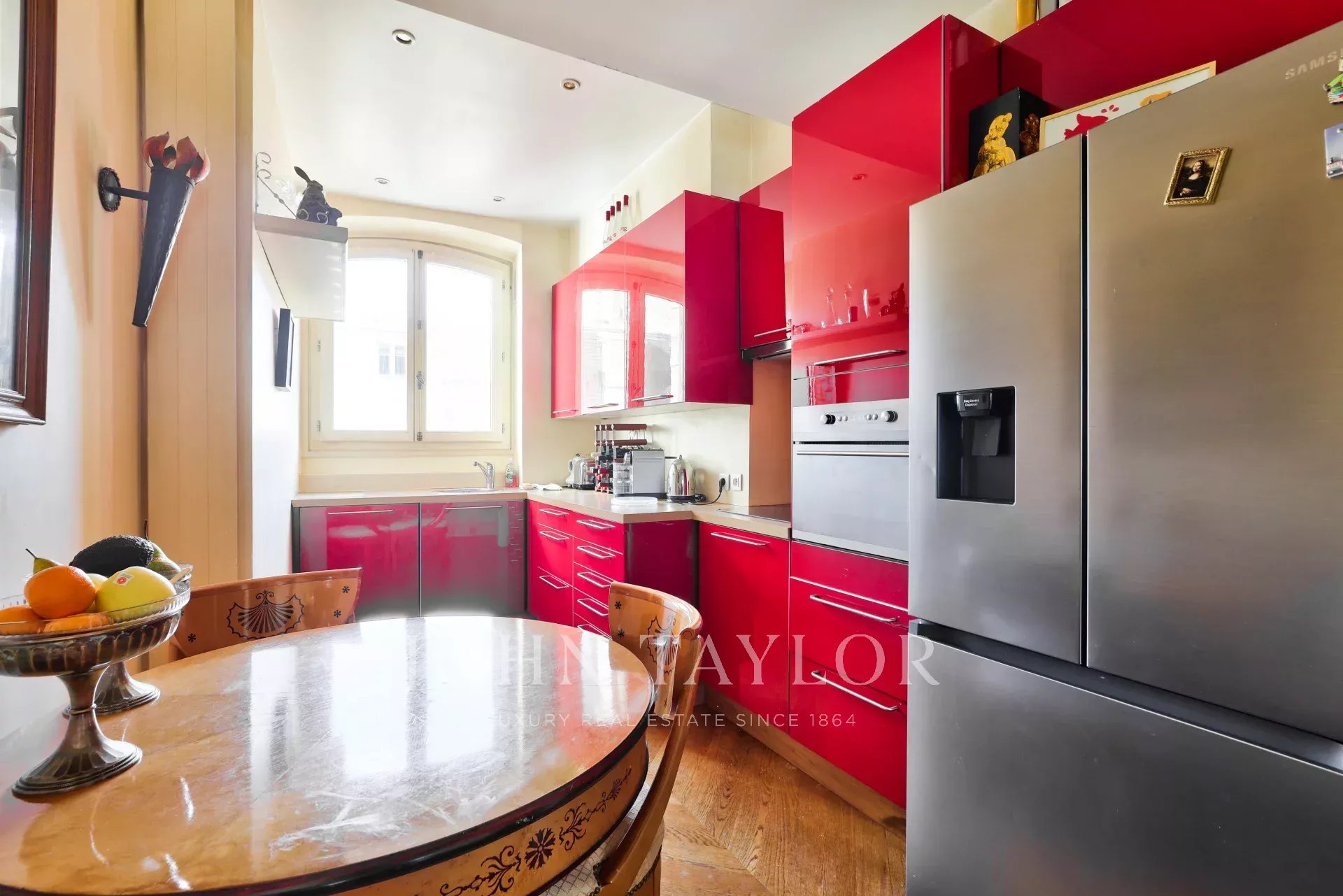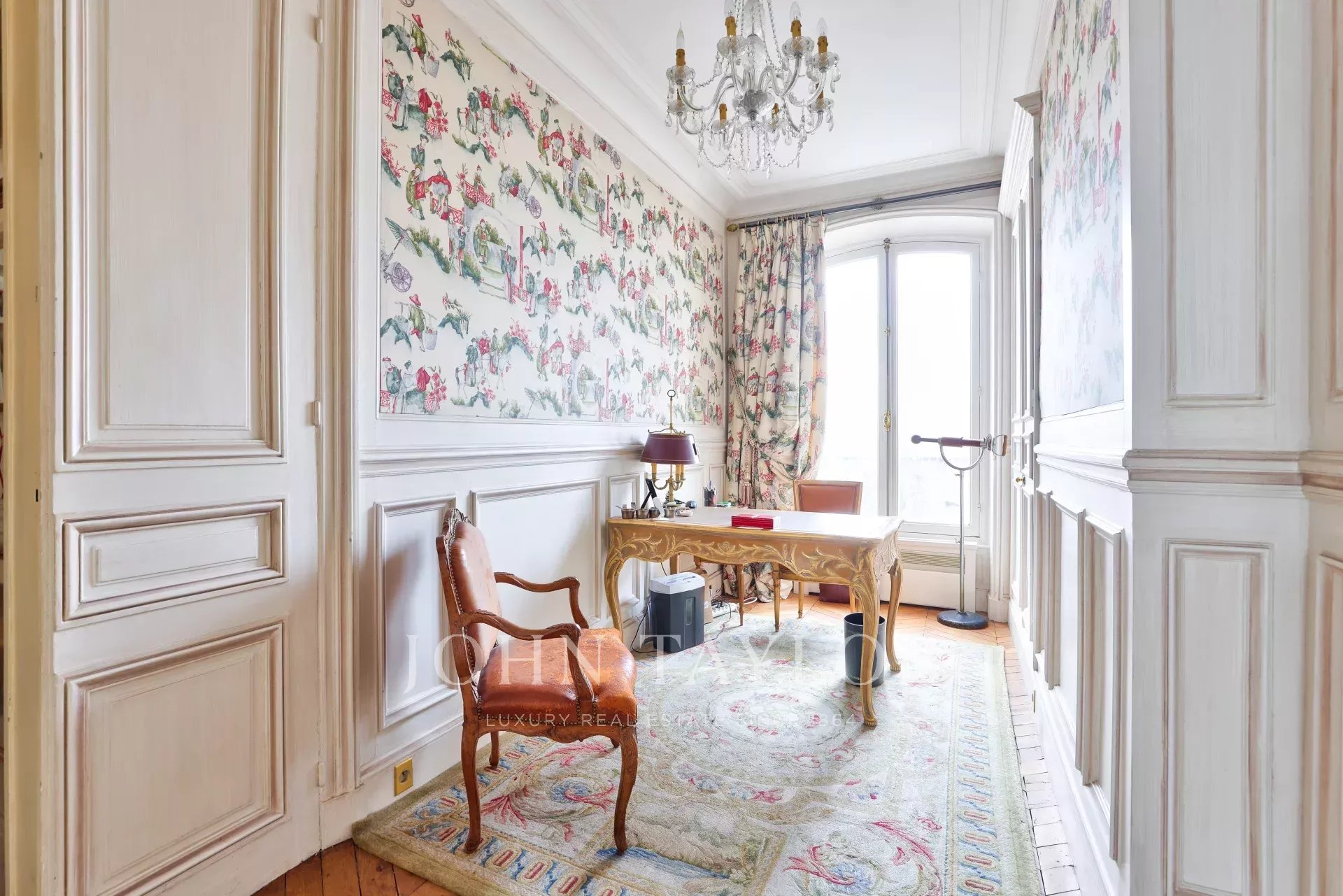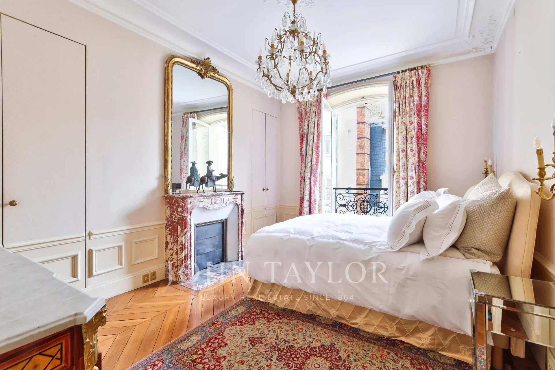 L'appartement a conservé ses éléments d'origine (parquet, moulures, cheminées) et bénéficie d'une climatisation. Il présente un excellent plan.
