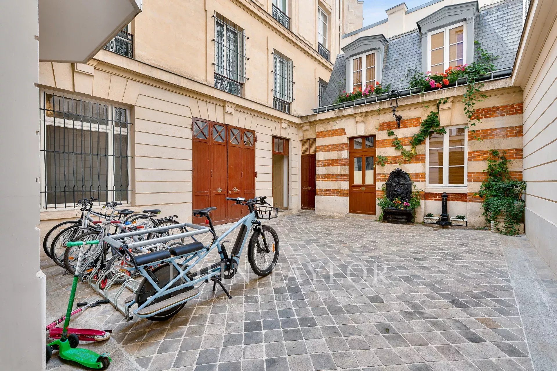 Belle hauteur sous plafond de 3,30 m, cheminée d’époque, moulures, parquet, et accès à une cour charmante. Exposition sud-est.