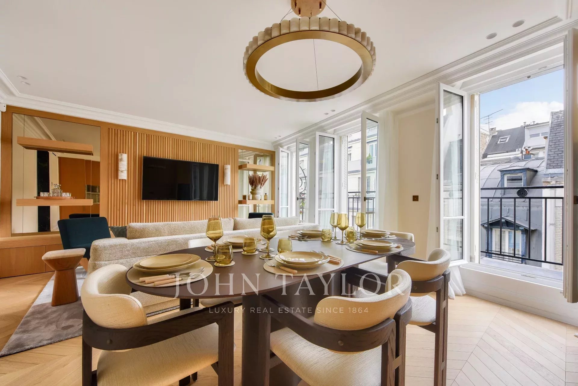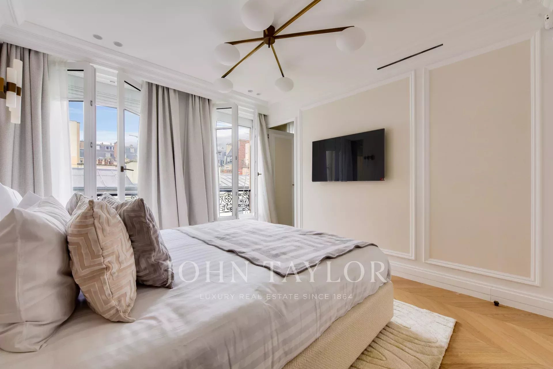 A quelques pas de l'Arc de Triomphe, appartement coup de coeur situé au dernier étage d'un immeuble ancien, nous vous proposons un superbe appartement rénové et meublé avec des prestations de qualité. La superficie de ce bien traversant est de 66 m².