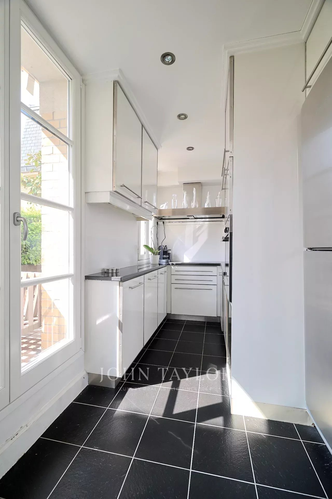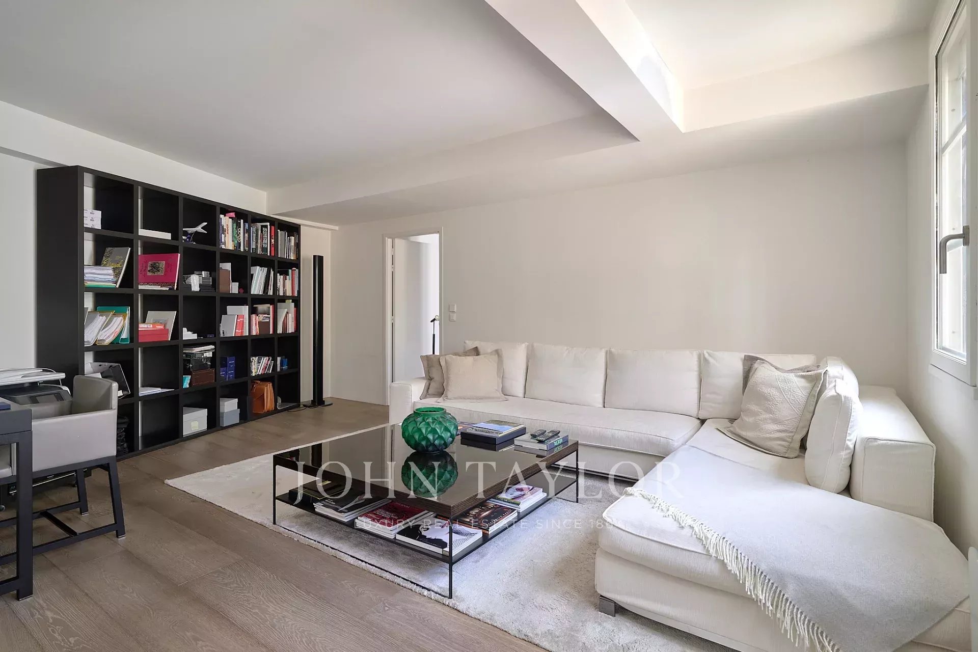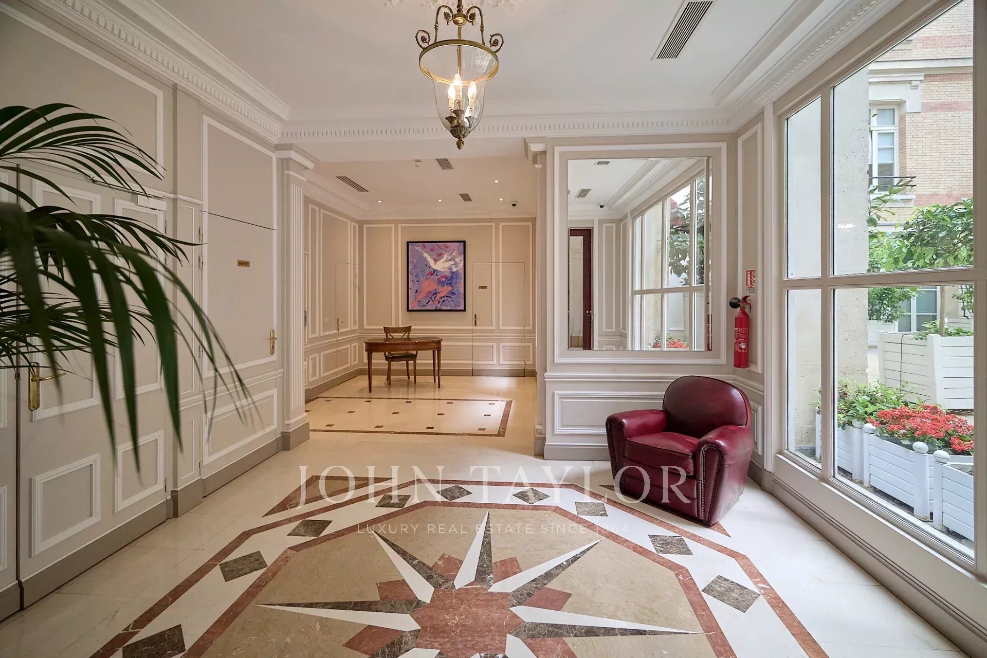 Dans un immeuble de grand standing situé entre l’avenue George V et les Champs Élysées, appartement au 5ème étage avec une terrasse ensoleillée et calme de 18 m² accessible depuis le séjour.