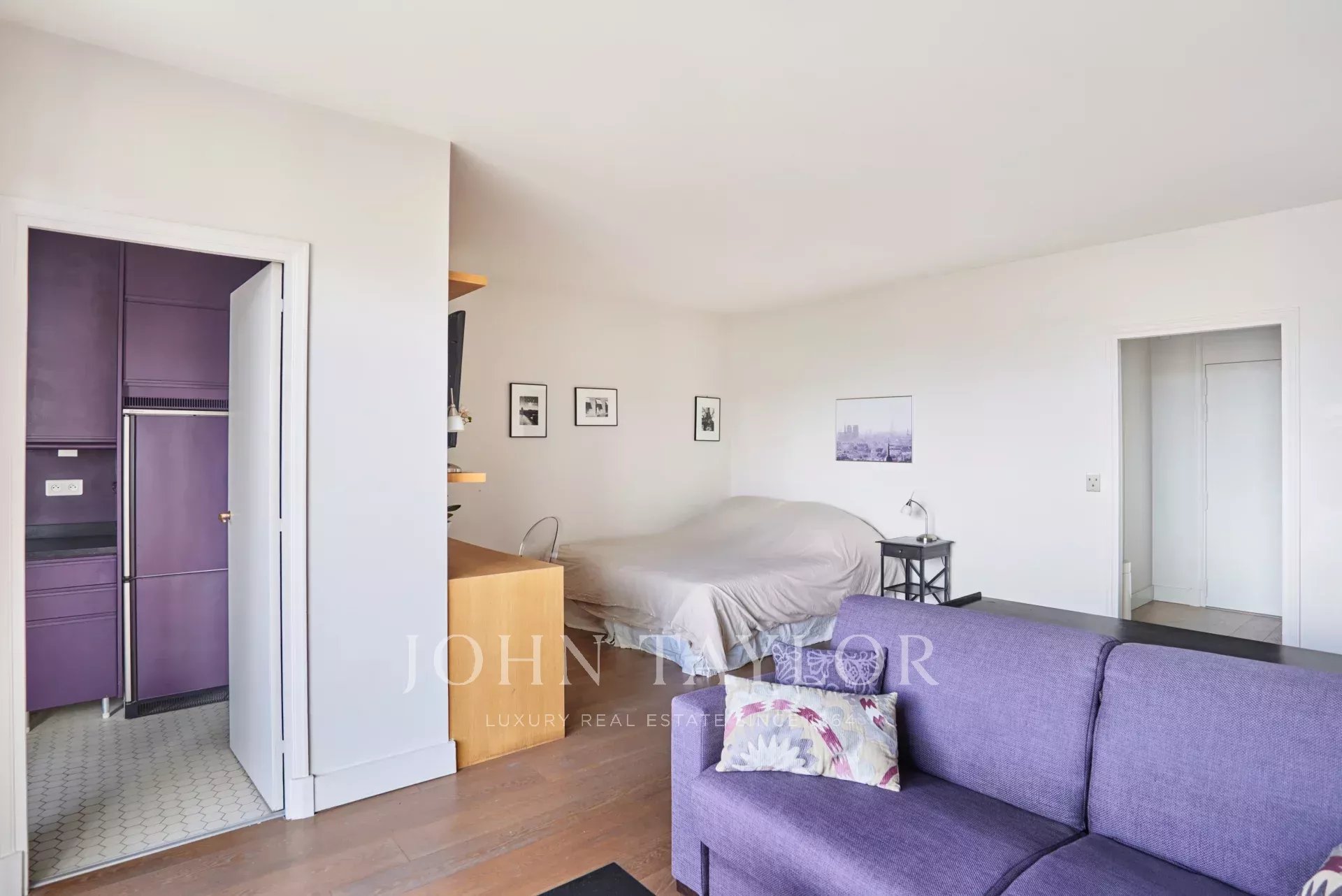 Situé entre l'avenue Montaigne et la Seine, dans un immeuble contemporain récemment réhabilité, ce charmant appartement de 39.33m² se trouve au 7ème étage. Accessible par deux ascenseurs, il propose :