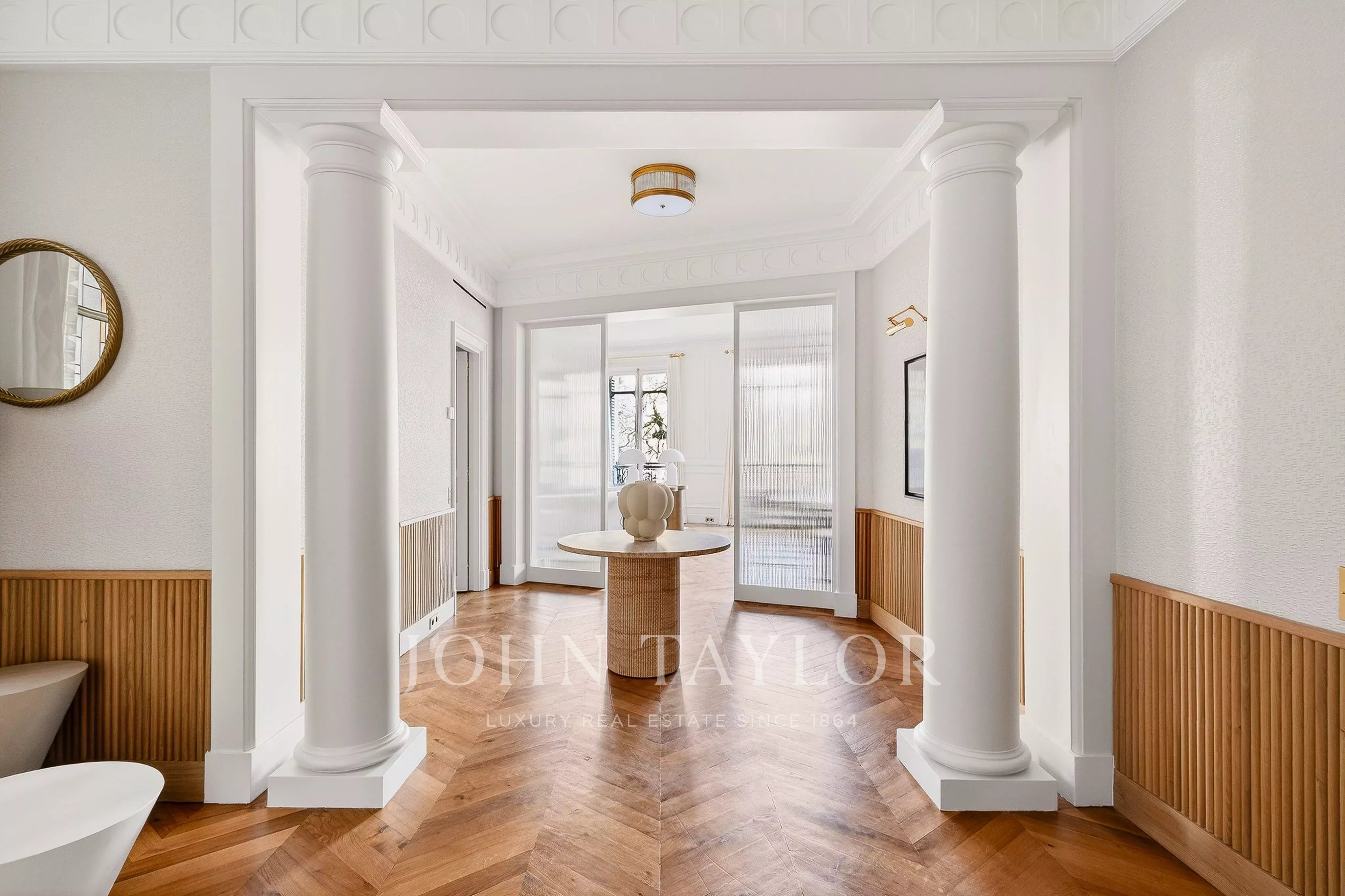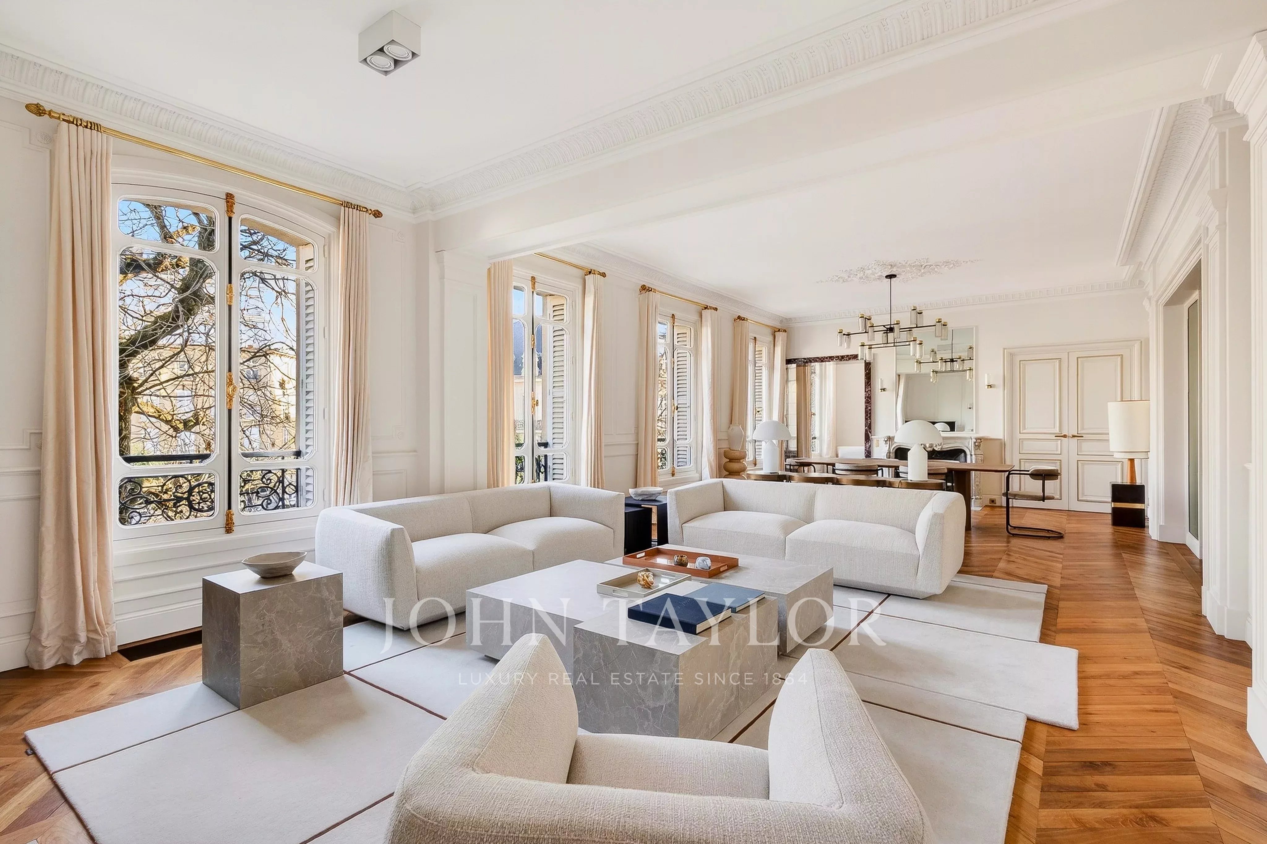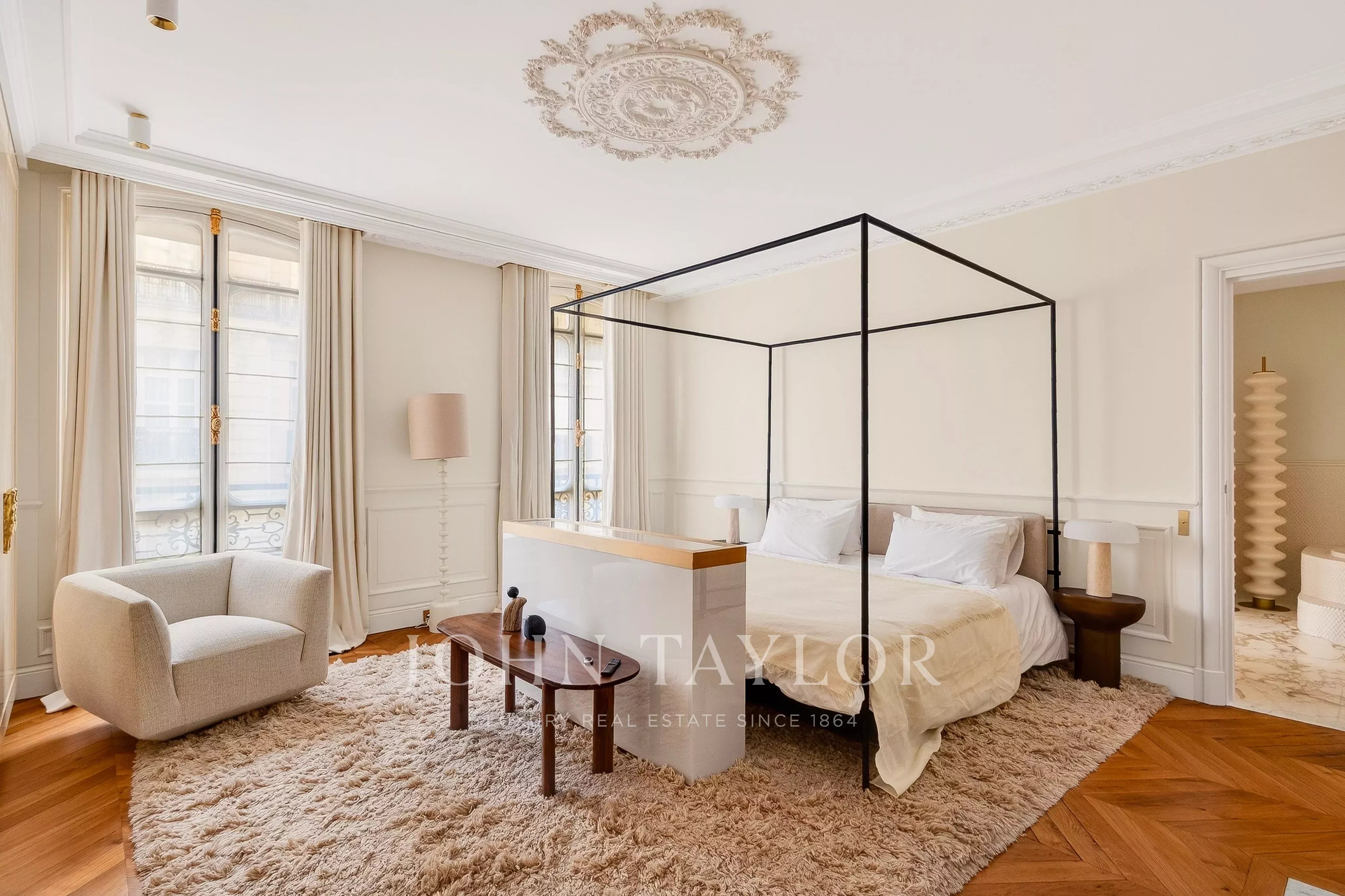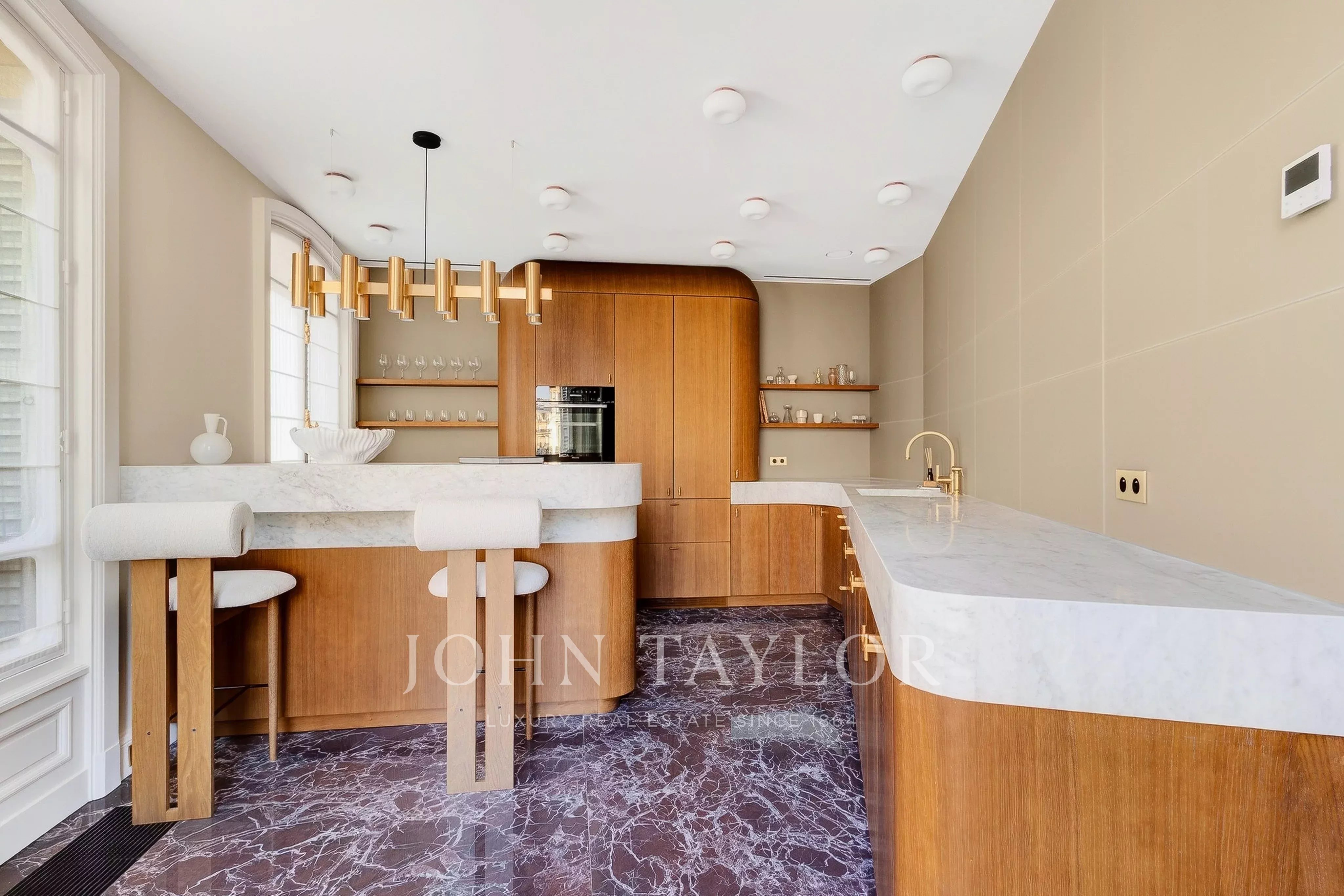 Au sein d'un très bel immeuble ancien de standing, appartement intégralement rénové par un cabinet d'architecte de renommée internationale, vendu meublé clé en main et prêt à vivre.
