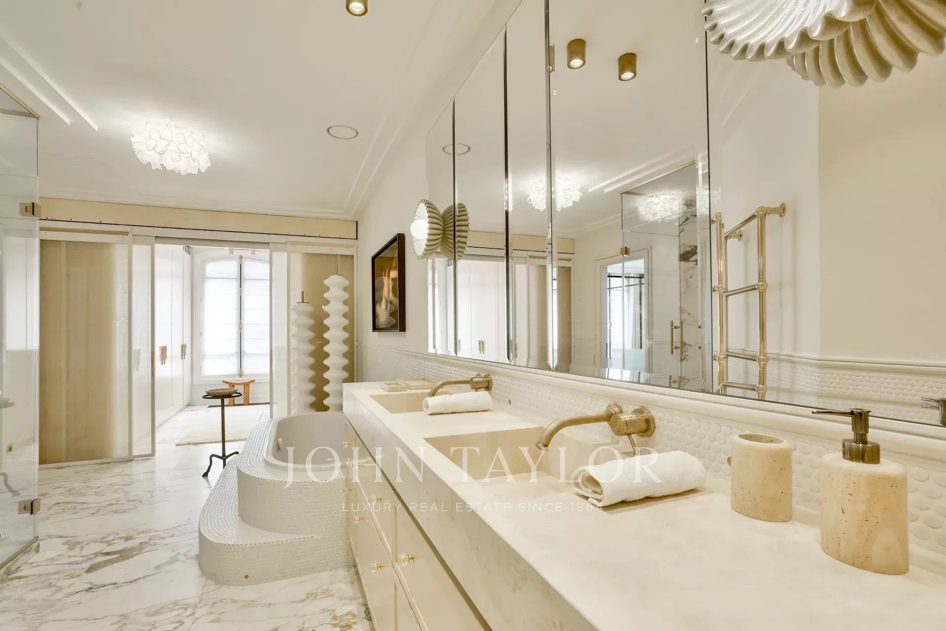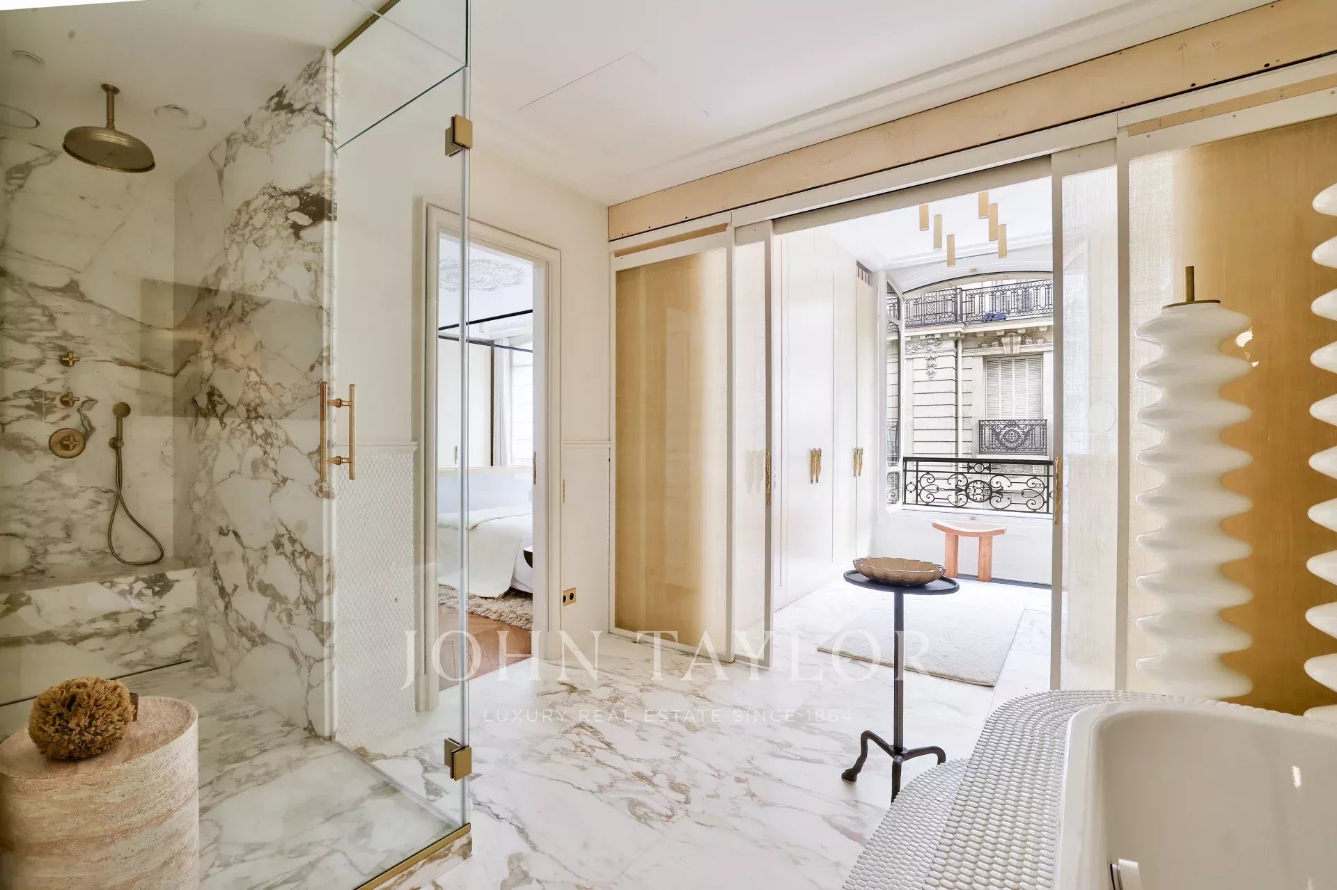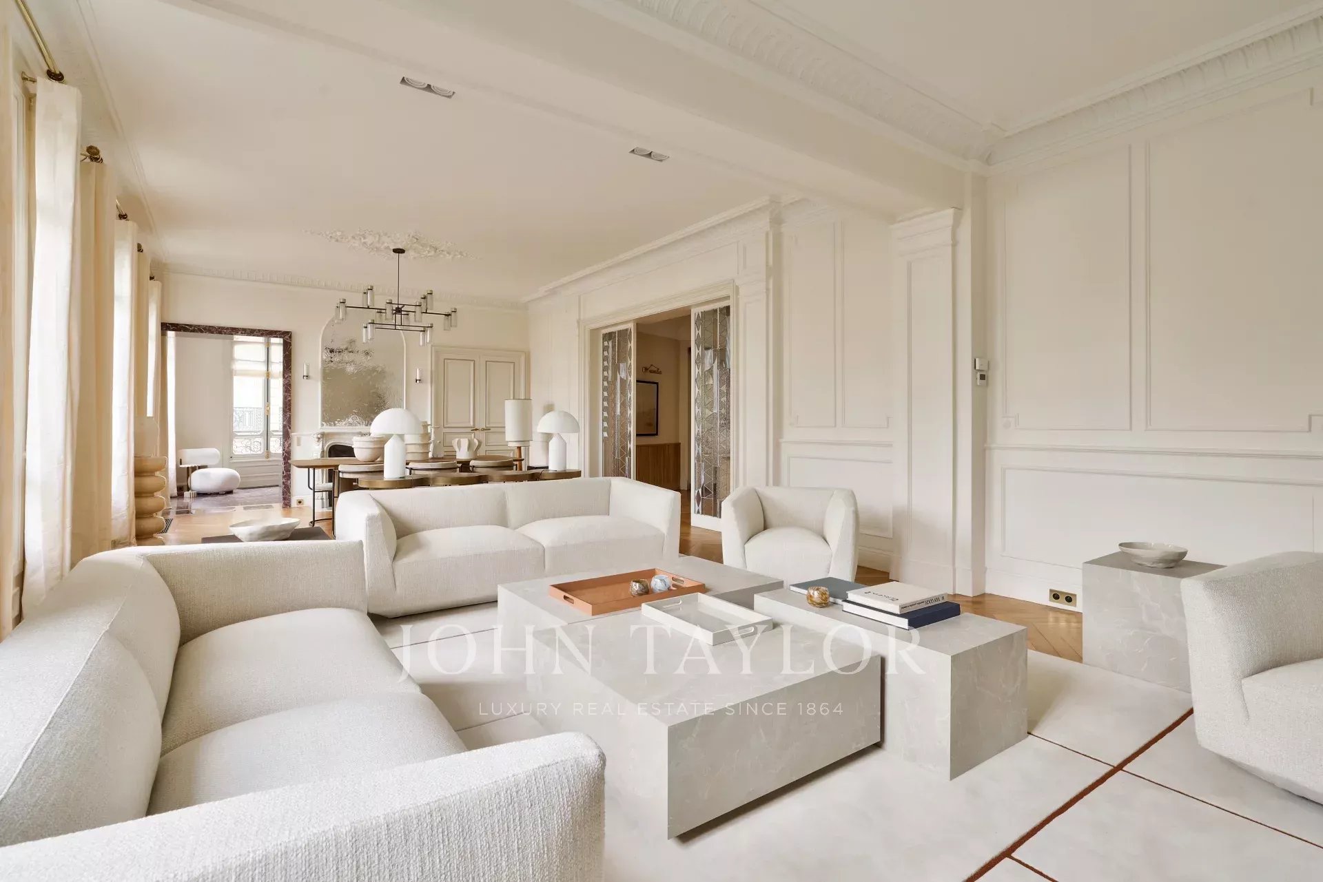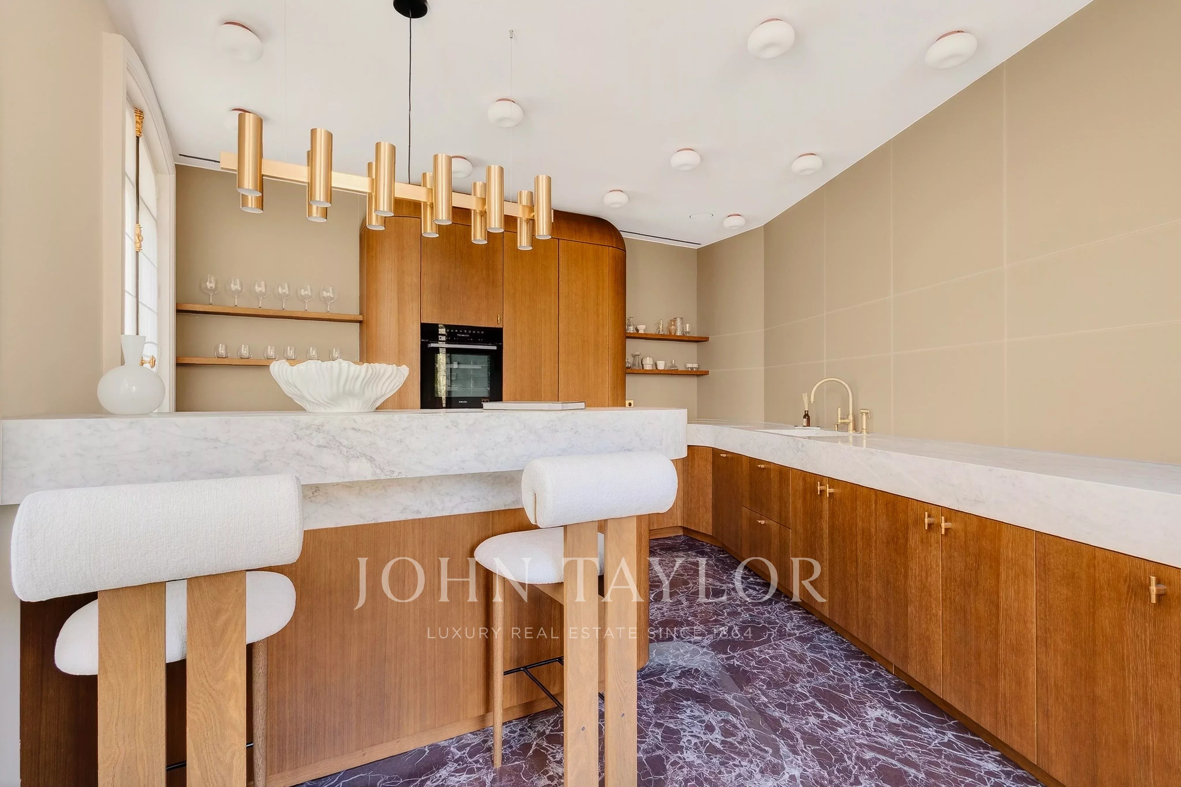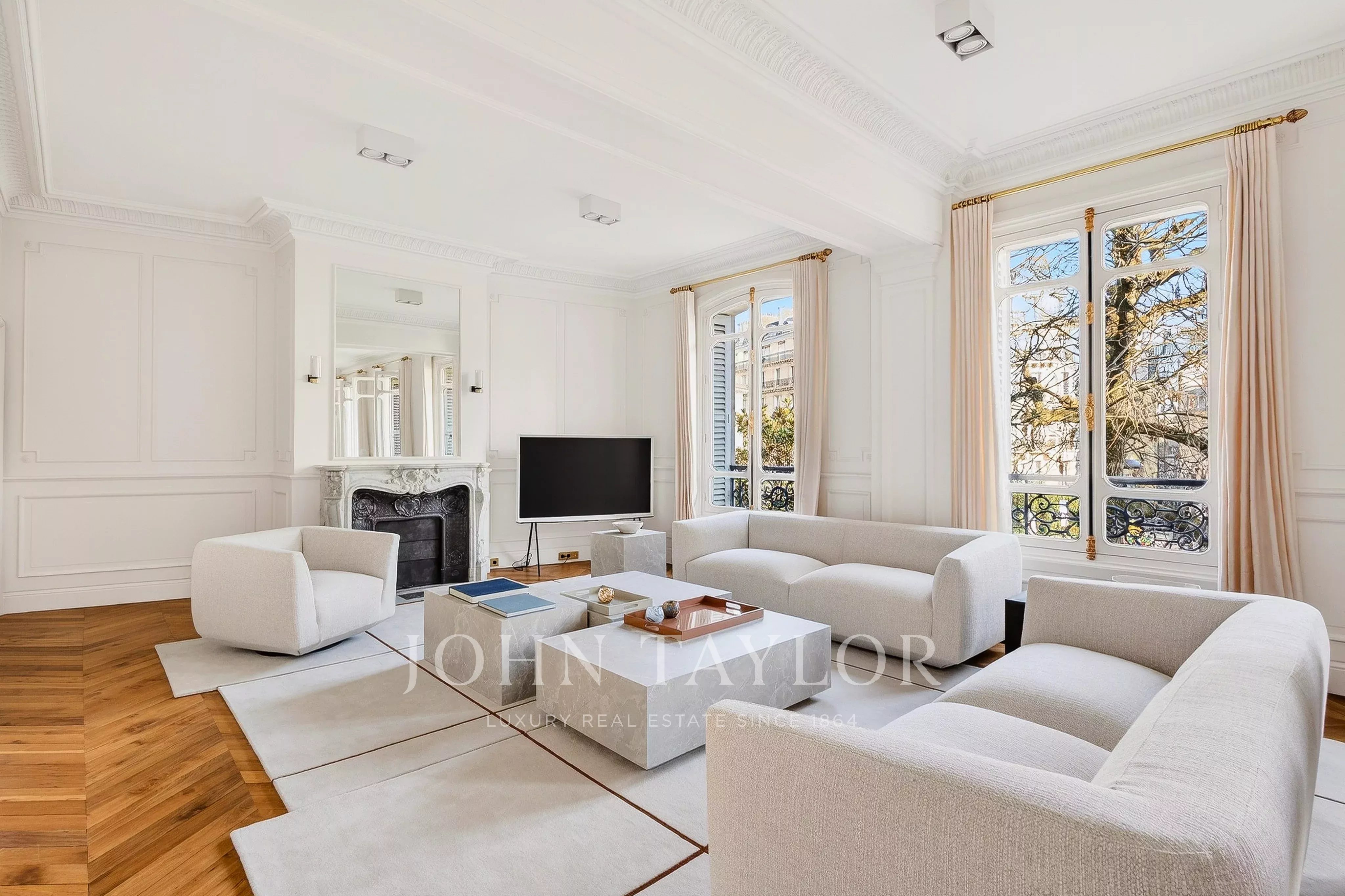 Au sein d'un très bel immeuble ancien de standing, appartement intégralement rénové par un cabinet d'architecte de renommée internationale, vendu meublé clé en main et prêt à vivre.