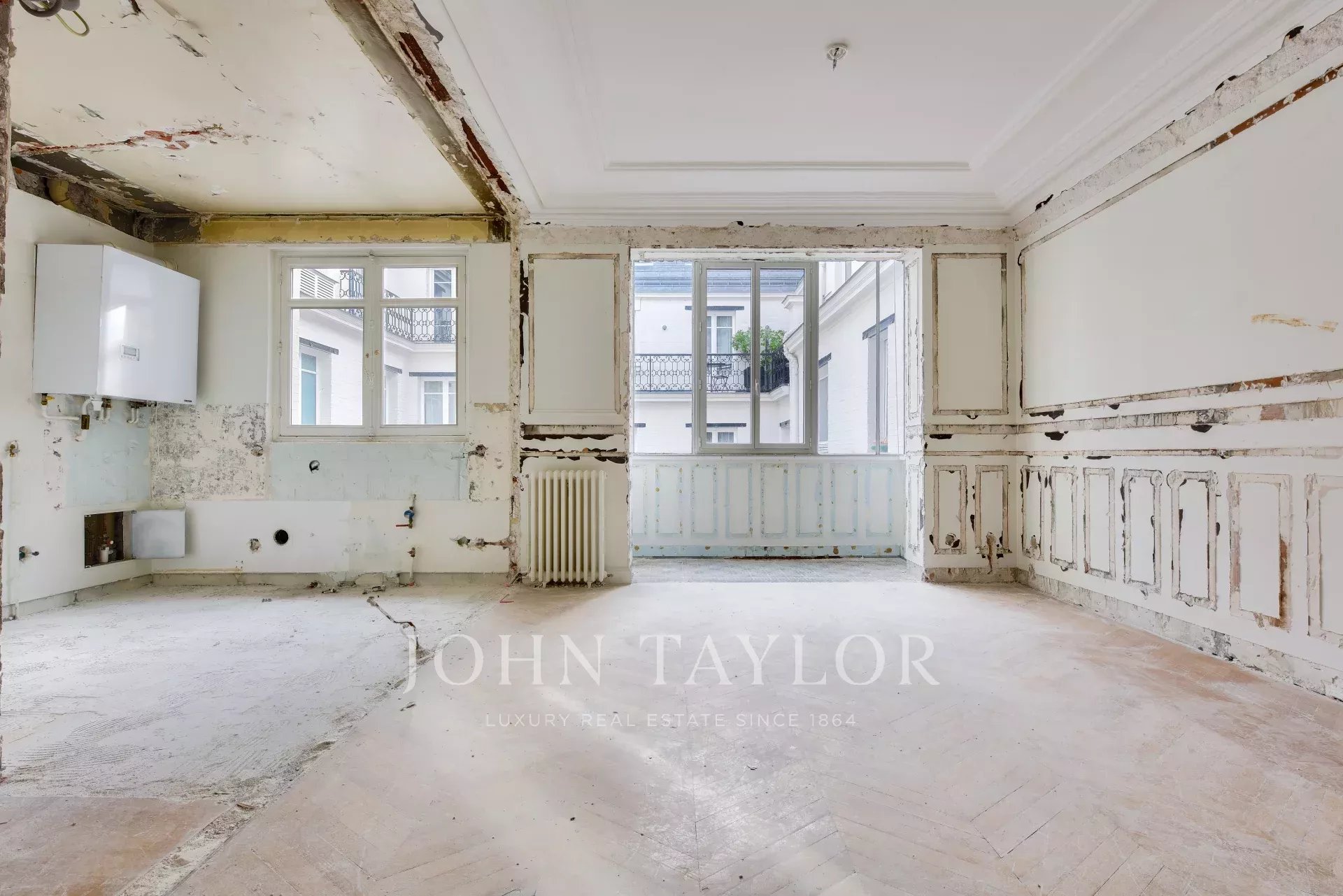 A noter : un appartement de 165m², également à rénover intégralement, sur le même palier est disponible. Ce qui permet, soit d'avoir deux appartements cote à cote, soit de les réunir pour un appartement de 5 ou 6 chambres de 300m²