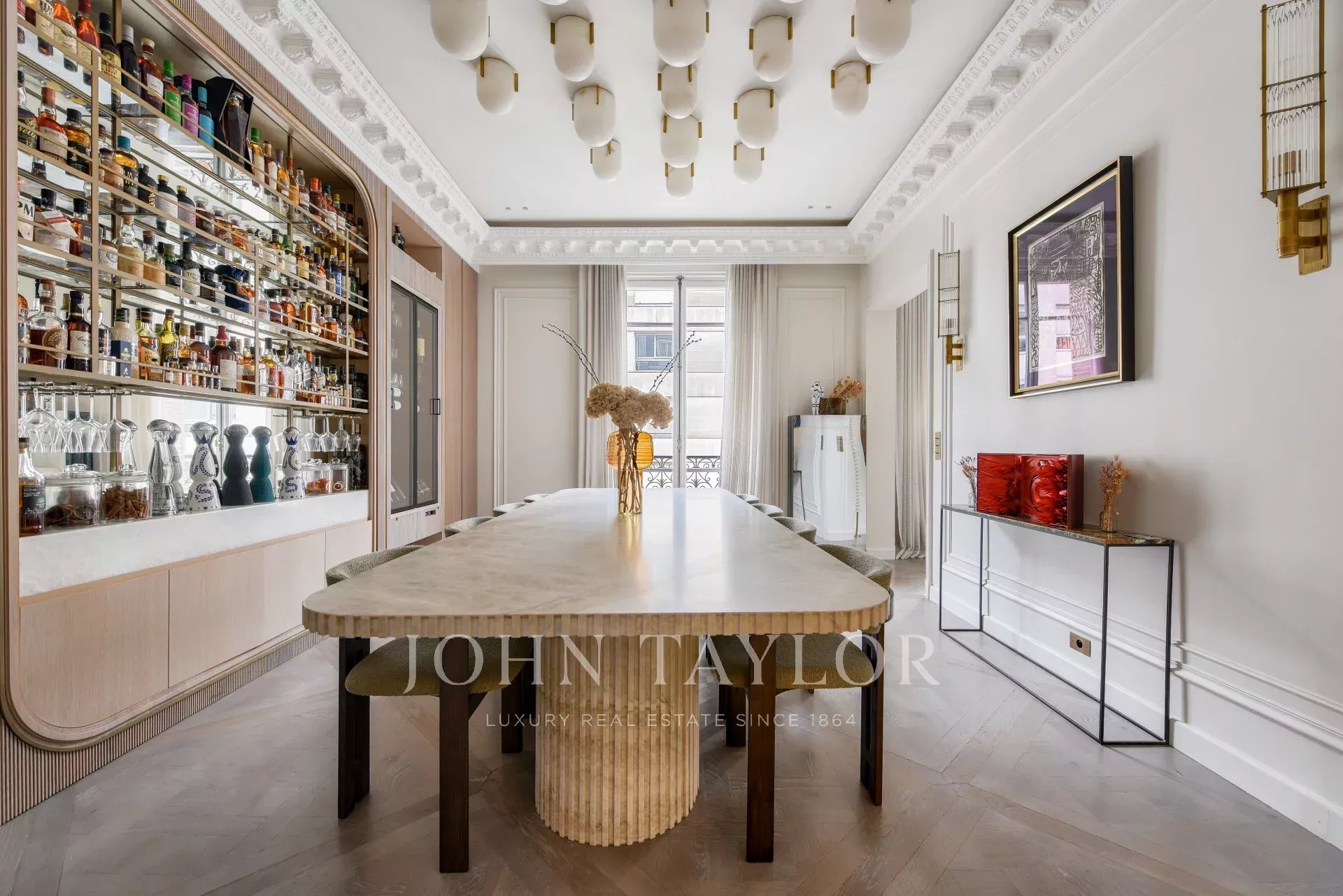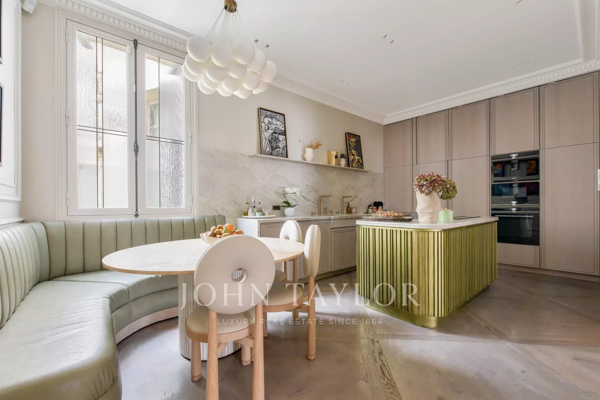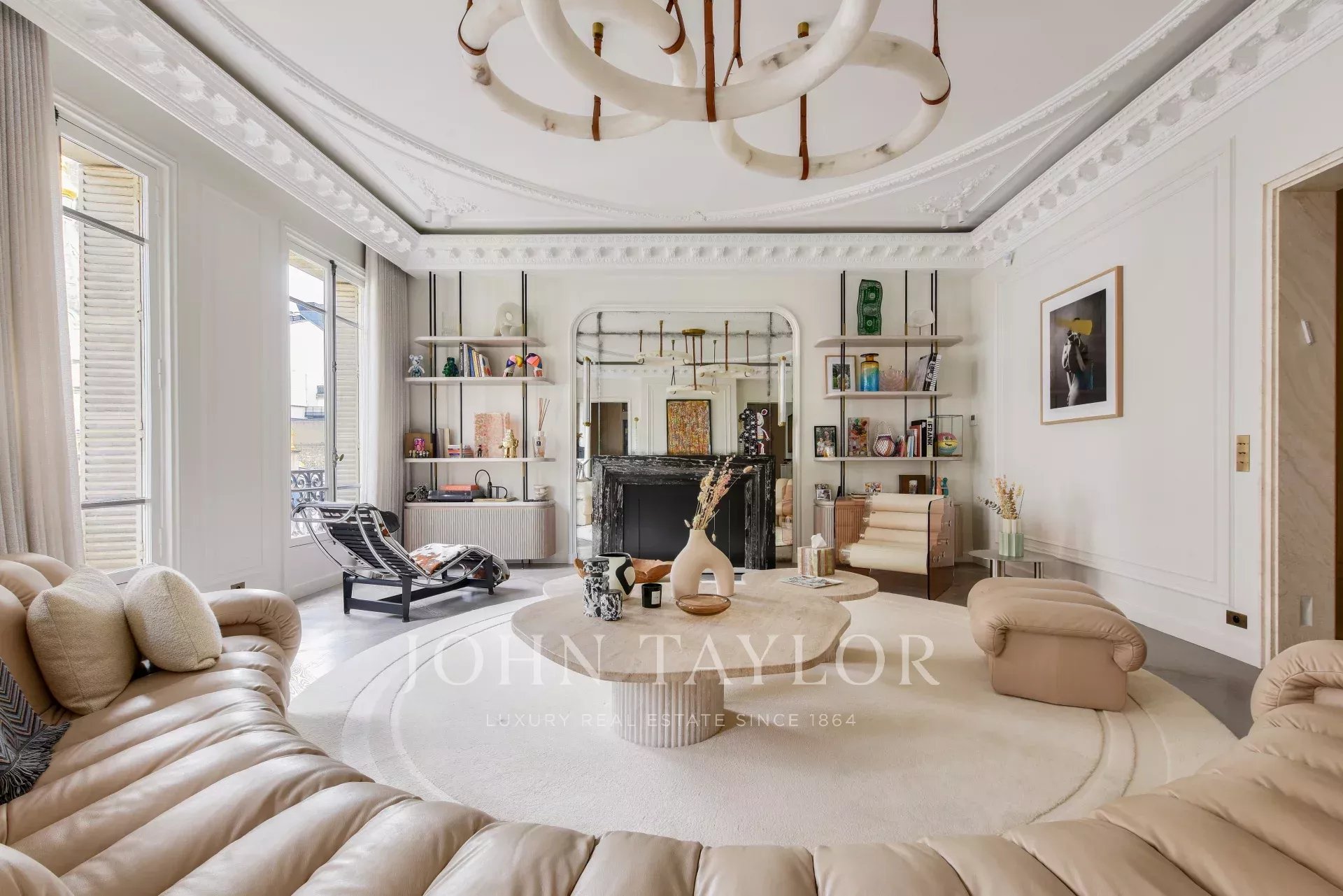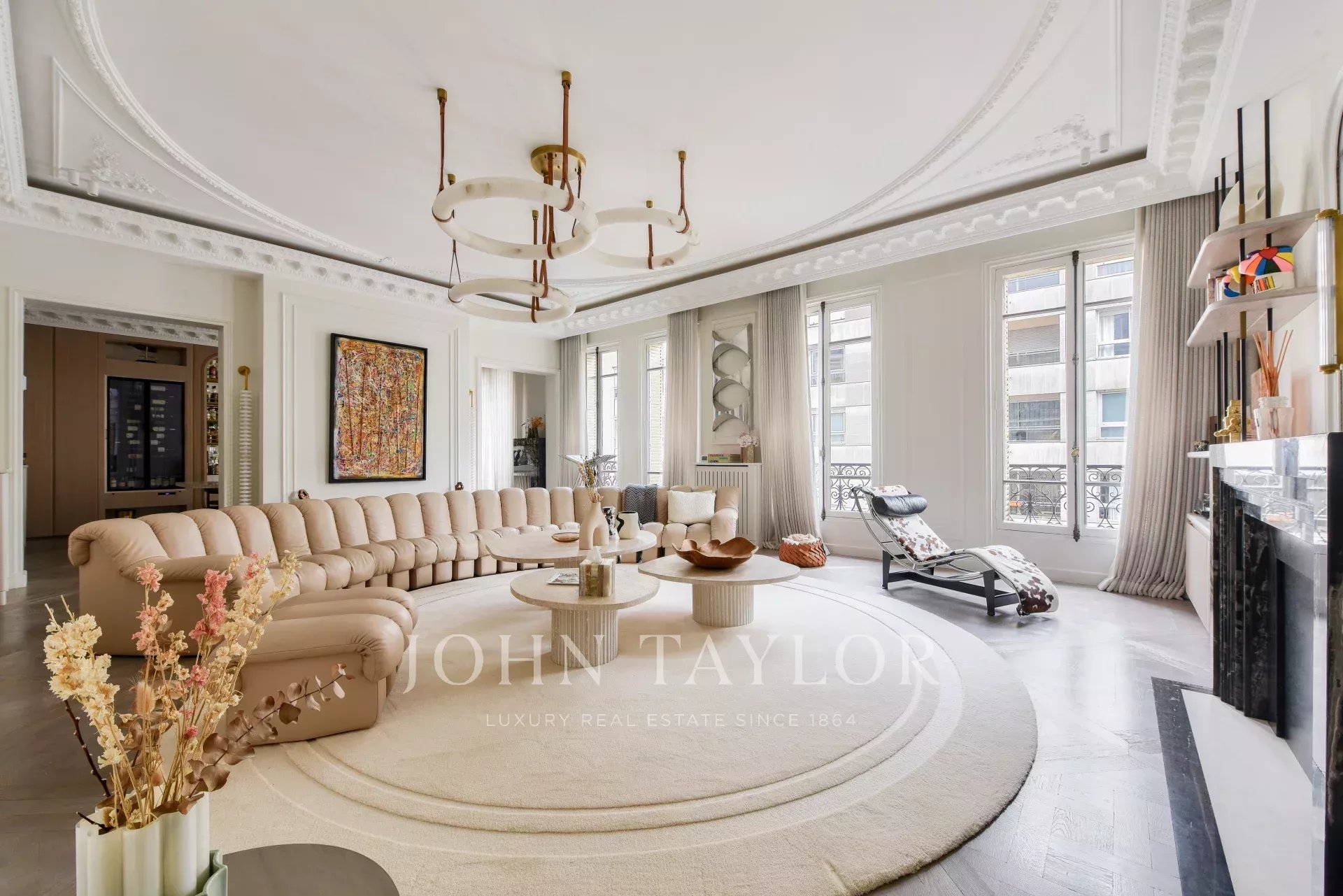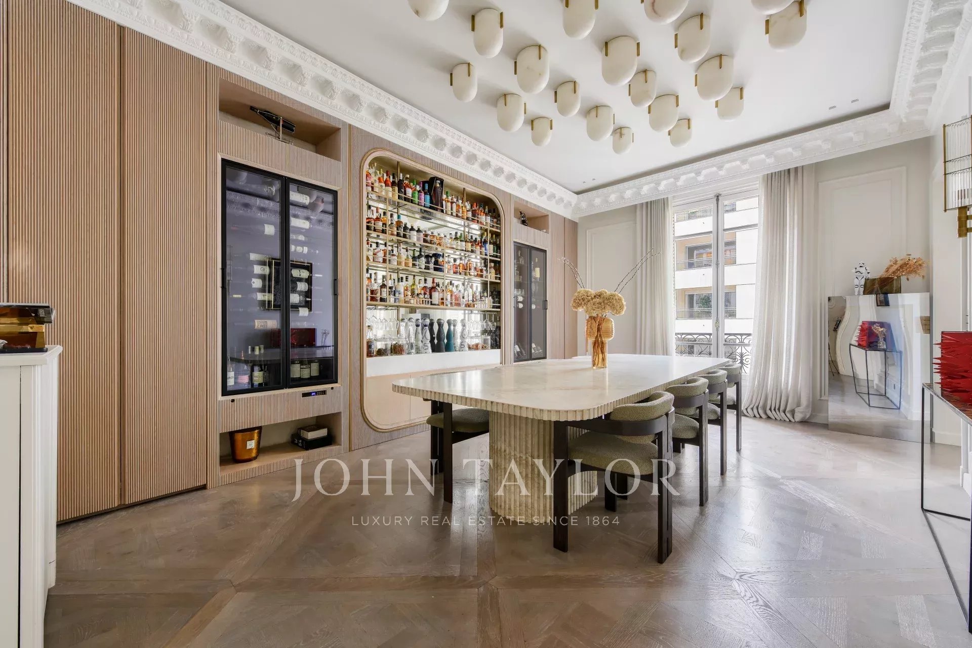 A proximité du Parc Monceau, en étage élevé d'un immeuble ancien, ce superbe appartement de 210m² a fait l'objet d'une rénovation complète avec des matériaux nobles et des finitions de qualité.