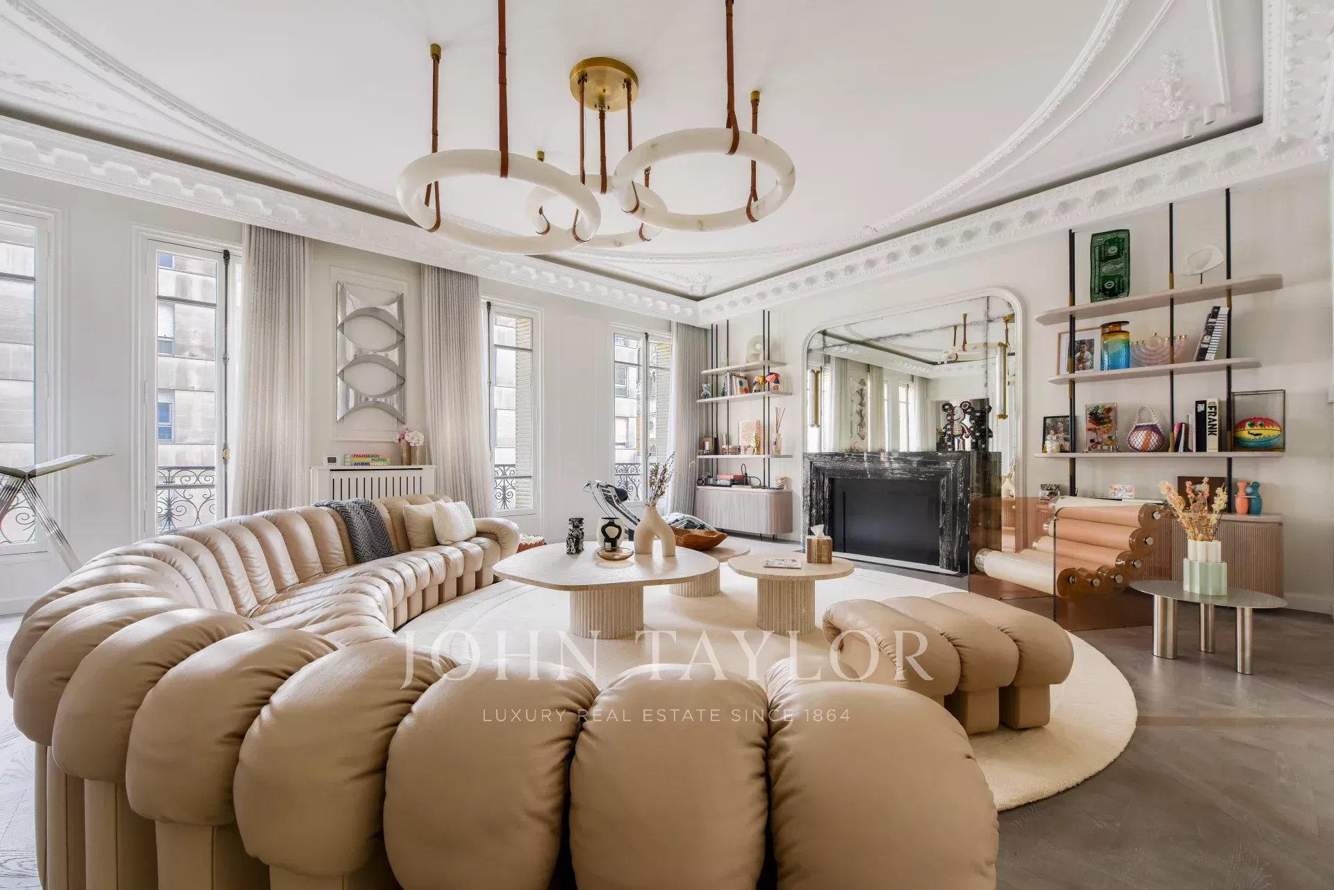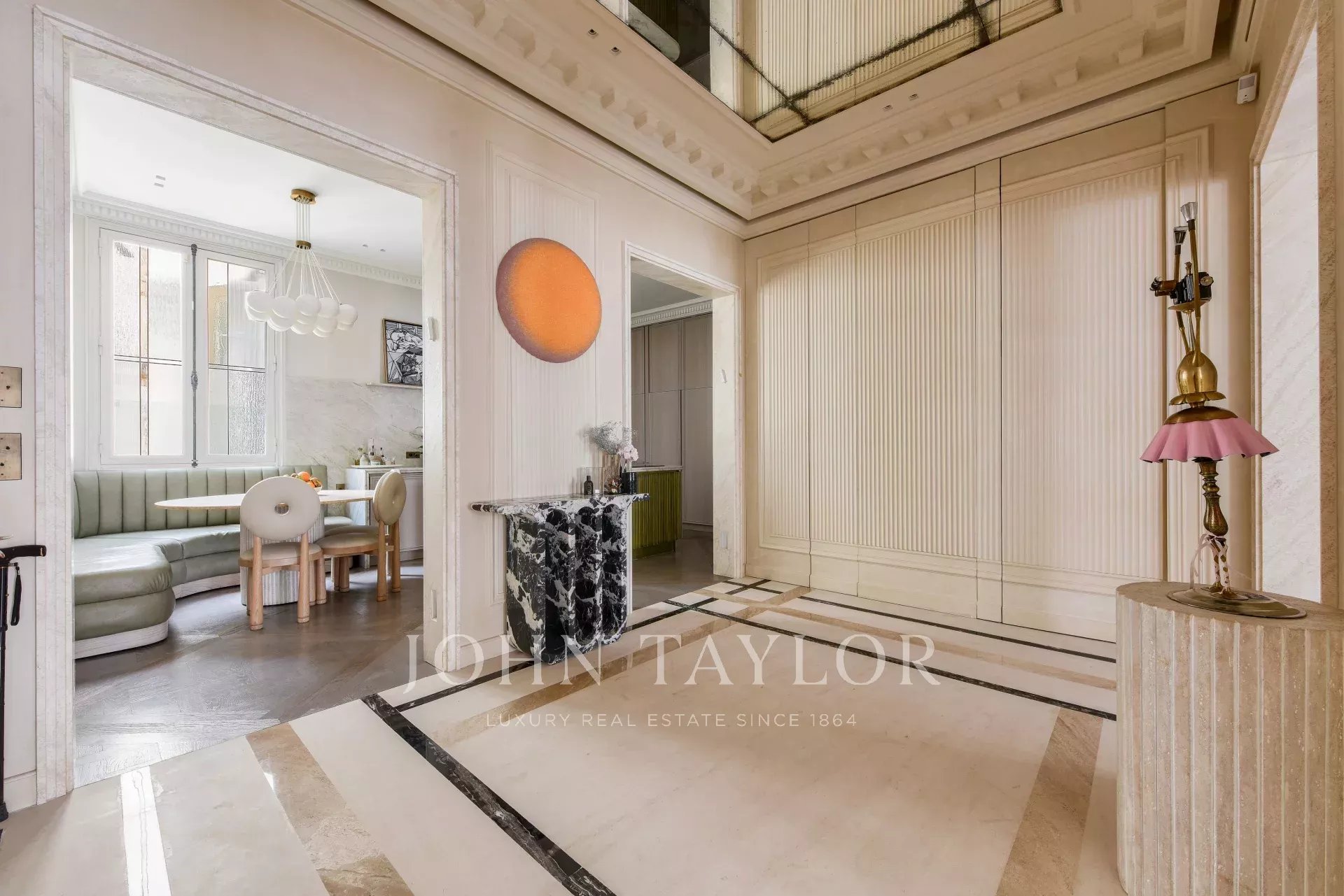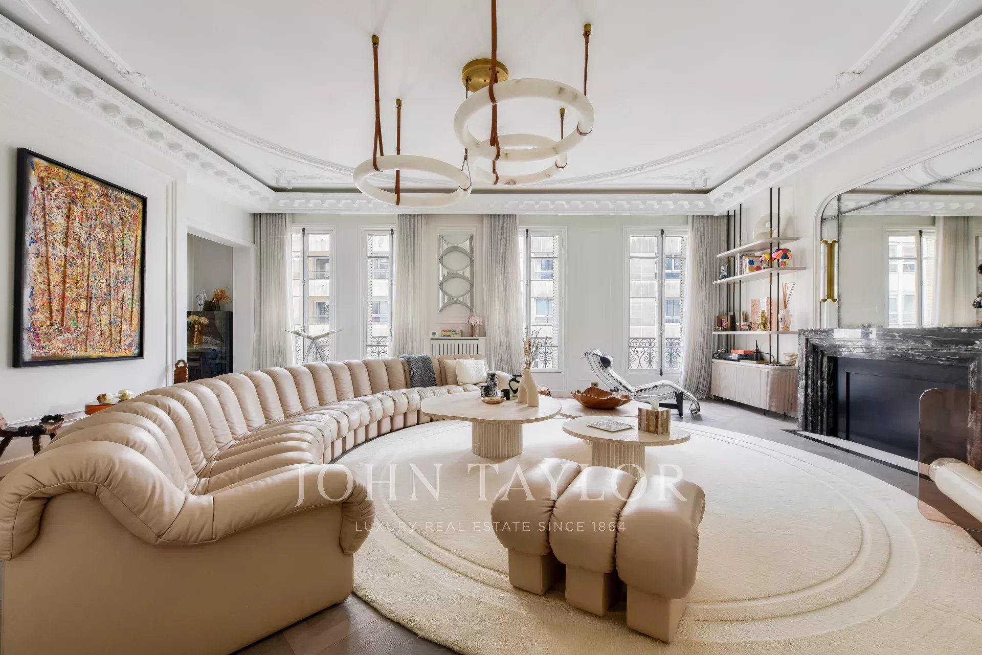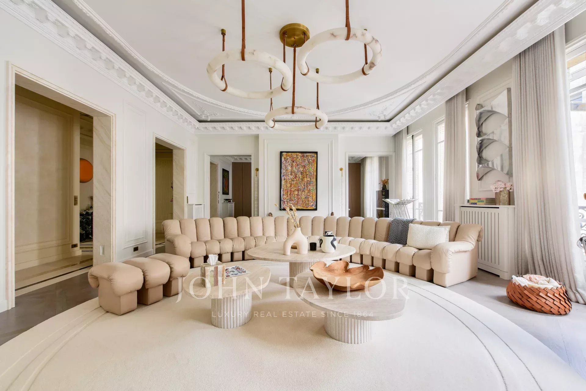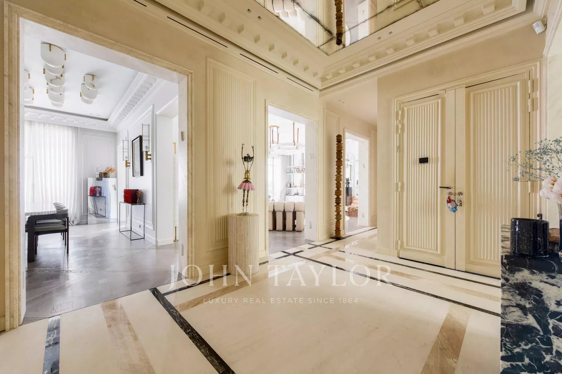 A proximité du Parc Monceau, en étage élevé d'un immeuble ancien, ce superbe appartement de 210m² a fait l'objet d'une rénovation complète avec des matériaux nobles et des finitions de qualité.