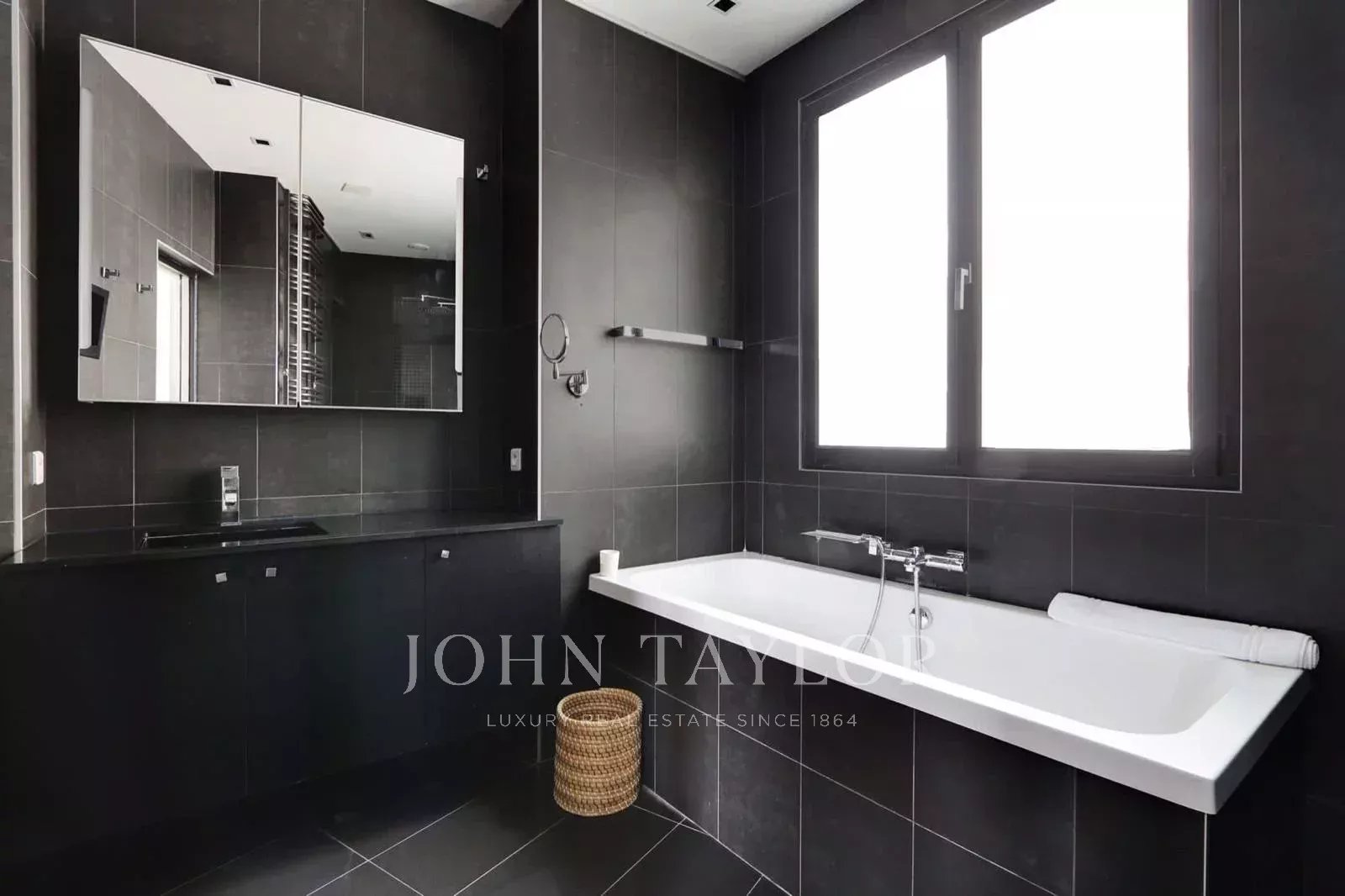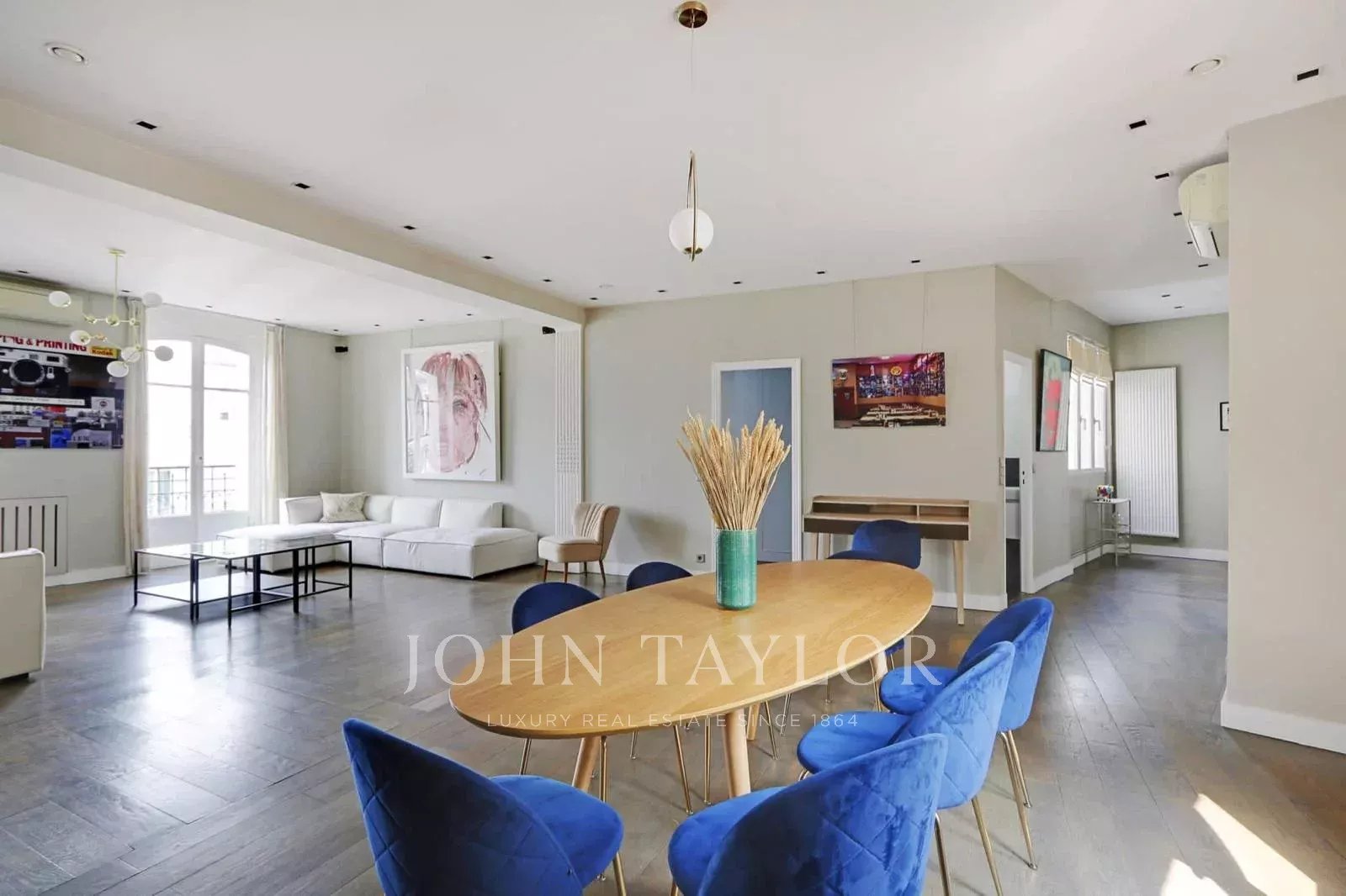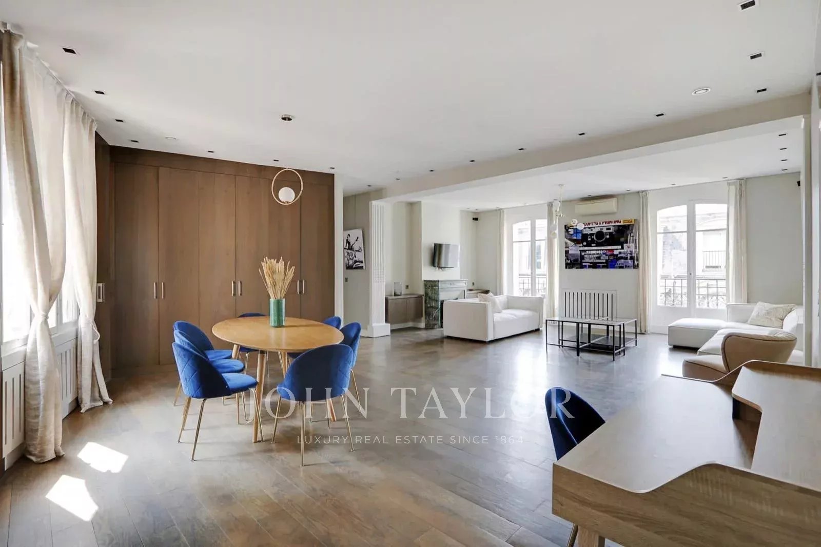 A moins d'une minute de l'avenue Montaigne, bel appartement lumineux et climatisé de 170 m2 situé au 4e étage avec ascenseur au sein d'un immeuble de grand standing, ancien hôtel particulier de René Lalique.