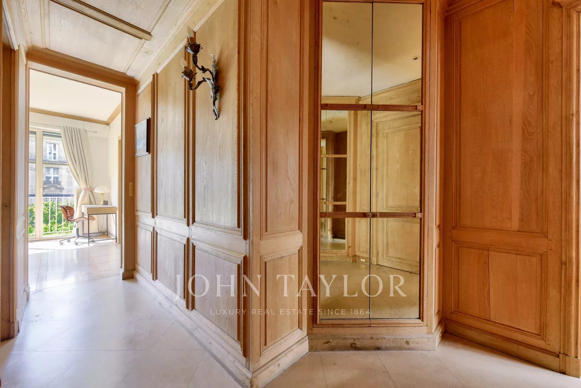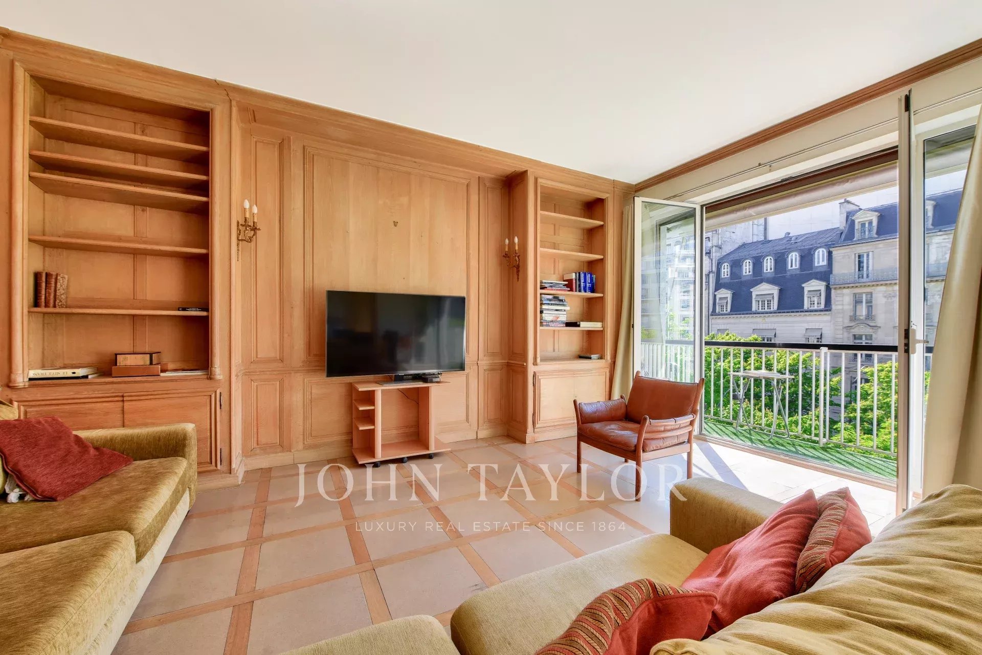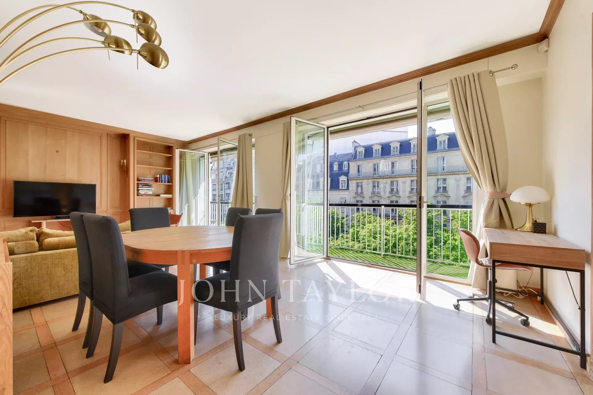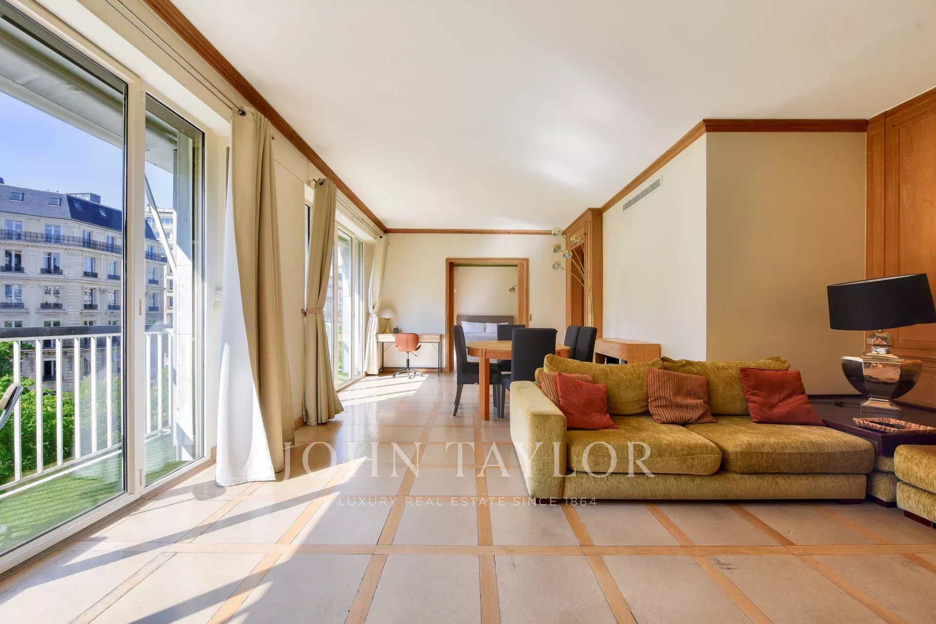 - un vaste séjour avec boiseries bordé d'un balcon filant de 5.18m² plein Ouest;