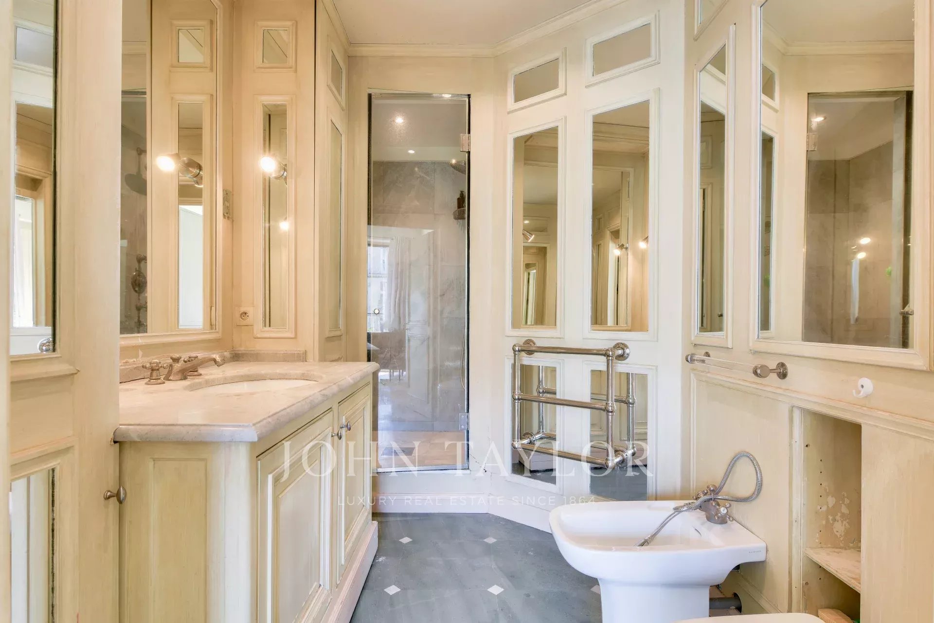 Son plan optimisé, son emplacement en plein coeur du Triangle d'Or et ses vues dégagées font de ce bien à rafraîchir un pied-à-terre idéal.
